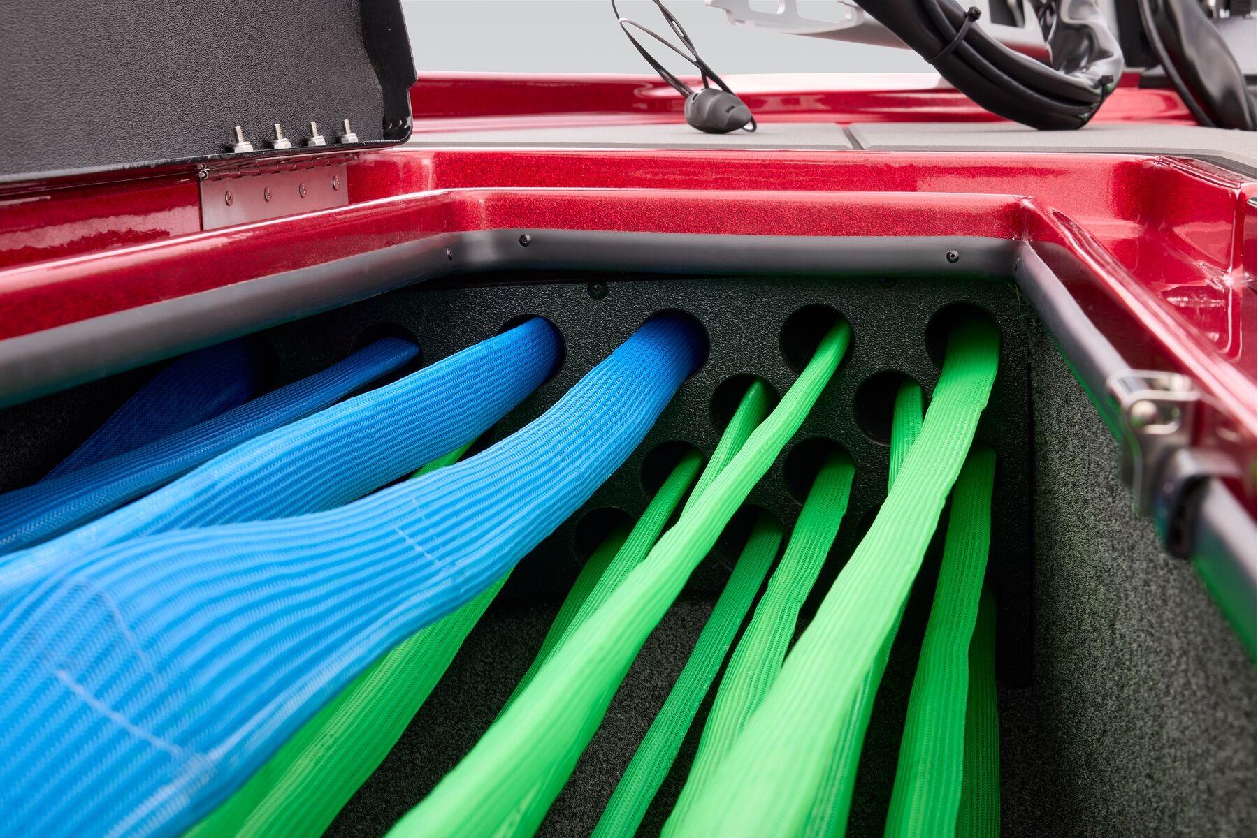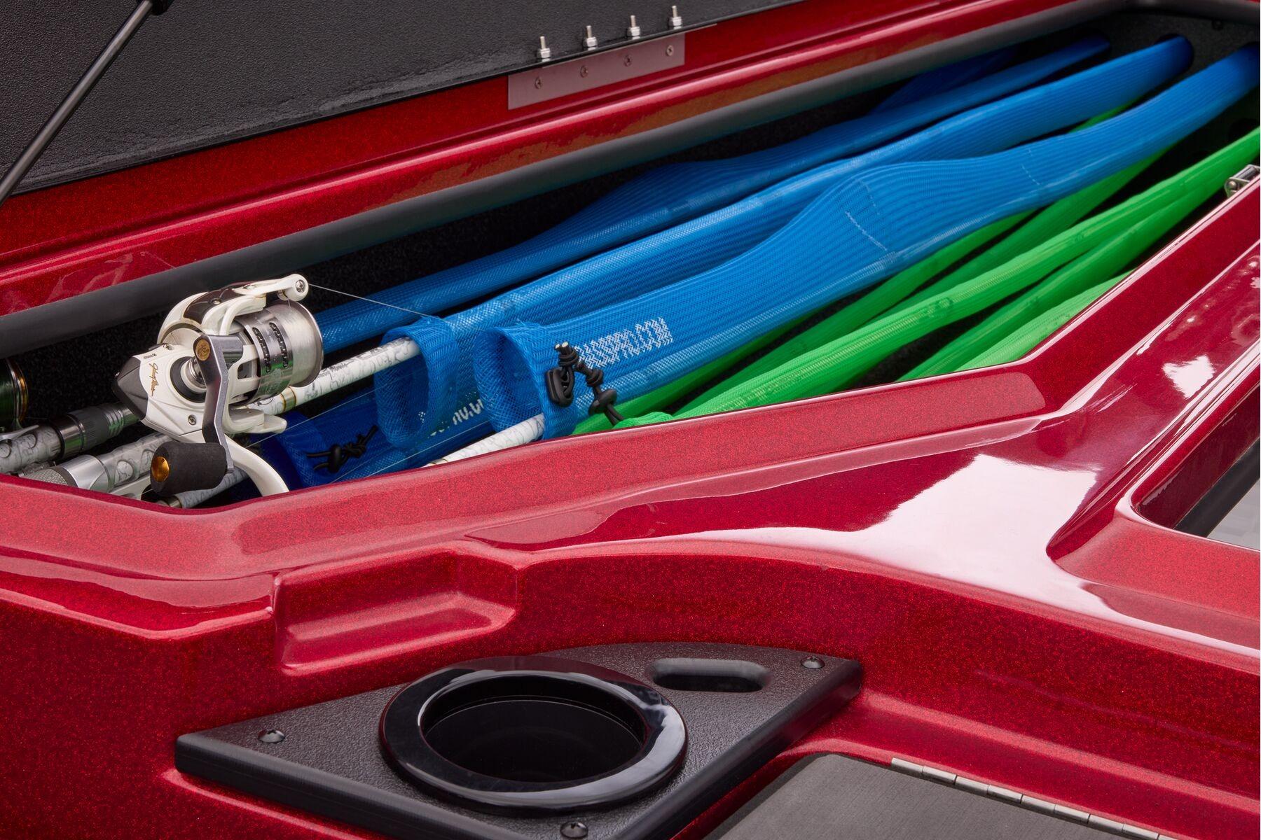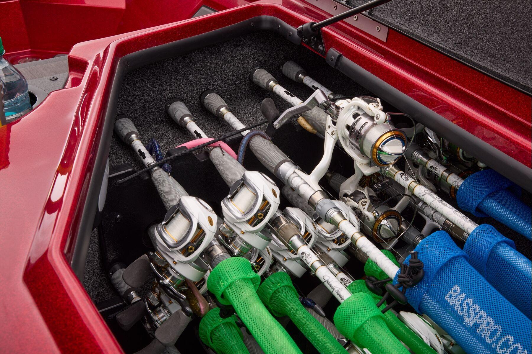 • Oversized, lockable bow port & starboard rod lockers w/lift assists for rods up to 8' (2.44 m)