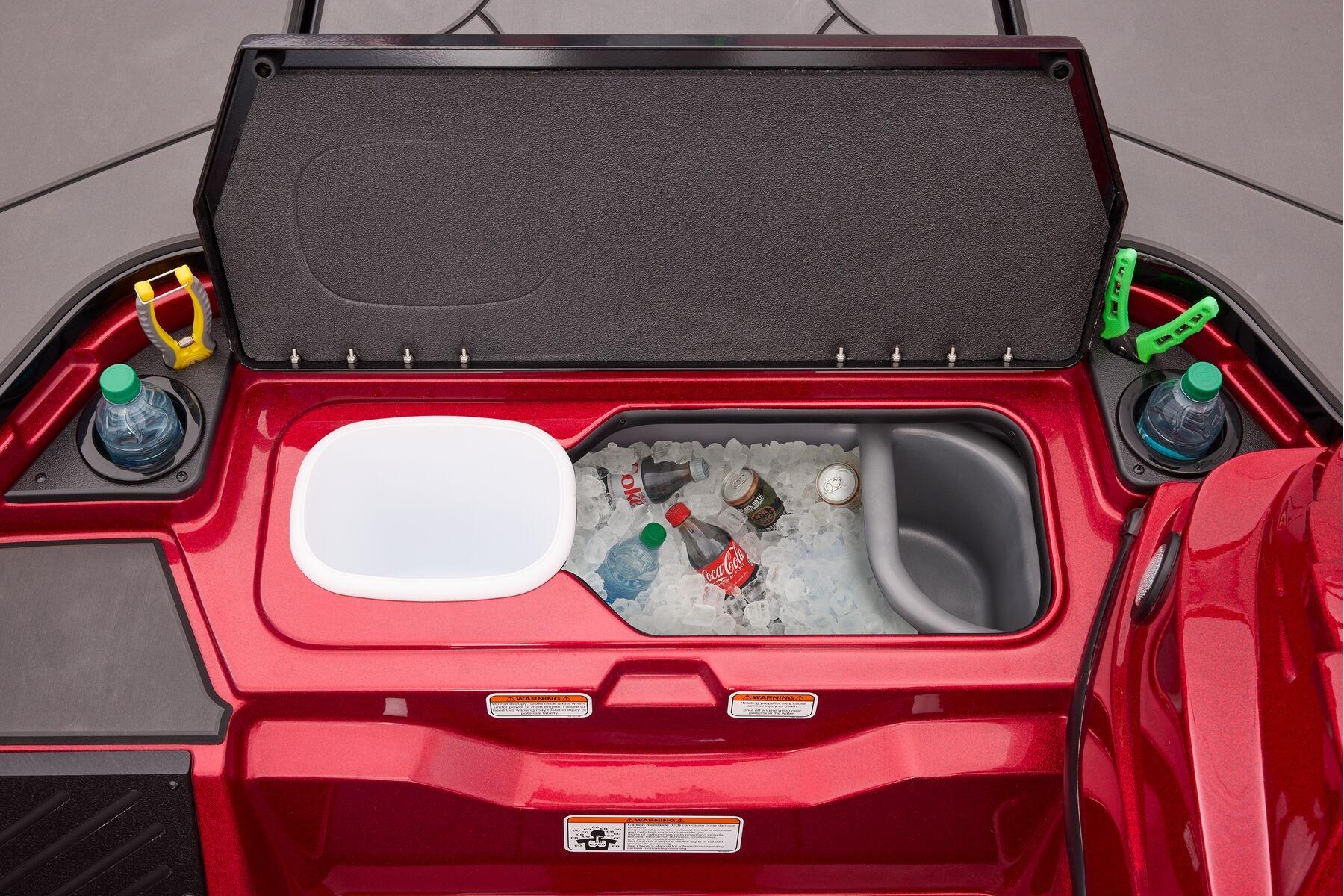• Step to bow deck w/62-qt. (58.67 L) insulated cooler, removable trash receptacle & snap-in sandwich tray