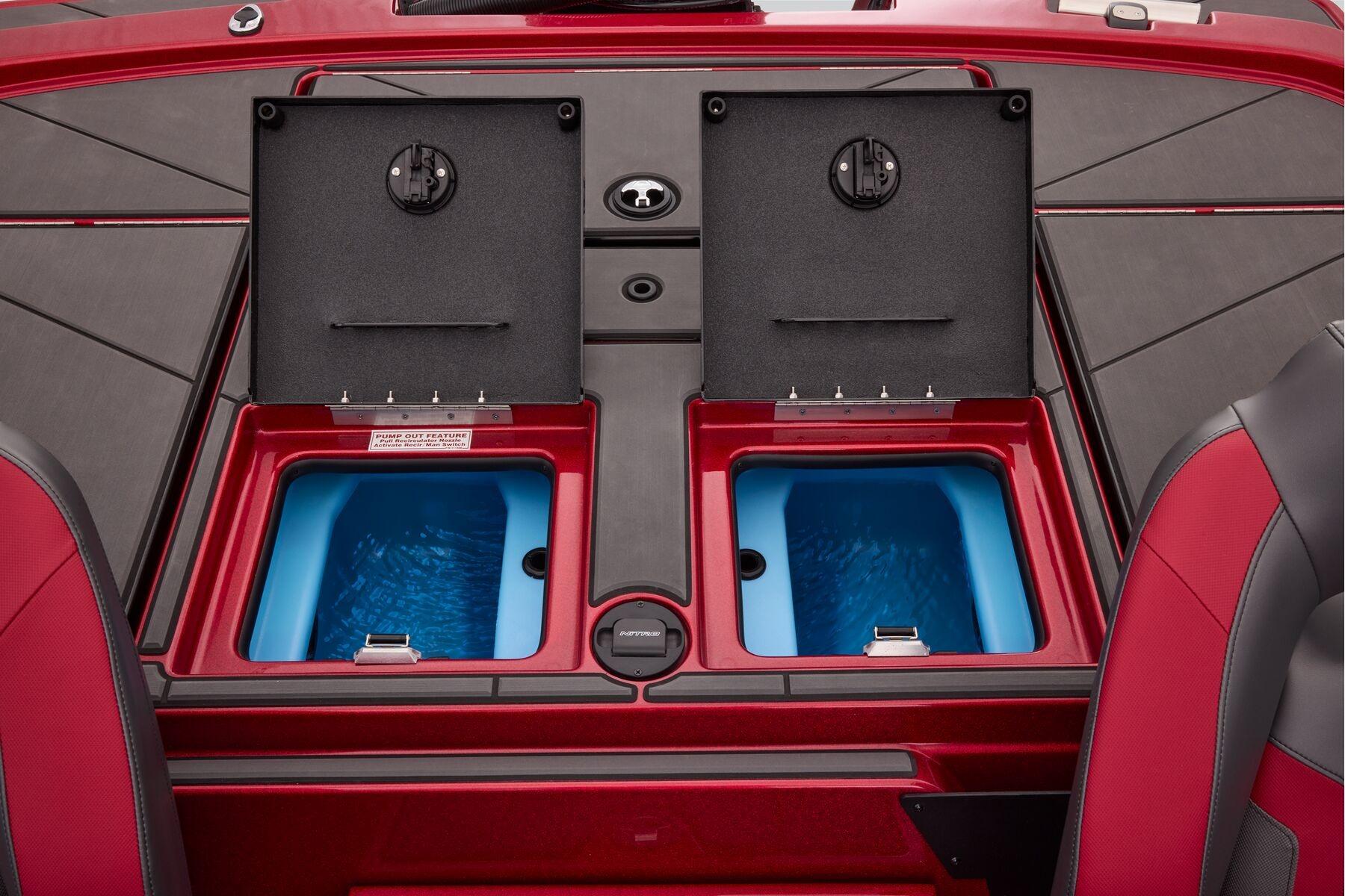 • 2 aft 19-gal. (71.92 L) insulated, rotomolded GUARDIAN™ livewells w/digital timers & rounded corners
