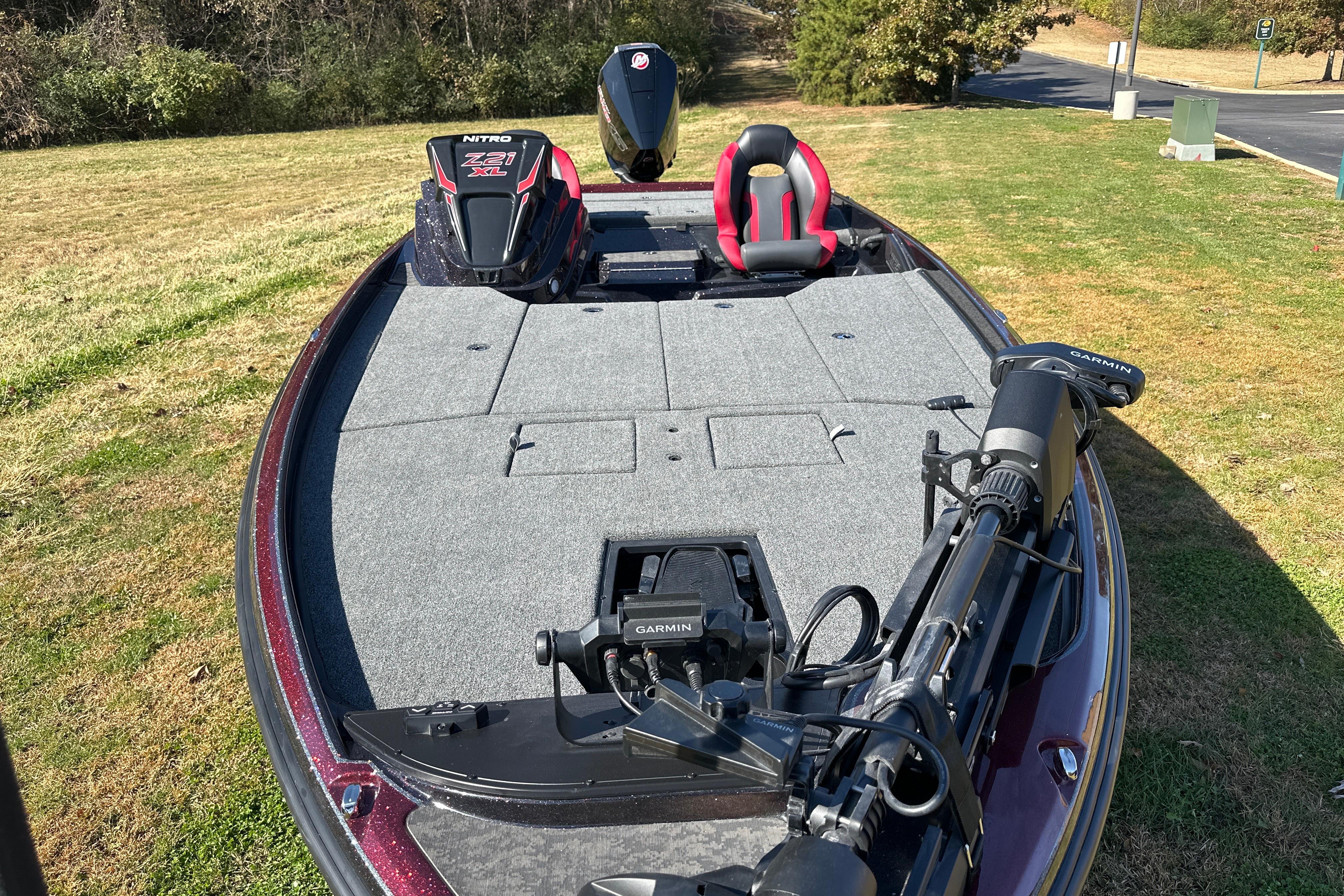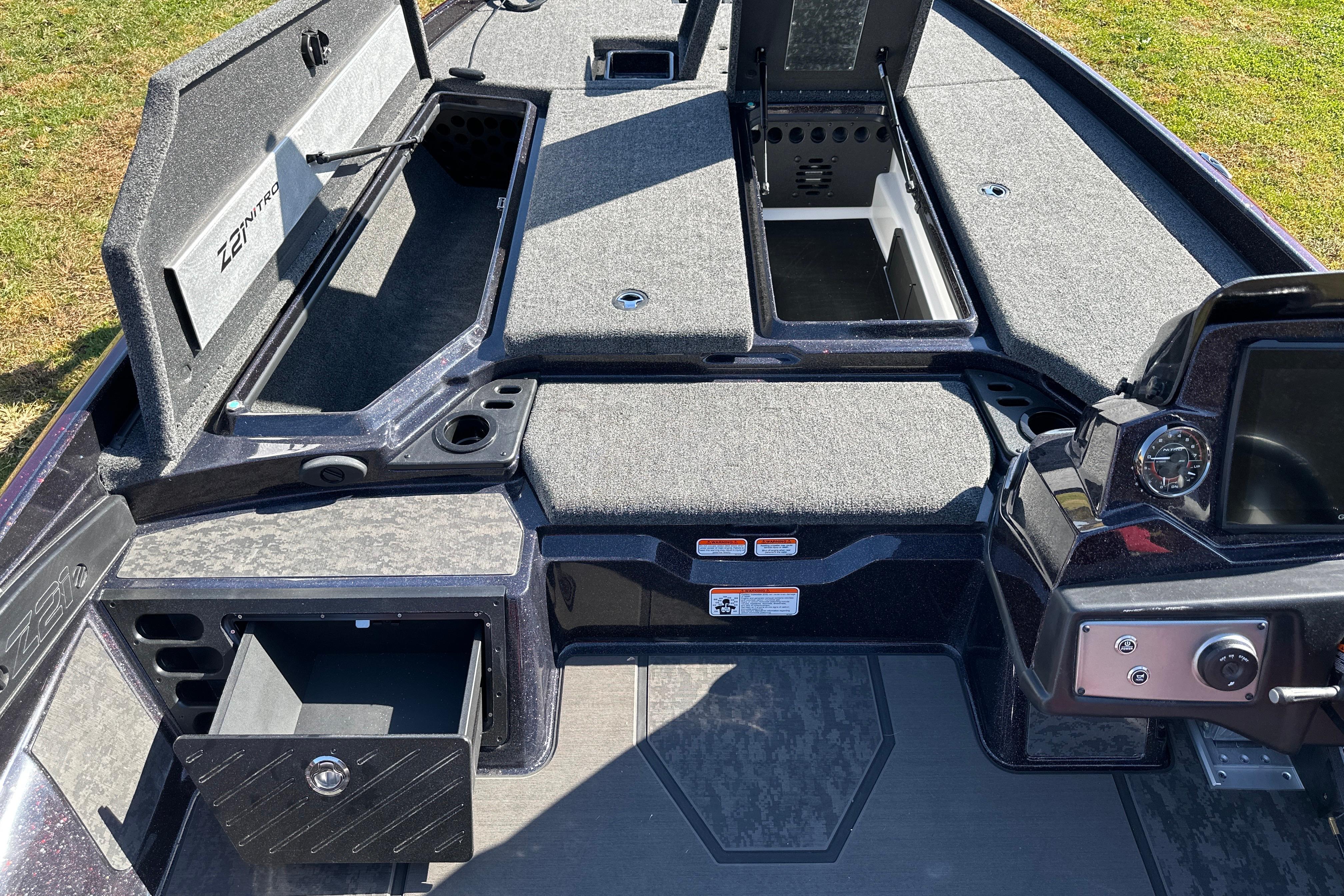 The Z21 XL Pro is made with a singular purpose: To have the most up-to-date tech, be the most capable, and represent the best tournament-ready value on the market. From the factory, the Z21 XL Pro features twin 12” Garmin® ECHOMAP Ultra units at the bow and dash, a Minn Kota® Ultrex™ trolling motor, and up to 300 horses of Mercury® FourStroke power to get you there ahead of the pack. Complementing this class-leading combo of features is the NITRO® Z-TOUCH™ touchscreen that gives you realtime control of and insight into critical boat functions like livewells, bilge pumps, and storage box air circulating fans that protect your gear from rust and mildew. On the trolling motor, the Z21 XL Pro boasts unbeatable stability in foul weather and with multiple anglers, and inside the deck storage boxes are huge spaces that are tailorable to your wants in tackle and rod storage. Dual day boxes up front keep your go-to baits immediately at hand, and every box features an extra tall raised lip with gasket to keep the elements at bay. The Z21 XL Pro is designed for the big leagues so you can dominate your league.