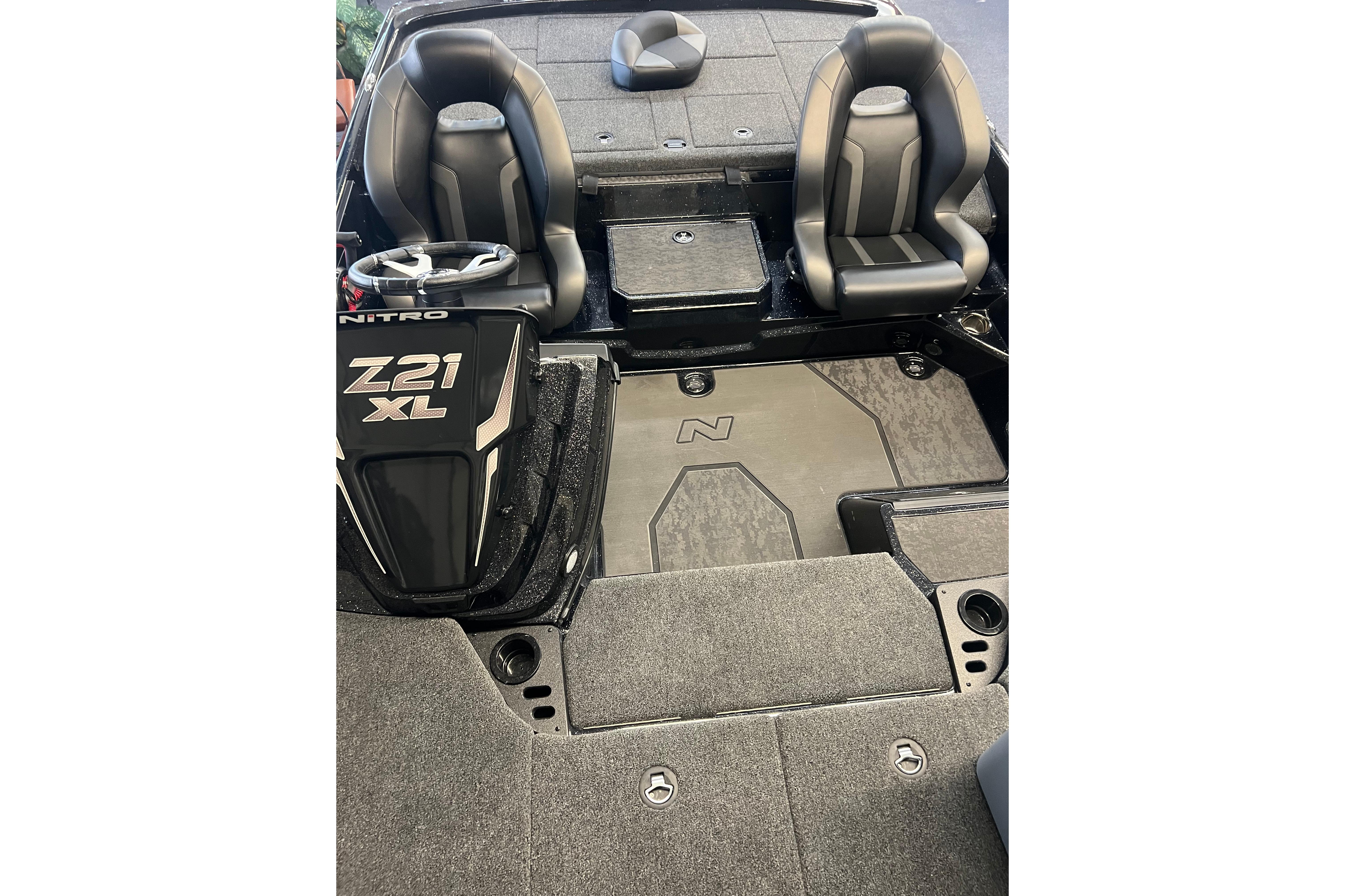 The Z21 XL Pro is made with a singular purpose: To have the most up-to-date tech, be the most capable, and represent the best tournament-ready value on the market. From the factory, the Z21 XL Pro features twin 12” Garmin® ECHOMAP Ultra units at the bow and dash, a Minn Kota® Ultrex™ trolling motor, and up to 300 horses of Mercury® FourStroke power to get you there ahead of the pack. Complementing this class-leading combo of features is the NITRO® Z-TOUCH™ touchscreen that gives you realtime control of and insight into critical boat functions like livewells, bilge pumps, and storage box air circulating fans that protect your gear from rust and mildew. On the trolling motor, the Z21 XL Pro boasts unbeatable stability in foul weather and with multiple anglers, and inside the deck storage boxes are huge spaces that are tailorable to your wants in tackle and rod storage. Dual day boxes up front keep your go-to baits immediately at hand, and every box features an extra tall raised lip with gasket to keep the elements at bay. The Z21 XL Pro is designed for the big leagues so you can dominate your league.