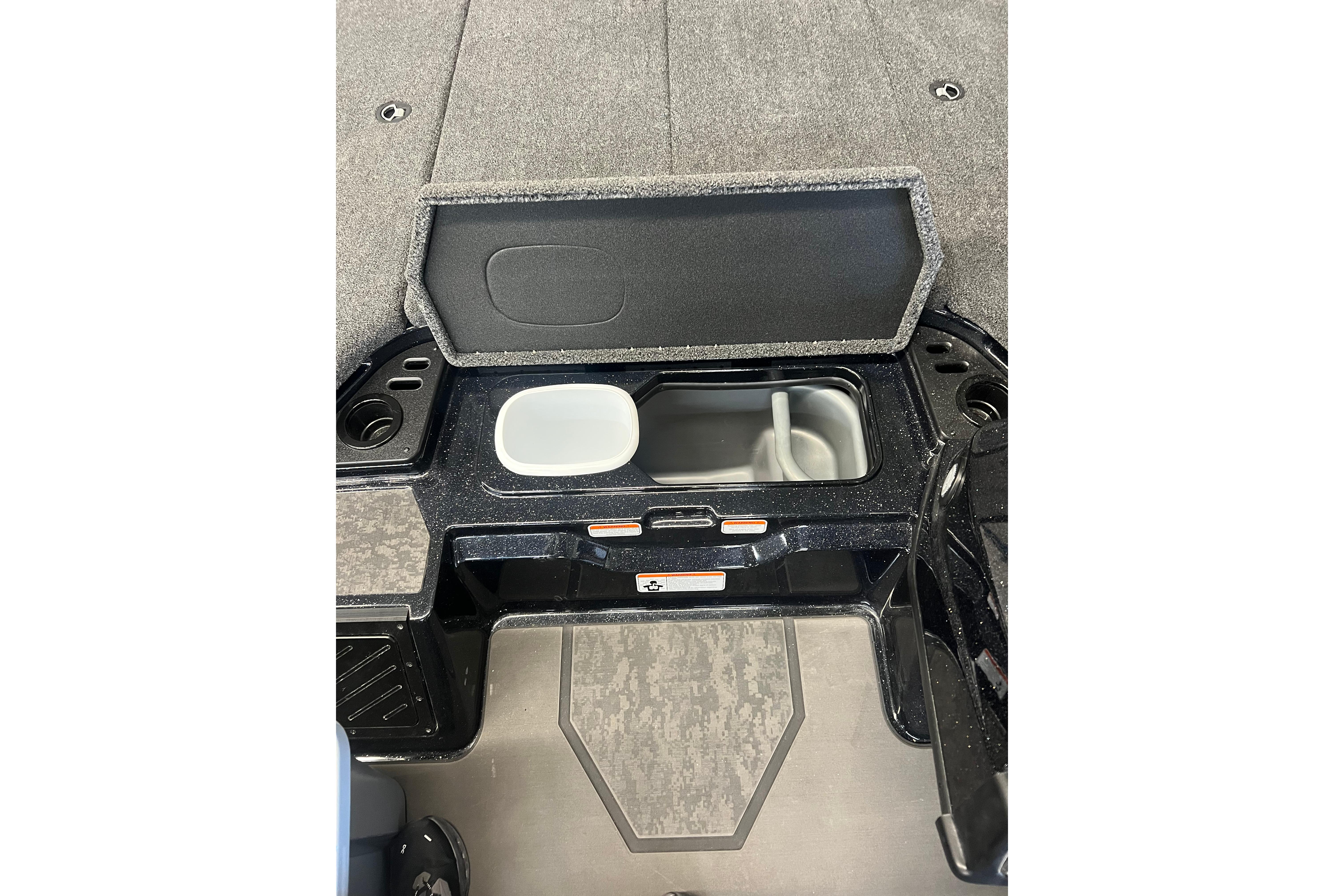 • Step to bow deck w/86-qt. (81.39 L) insulated cooler, removable trash receptacle & snap-in sandwich tray