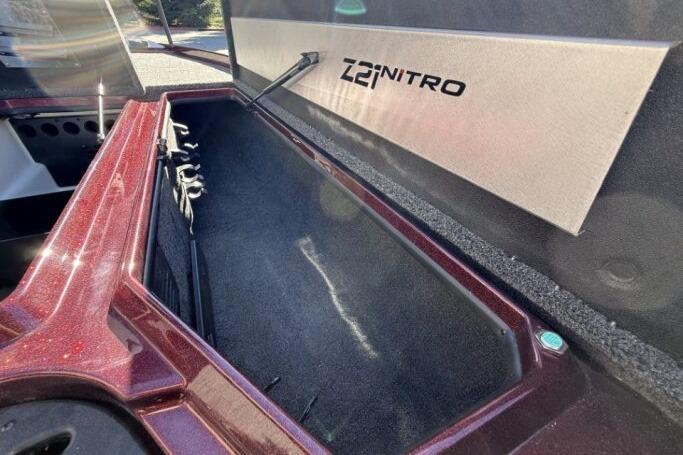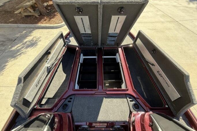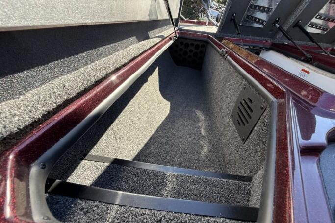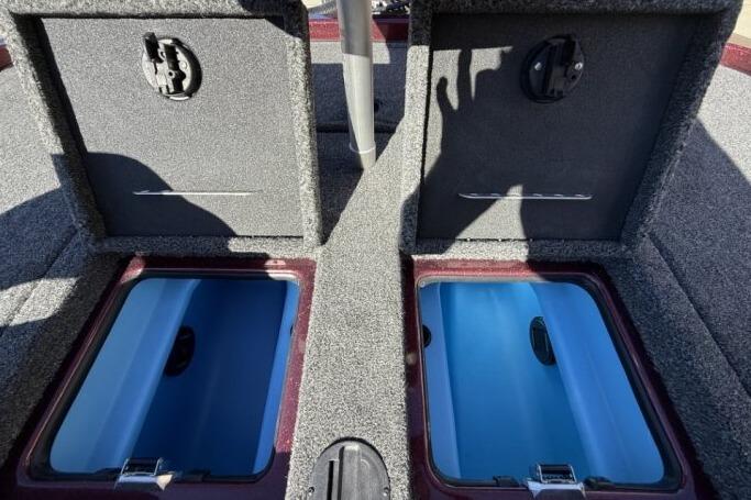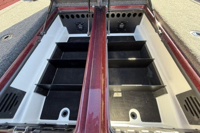 Oversized, lockable bow port & starboard rod lockers w/lift assists for rods up to 8' (2.44 m) & 23 tapered tubes in port locker