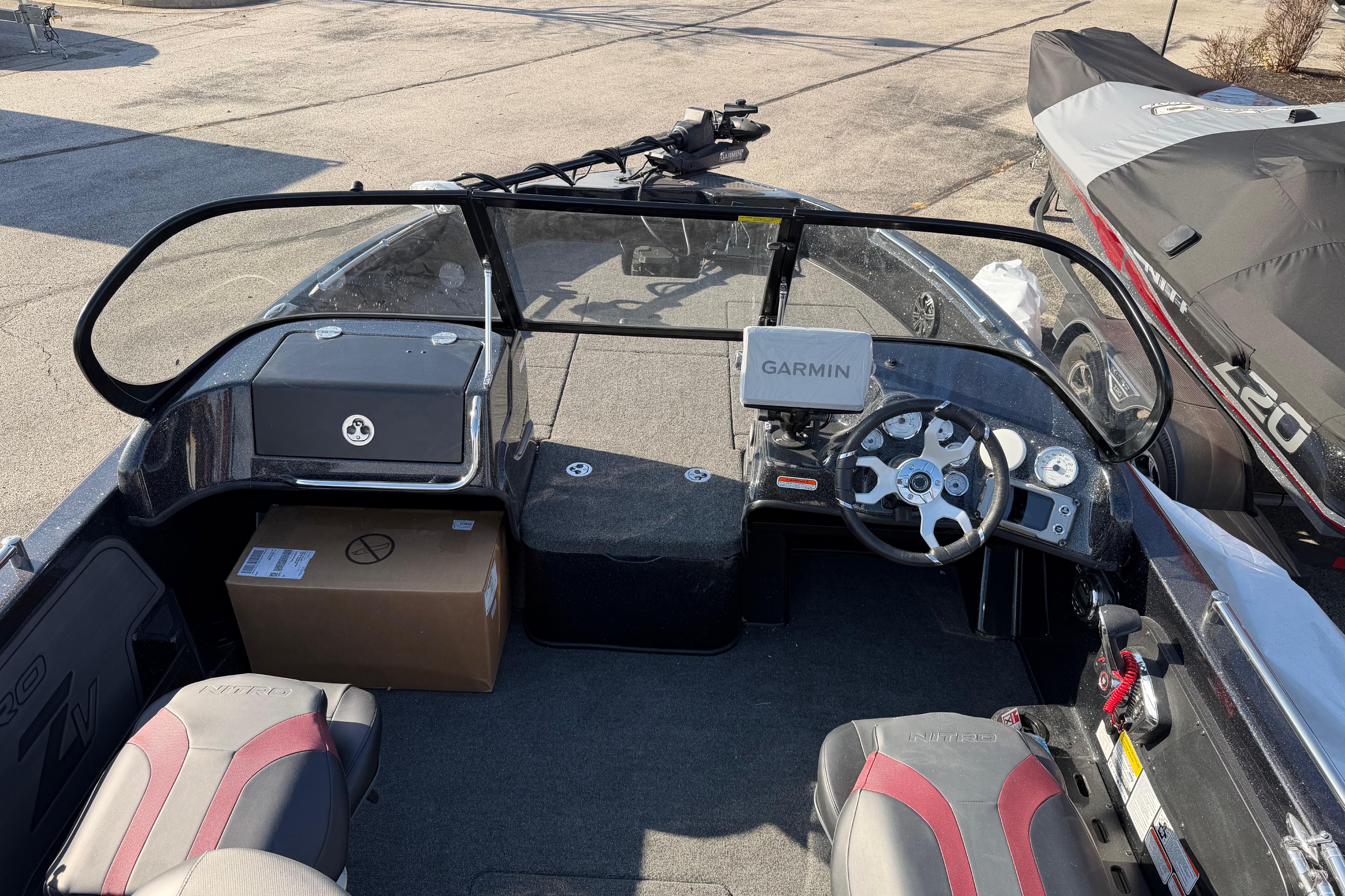The NITRO® ZV19 Sport Pro takes the proven family- and fish-friendly ZV19 and adds a host of popular high-performance options at an incredible value to save you money! The angler in you will love the bow 9" Garmin ECHOMAP UHD2 w/LiveScope Plus and the 9" Garmin ECHOMAP UHD2 at the console for the ultimate in fishfinders, and a new Garmin Force Kraken 100-lb. thrust trolling motor give you and edge over the fish and the competition. A standard Bimini top, dual jump seats, and ski tow pylon make for a perfect day pulling tubes and wakeboards. In addition, the deep, comfortable interior keeps your crew safe and secure while cruising or casting. The aggressive Deep V hull smoothly slices through the chop on big lakes, and its wide beam provides plenty of stability and space for six. Don’t settle for second best; make the most of your days on the water with the ZV19 Sport.