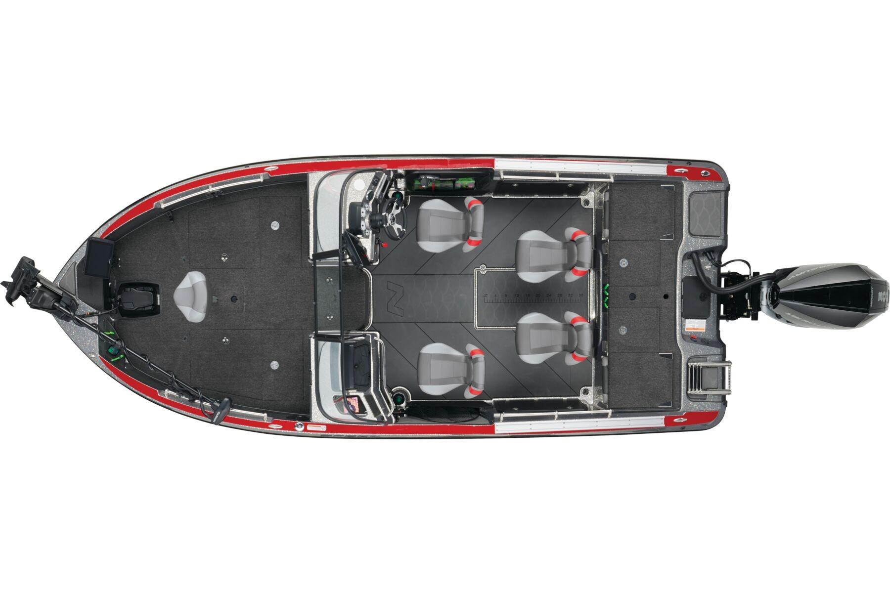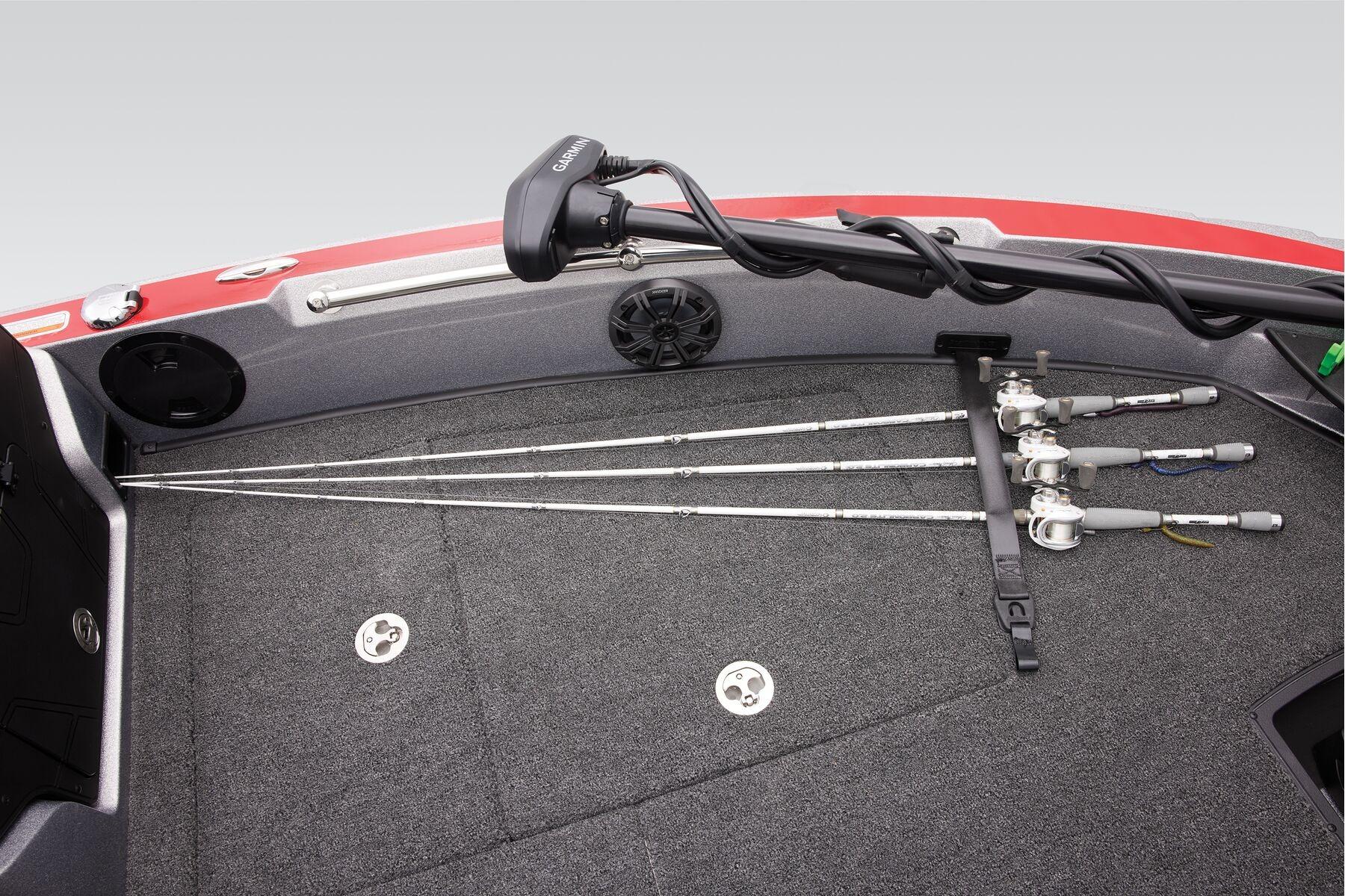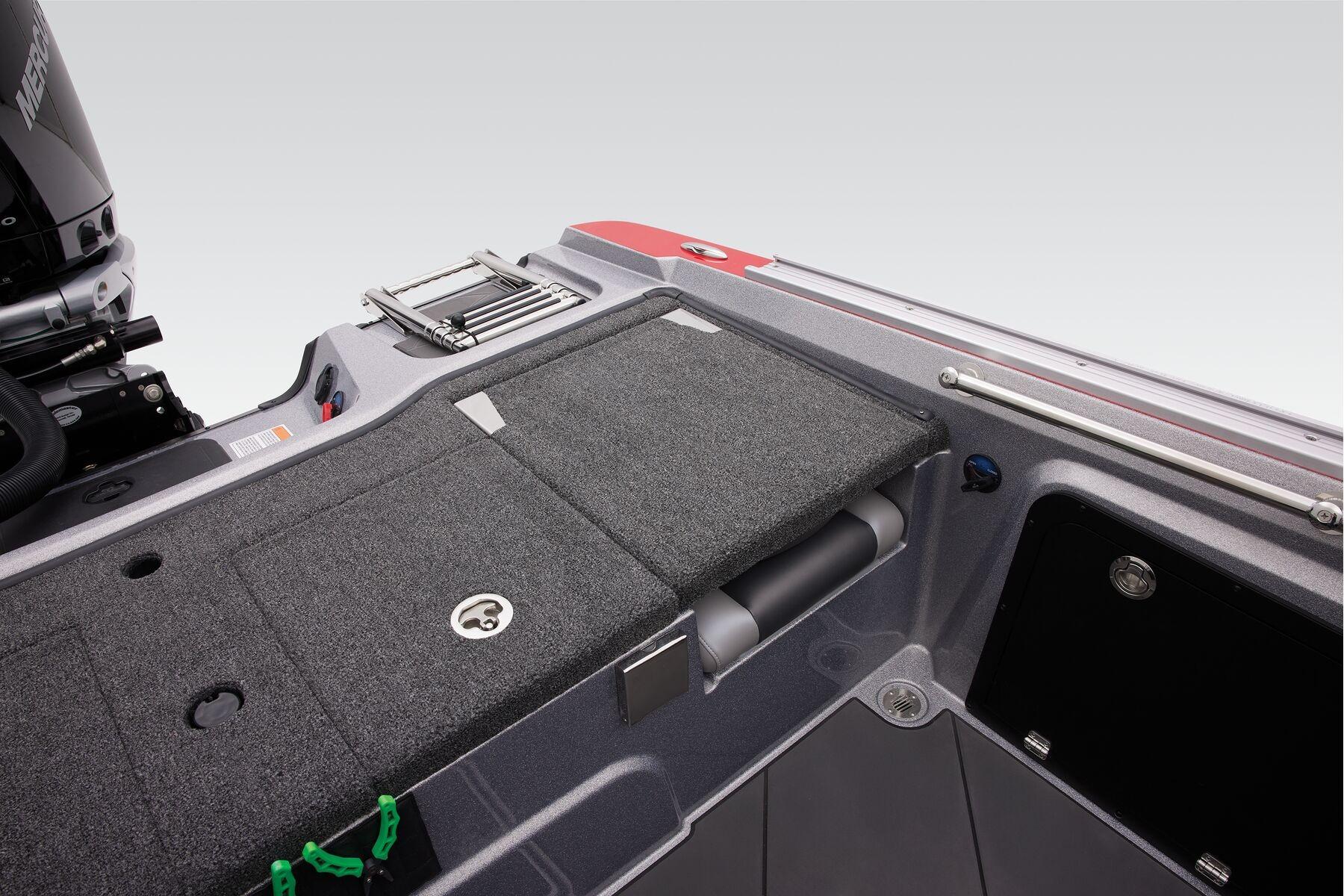 A 300-horsepower rating delivers well enough power to carve through swells with a derby-winning bag. A new bow lets you flush mount electronics up to 9" and gimbal mount 12" graphs, while a twin-layer center rod storage keeps your sticks—and gear—safer and handy. Increased storage compartments complement a refreshed interior and all-new trailer touches that round out this tailor-made do-all rig that's designed to dominate the tournament trail and deliver class-leading refinement for leisurely days off.
