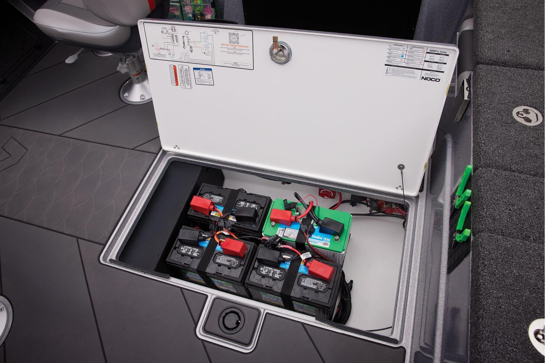 • Midship in-floor storage for 5 batteries