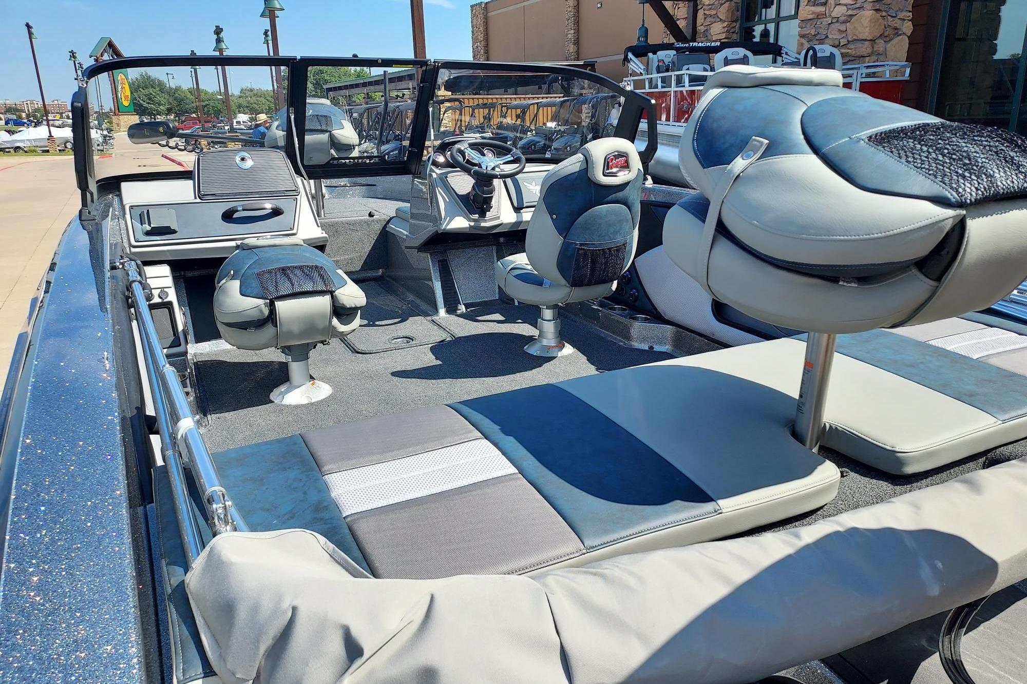 • Custom-fitted premium marine upholstery - (4) Soft Ride Seating (SRS) fold downs: (2) Bell Ped. w/ adjustable slide, (2) 15" Non-Adjustable Posts