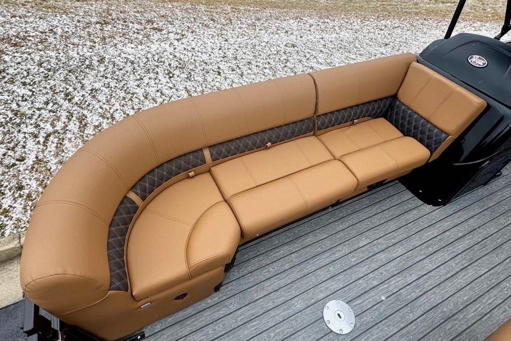 • 10' (3.05 m) EasyLift™ Bimini top w/ LED courtesy lights, storage pockets & protective boot w/ NEW black powdercoated rails