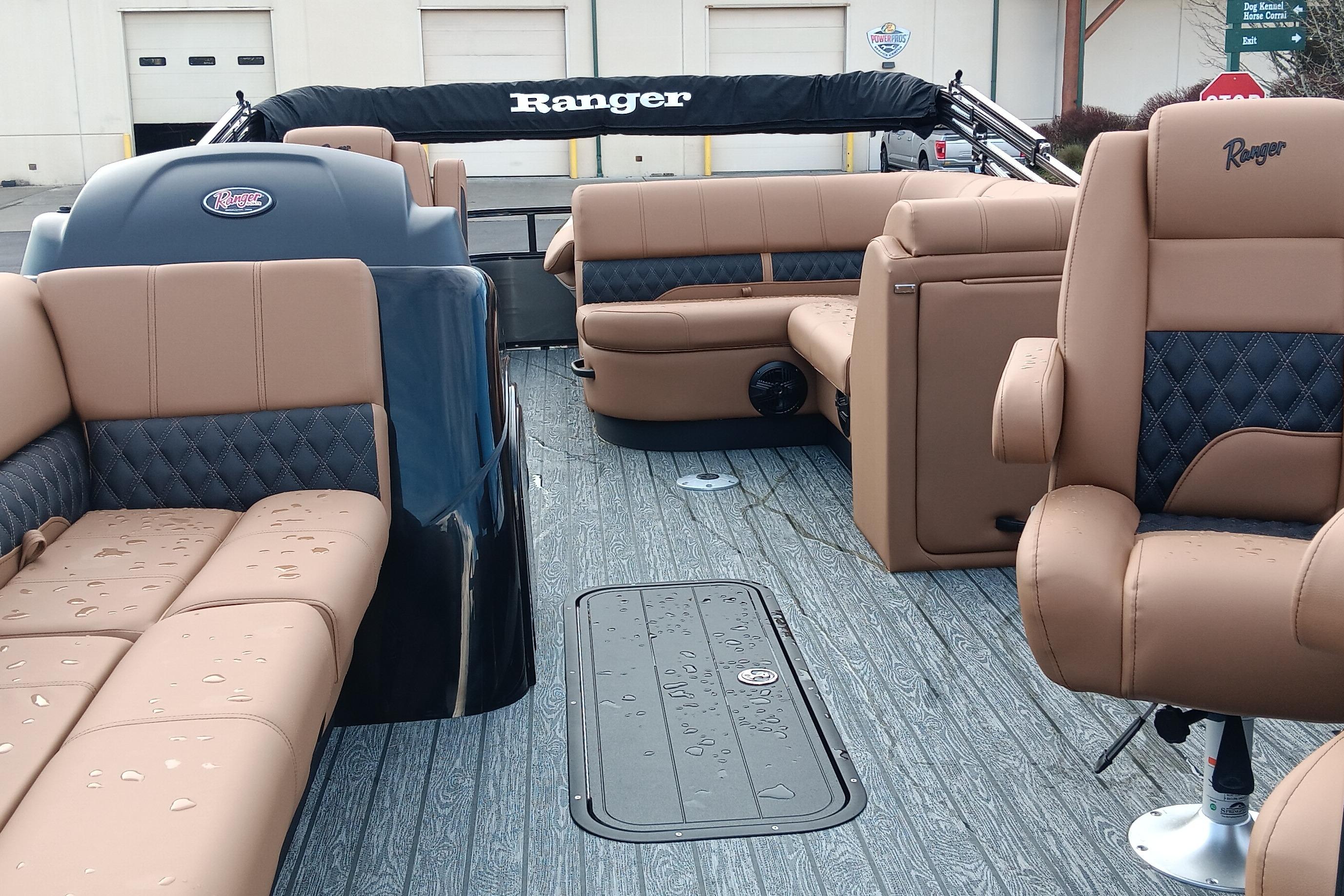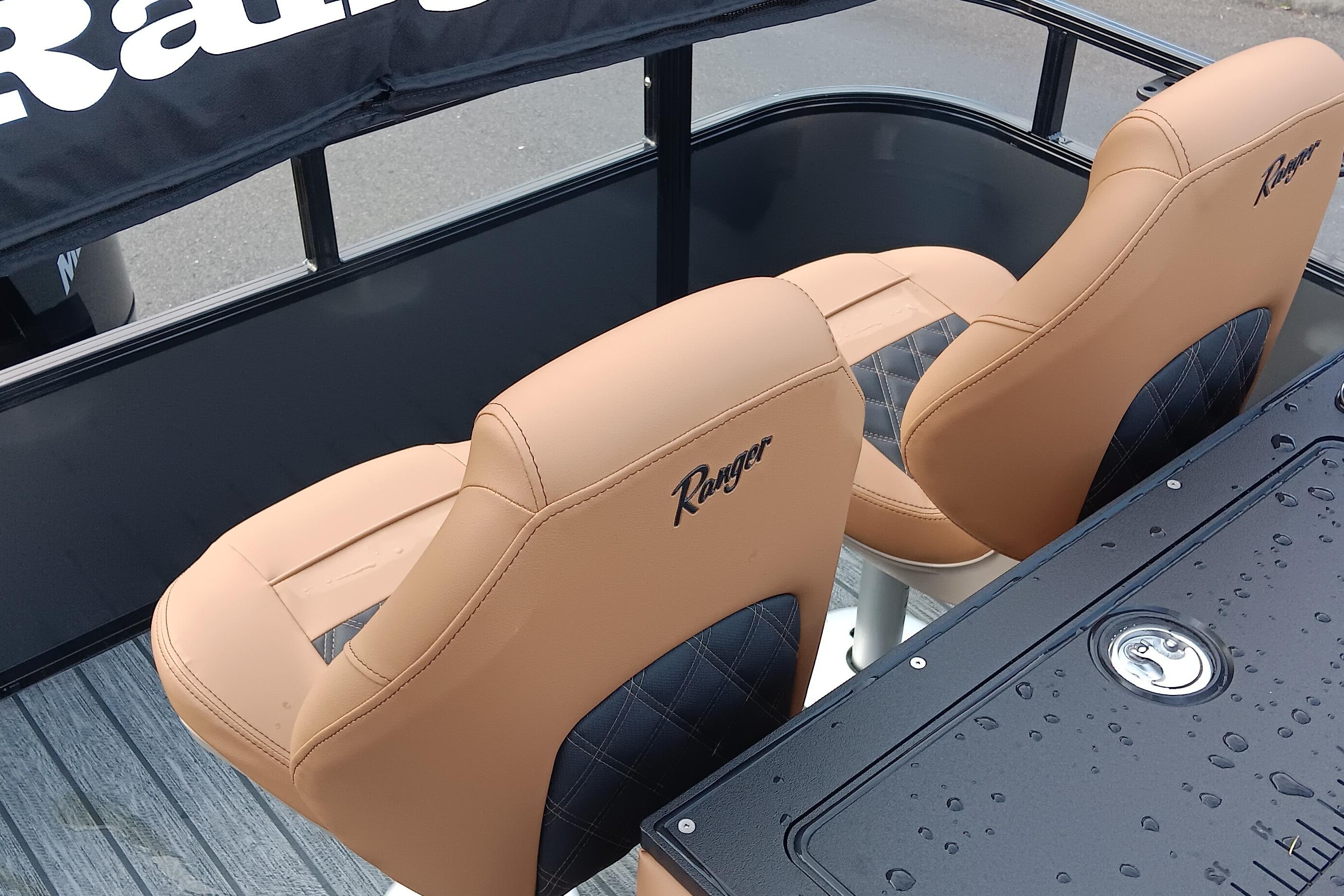 To host a big time, you need a big platform, and the biggest Ranger Fish & Cruise pontoon delivers every time. With enough space for up to 11, the 223FC is bristling with features for casting and cruising. A refreshed exterior gives way to a luxurious interior with featuring a new vinyl woven flooring with closed cell foam backing for comfort and soothing LED Lights along the floor and in the Bimini set the mood when dusk falls.