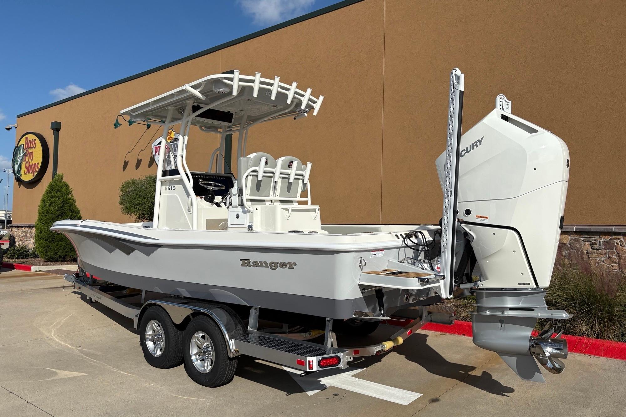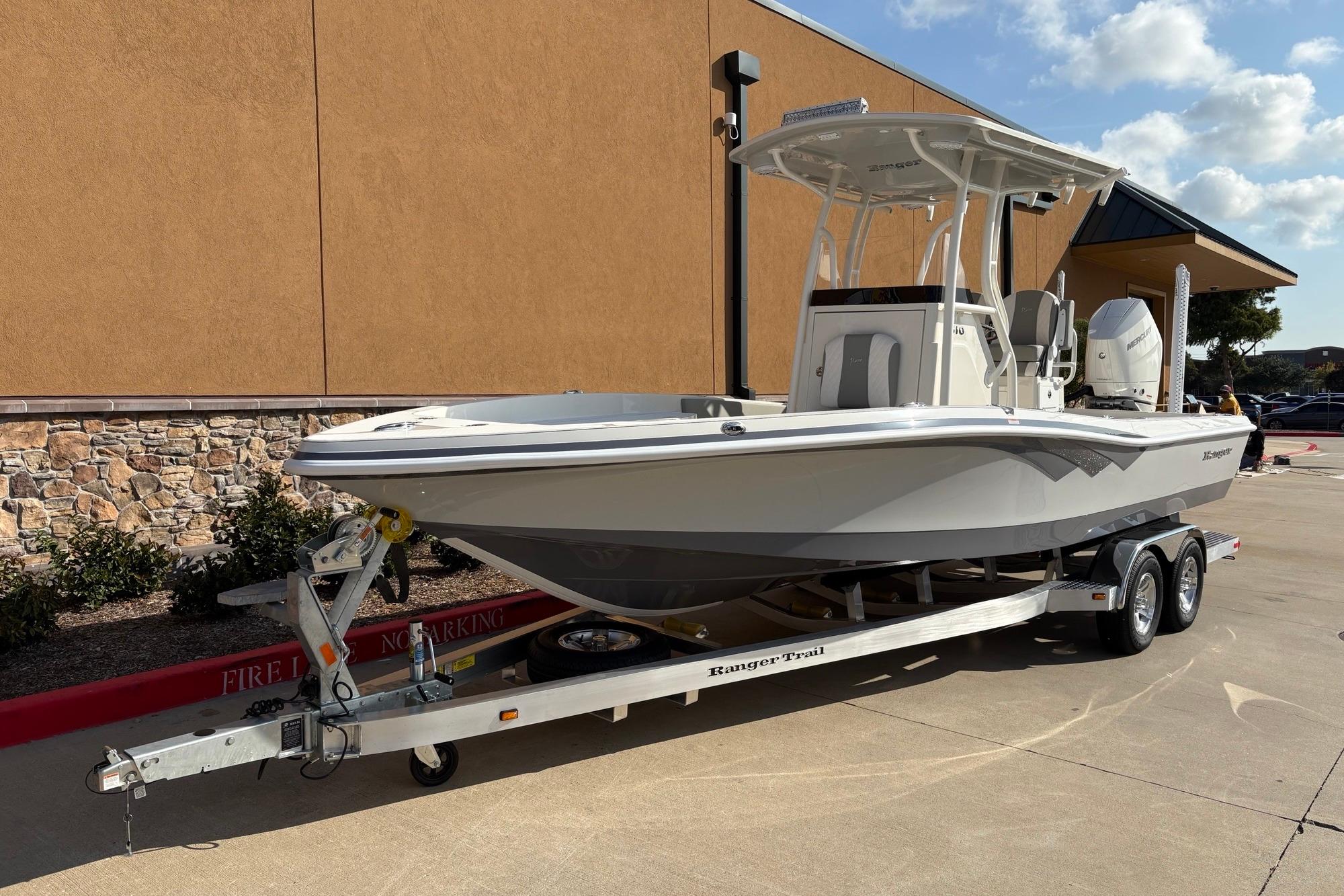 Whether you’re towing teasers over the big blue or taming hero snook in the backcountry, this is your go-to rig. Famous for its soft ride and recognizable Carolina flare, this platform isn’t just good looks. The 2510 comes standard with a stand-up 40-gallon livewell with 2,200 GPH aeration, a large storage console suitable for a Porta Potti, easy access to pumps, strainers and valves as well as all the comforts the family demands. A big fuel tank and 400-horse rating mean you can go farther, faster with economical performance. A wide-open layout hides storage everywhere, while delivering maximum stability and fishabilty. Standard with every 2510 is a dual-axle, aluminum-framed Ranger Trail® trailer that boasts sealed LED lights, four disc brakes, and a center swing jack for the utmost in security and storage options. When you’re ready to step up your game in a big bay boat, the Ranger 2510 will take you to the next level.