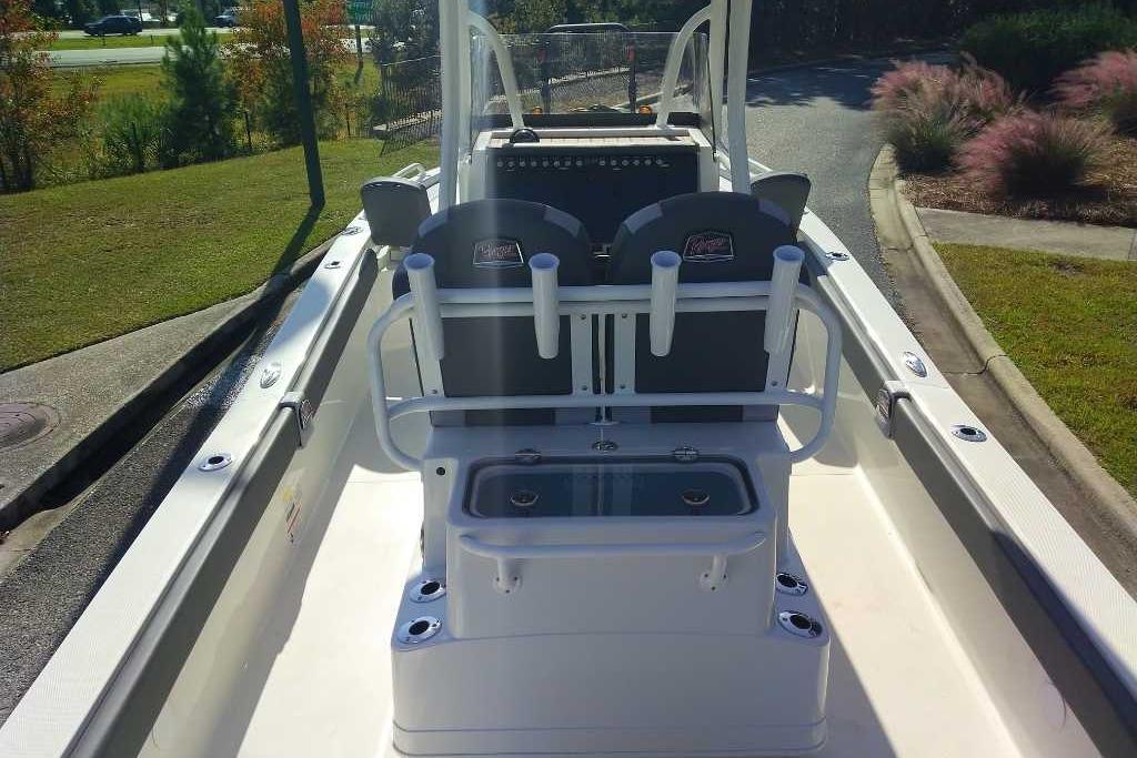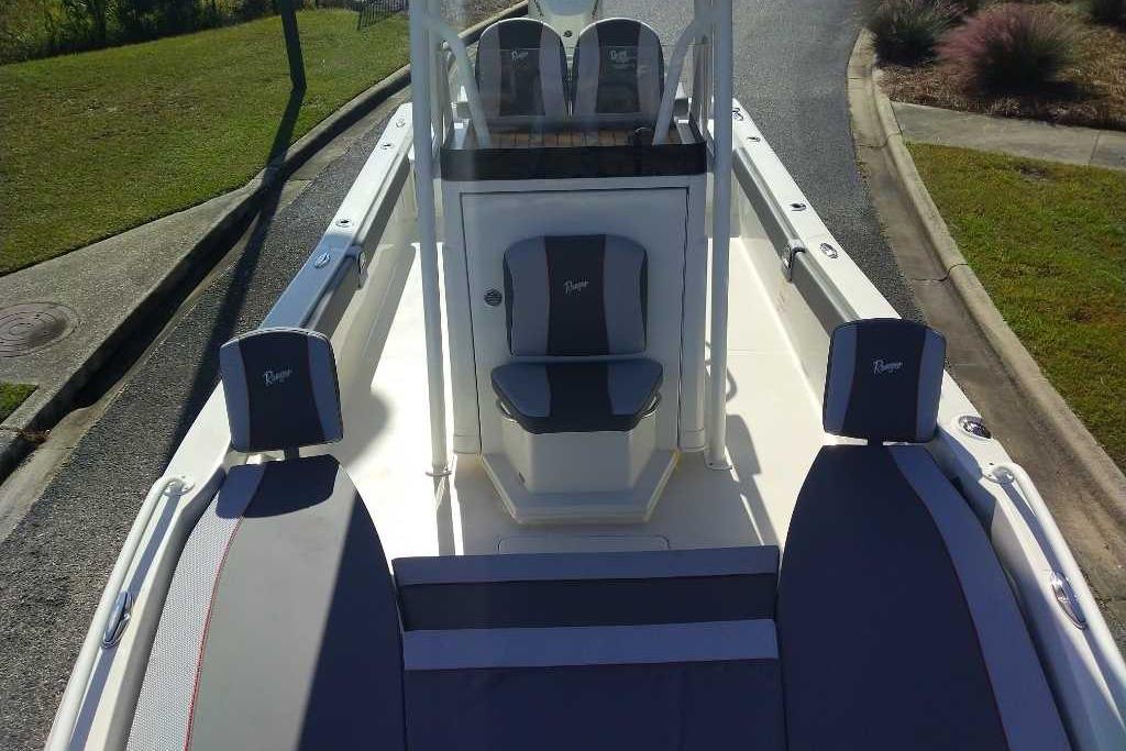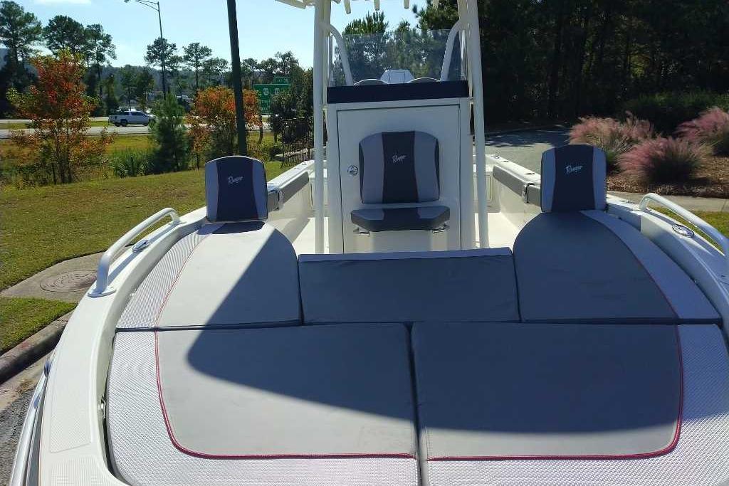 Whether you’re towing teasers over the big blue or taming hero snook in the backcountry, this is your go-to rig. Famous for its soft ride and recognizable Carolina flare, this platform isn’t just good looks. The 2510 comes standard with a stand-up 40-gallon livewell with 2,200 GPH aeration, a large storage console suitable for a Porta Potti, easy access to pumps, strainers and valves as well as all the comforts the family demands. A big fuel tank and 400-horse rating mean you can go farther, faster with economical performance. A wide-open layout hides storage everywhere, while delivering maximum stability and fishabilty. Standard with every 2510 is a dual-axle, aluminum-framed Ranger Trail® trailer that boasts sealed LED lights, four disc brakes, and a center swing jack for the utmost in security and storage options. When you’re ready to step up your game in a big bay boat, the Ranger 2510 will take you to the next level.