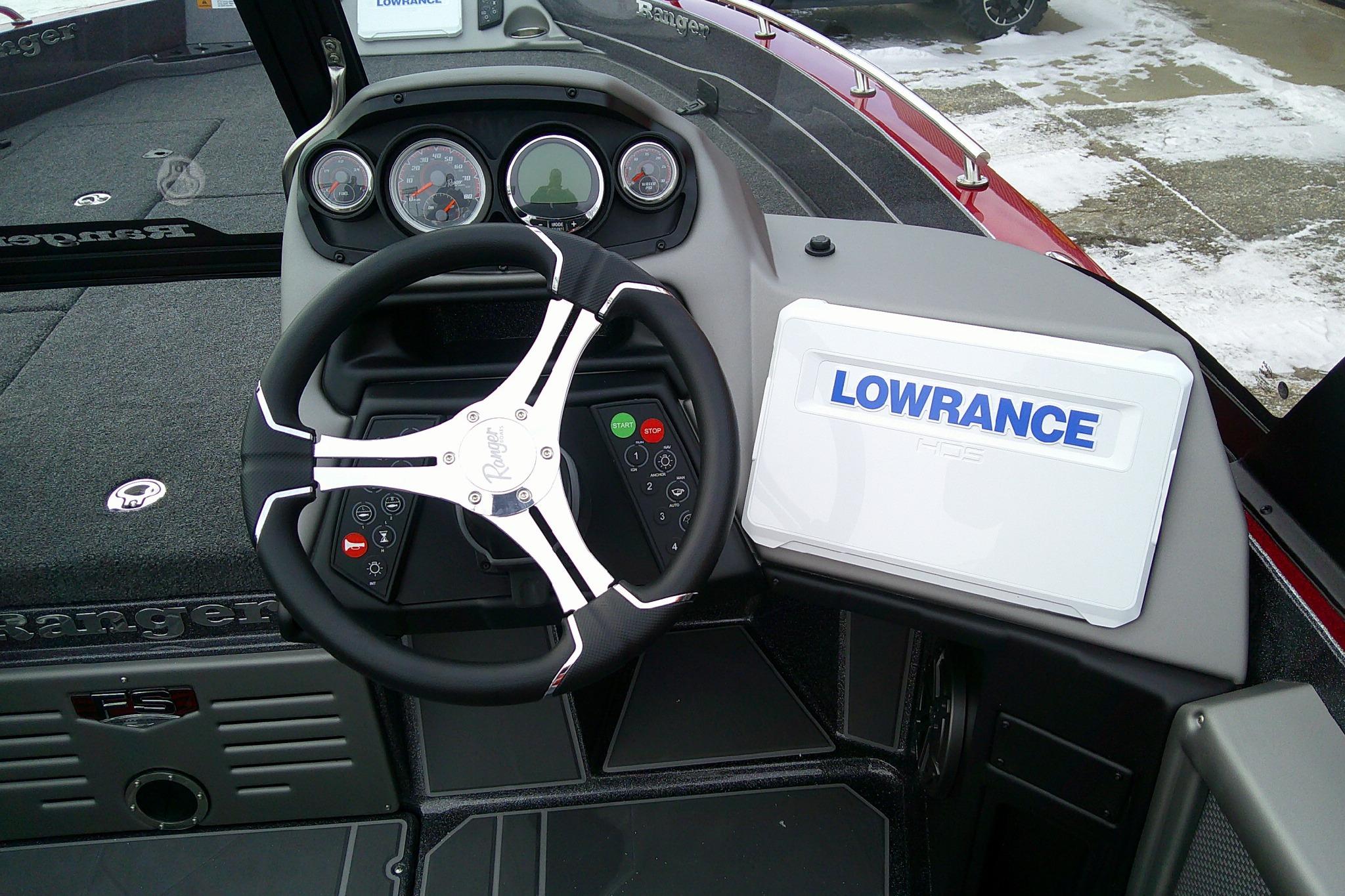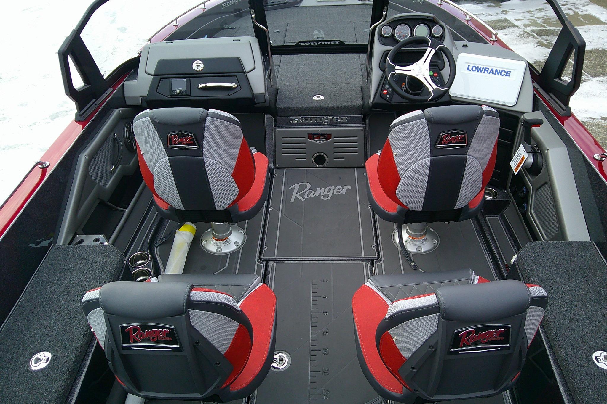 Boasting greater space and power, the 620FS Ranger Cup Equipped takes your game to the next level with a roster of factory-installed options that are most in-demand by touring pros and guides alike. Now, we’ve added even more options with new Garmin® and Lowrance® packages available. Ranger Cup Equipped models enjoy huge electronics units, a walk thru windshield, the trolling motor of your choice, three lithium trolling motor batteries and visual upgrades like polished Challenger wheels. Brushed, CNC-machined aluminum grab handles and accents deliver handsome touches that match the custom-designed, stitched trim throughout that replaces plastic. Twin glove boxes in the passenger console give more space, as do the front storage boxes that have been enlarged to their maximum size. Complementing the wealth of new features are time-honored and perfected Ranger build protocols and quality, from our upright and level flotation for more power, more smarts, and more control. Time you hit the water—hard.