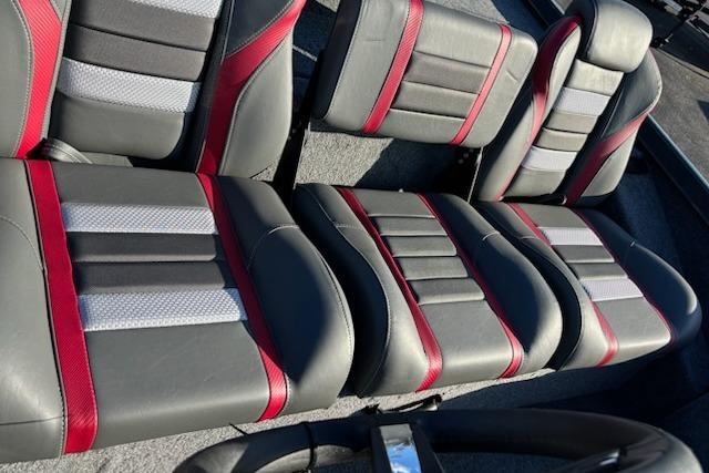 • Custom fitted marine upholstery- driver/passenger bucket seating w/ center fold down & two matching fishing seats