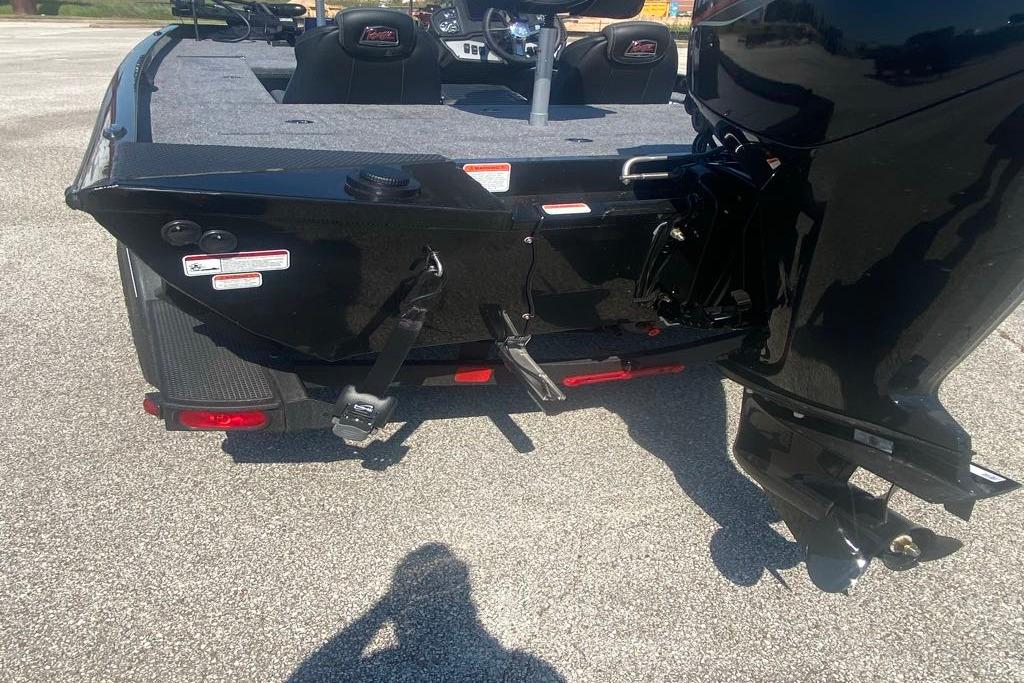 • Custom fiberglass console w/ flush-mounted depthfinder, tach, speed, fuel, trim gauge & easy touch switching