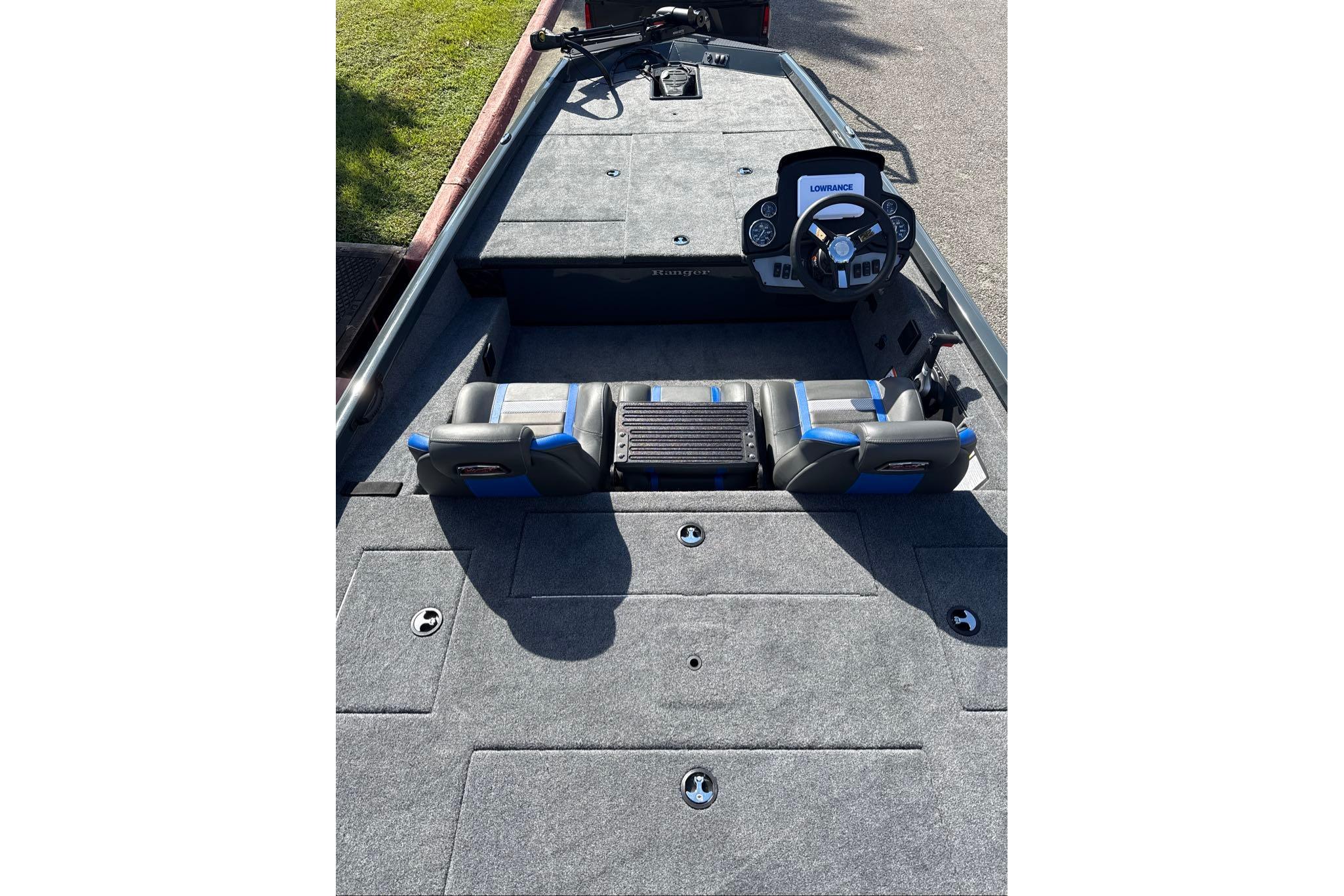 The RT188 is the workhorse of the Ranger aluminum lineup. It has the perfect size, performance, and feature set for derby day in a package that’s easy to own and easy to fish. Plus, it’s Ade even more capable with the addition of the optional Ranger Cup Equipped packages that add a pair of 9" fishfinders and an upgraded trolling motor. The all-welded design is bristling with strength thanks to the full dose of flotation foam packed from bow to stern. This foam serves to insulate the hull from wave shock and vibrations and also deadens sounds so yo ucla stealthily slide into the shallows. A larger-than-most front deck leads the pack in stability and fishability; you won't be stepping on your rods due to a cramped, narrow bow design. The smart layout continues with a recessed trolling motor foot pedal, an 8-foot, 6-inch center rod and tackle locker that’s flanked by two massive storages. A handmade fiberglass console houses electronics up to 12 inches as well as precision steering and rocker switches. When combined with a custom-matched Ranger Trail trailer, the RT188 offers Uncommon Performance At Every Level.