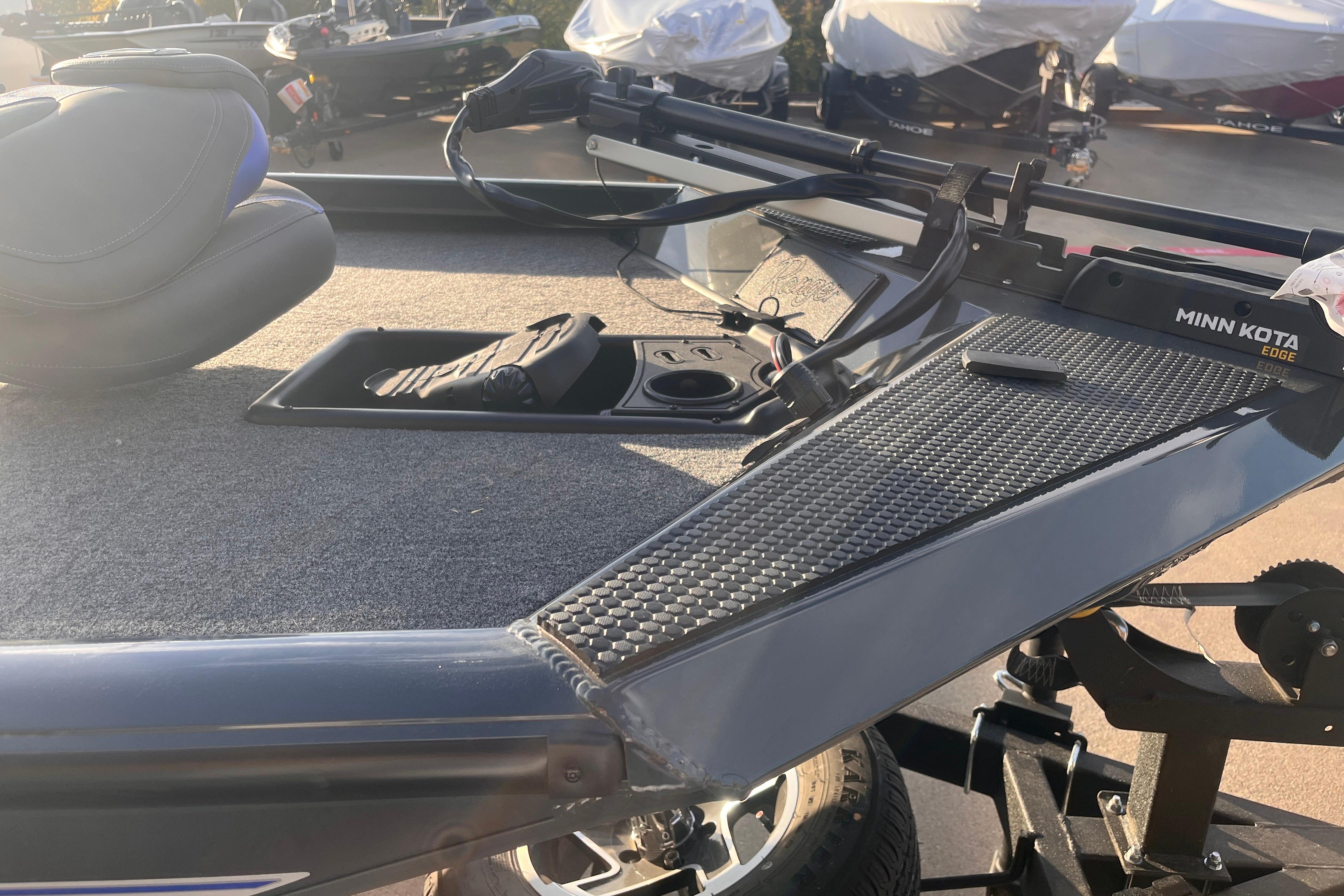 • Custom fiberglass console w/ flush-mounted depthfinder, tach, speed, fuel, trim gauge & easy touch switching