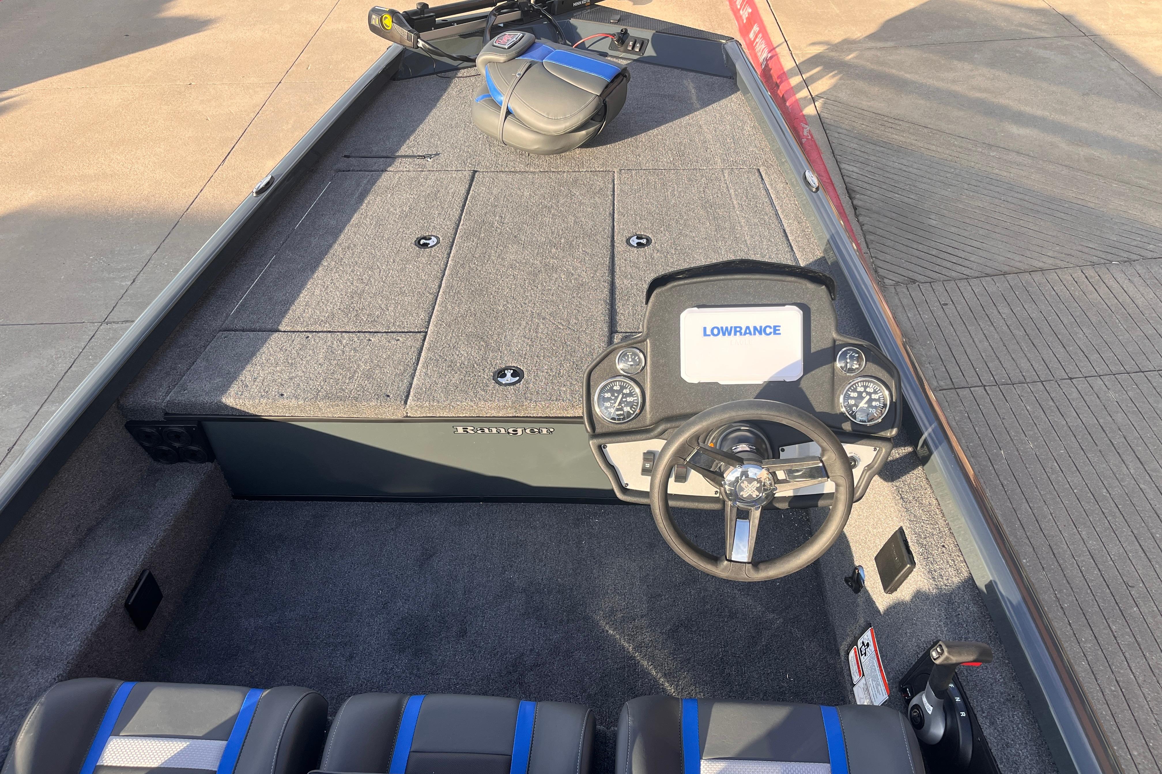 The RT188 is the workhorse of the Ranger aluminum lineup. It has the perfect size, performance, and feature set for derby day in a package that’s easy to own and easy to fish. Plus, it’s Ade even more capable with the addition of the optional Ranger Cup Equipped packages that add a pair of 9" fishfinders and an upgraded trolling motor. The all-welded design is bristling with strength thanks to the full dose of flotation foam packed from bow to stern. This foam serves to insulate the hull from wave shock and vibrations and also deadens sounds so yo ucla stealthily slide into the shallows. A larger-than-most front deck leads the pack in stability and fishability; you won't be stepping on your rods due to a cramped, narrow bow design. The smart layout continues with a recessed trolling motor foot pedal, an 8-foot, 6-inch center rod and tackle locker that’s flanked by two massive storages. A handmade fiberglass console houses electronics up to 12 inches as well as precision steering and rocker switches. When combined with a custom-matched Ranger Trail trailer, the RT188 offers Uncommon Performance At Every Level.