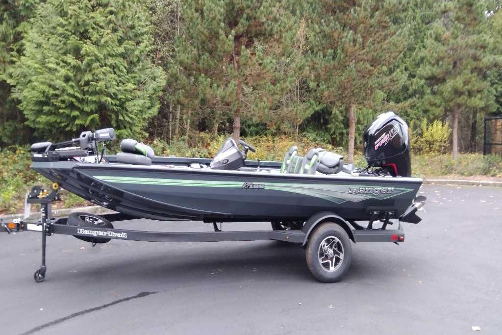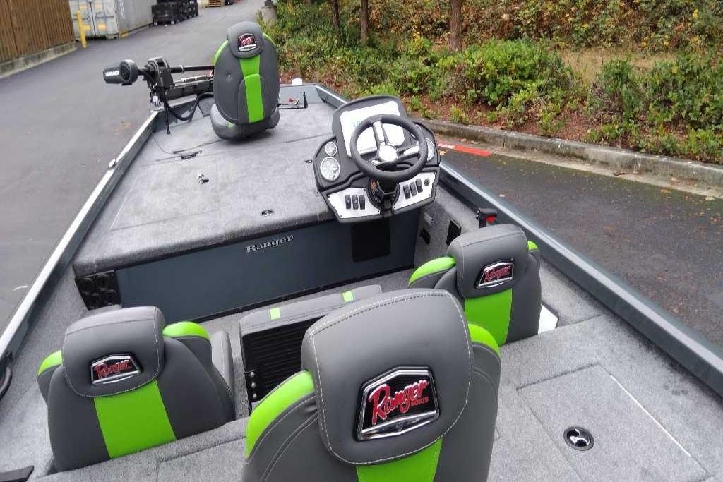 The RT188 is the workhorse of the Ranger aluminum lineup. It has the perfect size, performance, and feature set for derby day in a package that’s easy to own and easy to fish. Plus, it’s Ade even more capable with the addition of the optional Ranger Cup Equipped packages that add a pair of 9" fishfinders and an upgraded trolling motor. The all-welded design is bristling with strength thanks to the full dose of flotation foam packed from bow to stern. This foam serves to insulate the hull from wave shock and vibrations and also deadens sounds so yo ucla stealthily slide into the shallows. A larger-than-most front deck leads the pack in stability and fishability; you won't be stepping on your rods due to a cramped, narrow bow design. The smart layout continues with a recessed trolling motor foot pedal, an 8-foot, 6-inch center rod and tackle locker that’s flanked by two massive storages. A handmade fiberglass console houses electronics up to 12 inches as well as precision steering and rocker switches. When combined with a custom-matched Ranger Trail trailer, the RT188 offers Uncommon Performance At Every Level.