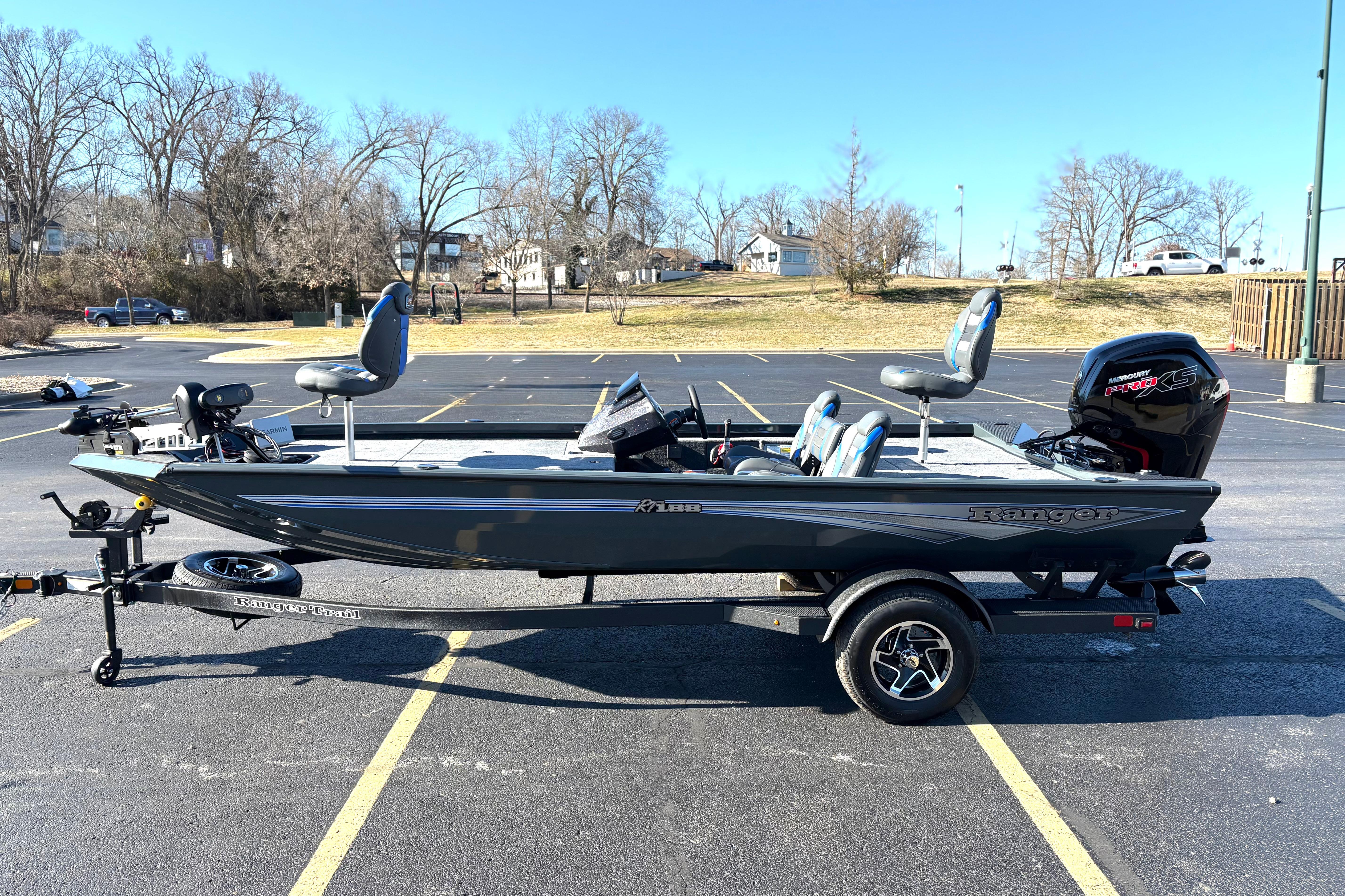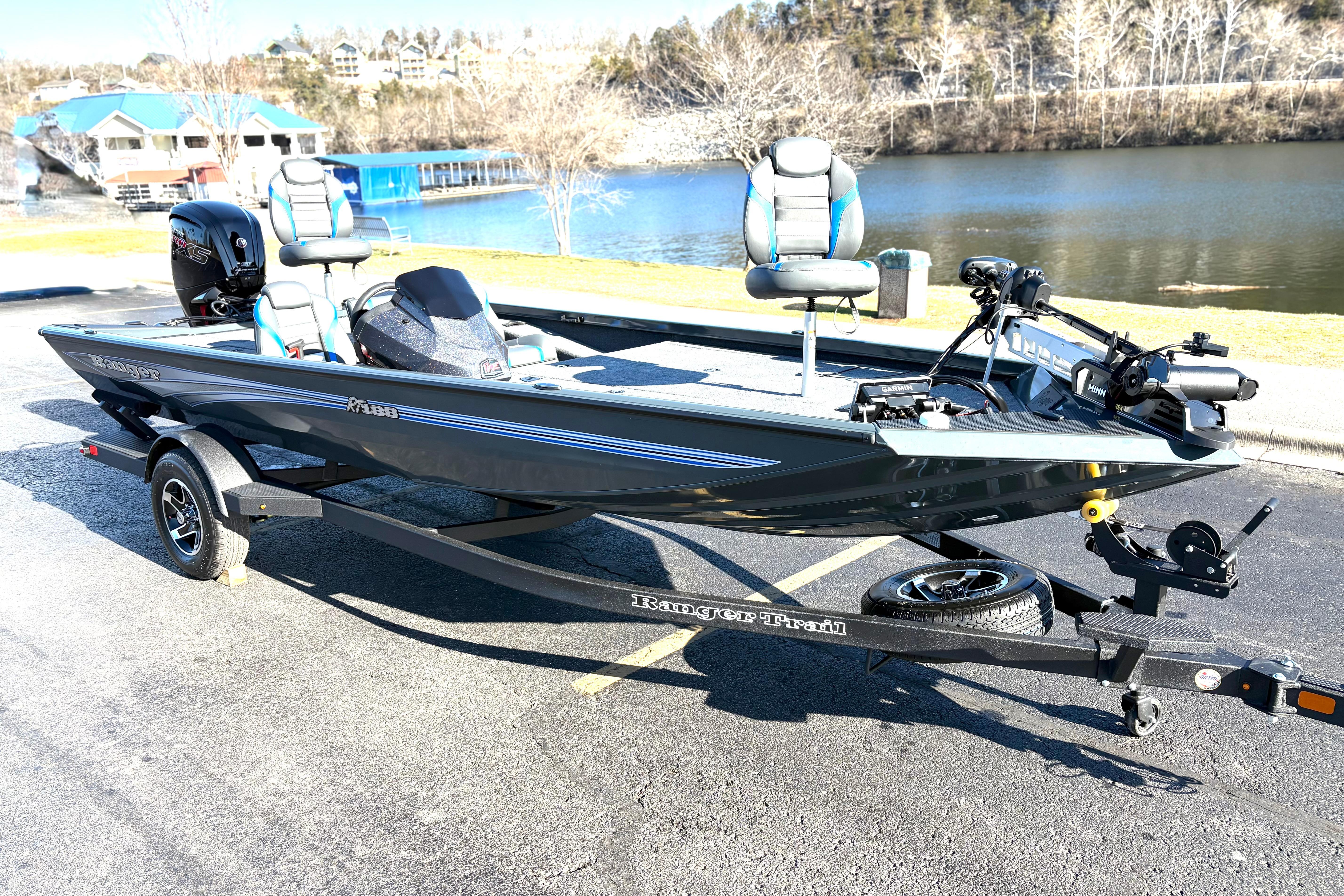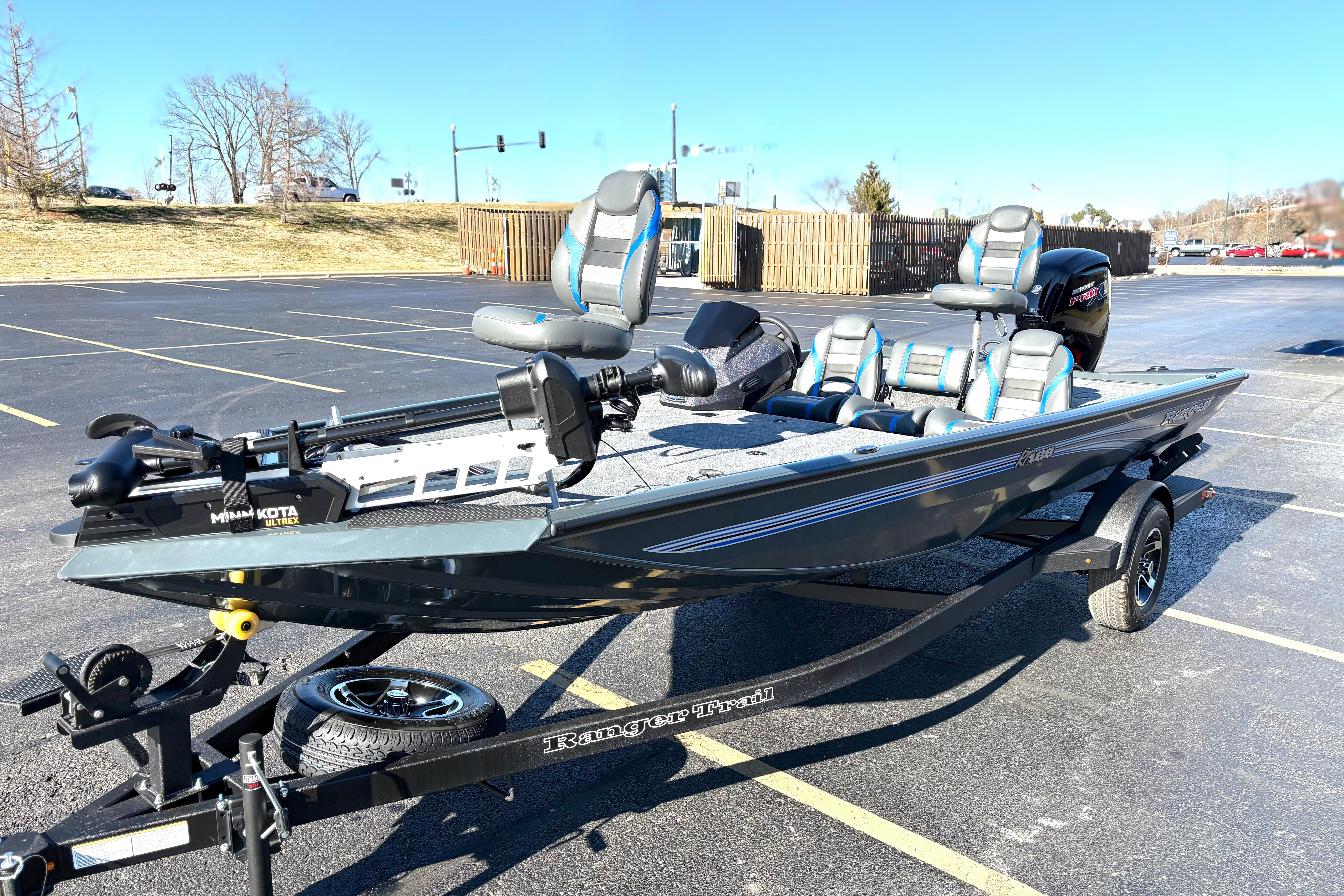 The RT188 is the workhorse of the Ranger aluminum lineup. It has the perfect size, performance, and feature set for derby day in a package that’s easy to own and easy to fish. Plus, it’s Ade even more capable with the addition of the optional Ranger Cup Equipped packages that add a pair of 9" fishfinders and an upgraded trolling motor. The all-welded design is bristling with strength thanks to the full dose of flotation foam packed from bow to stern. This foam serves to insulate the hull from wave shock and vibrations and also deadens sounds so yo ucla stealthily slide into the shallows. A larger-than-most front deck leads the pack in stability and fishability; you won't be stepping on your rods due to a cramped, narrow bow design. The smart layout continues with a recessed trolling motor foot pedal, an 8-foot, 6-inch center rod and tackle locker that’s flanked by two massive storages. A handmade fiberglass console houses electronics up to 12 inches as well as precision steering and rocker switches. When combined with a custom-matched Ranger Trail trailer, the RT188 offers Uncommon Performance At Every Level.