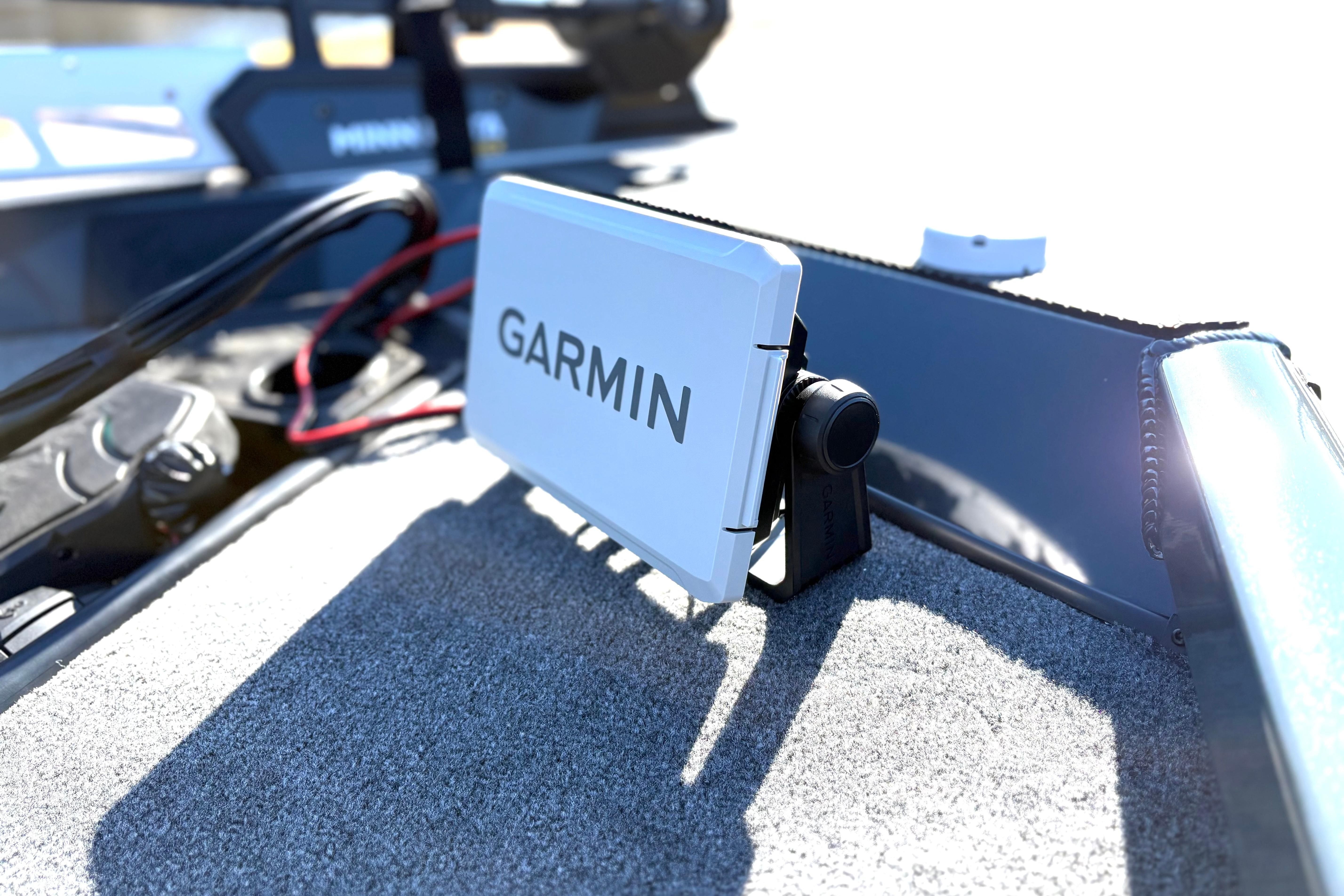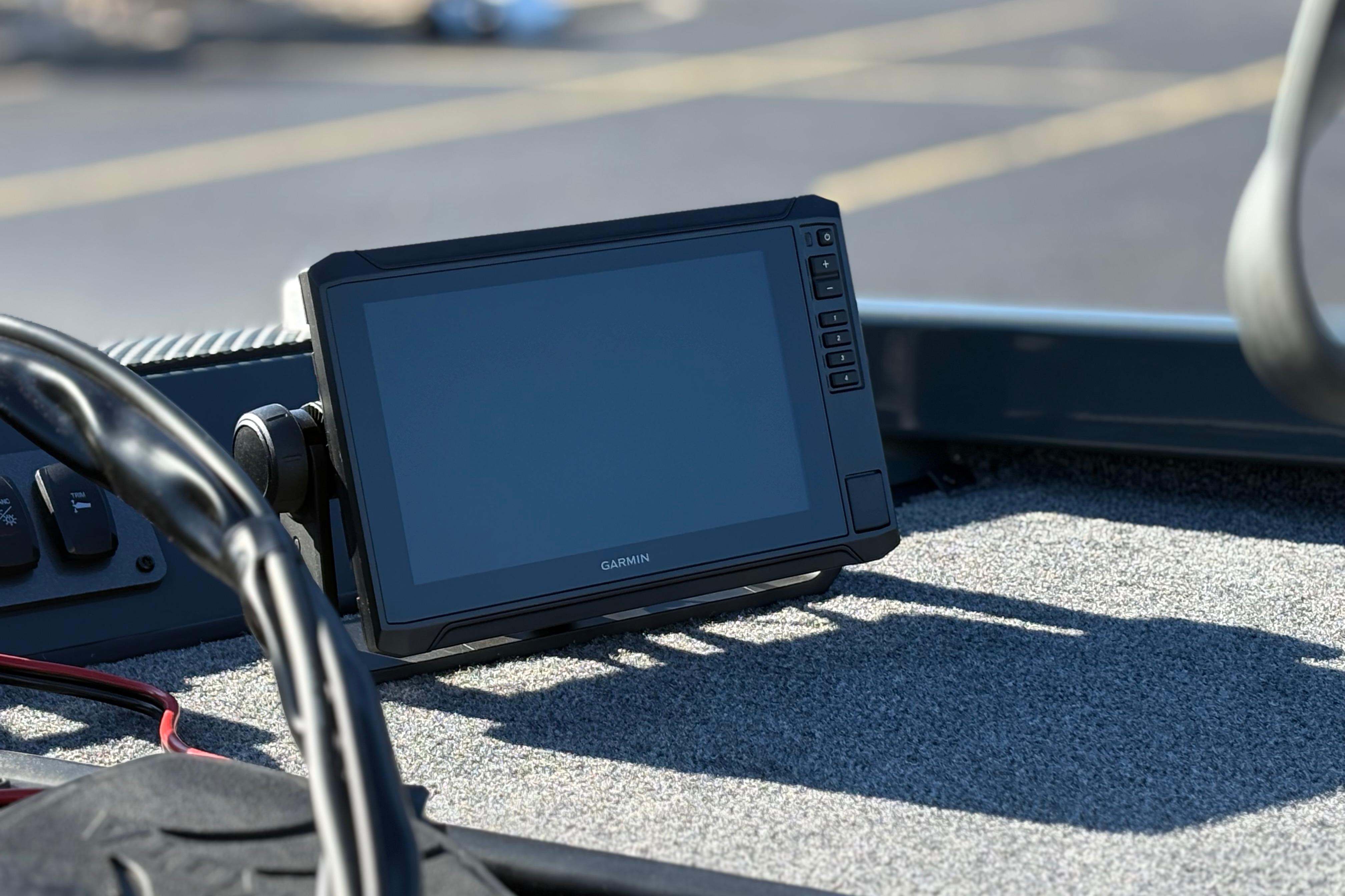 • Custom fiberglass console w/ flush-mounted depthfinder, tach, speed, fuel, trim gauge & easy touch switching