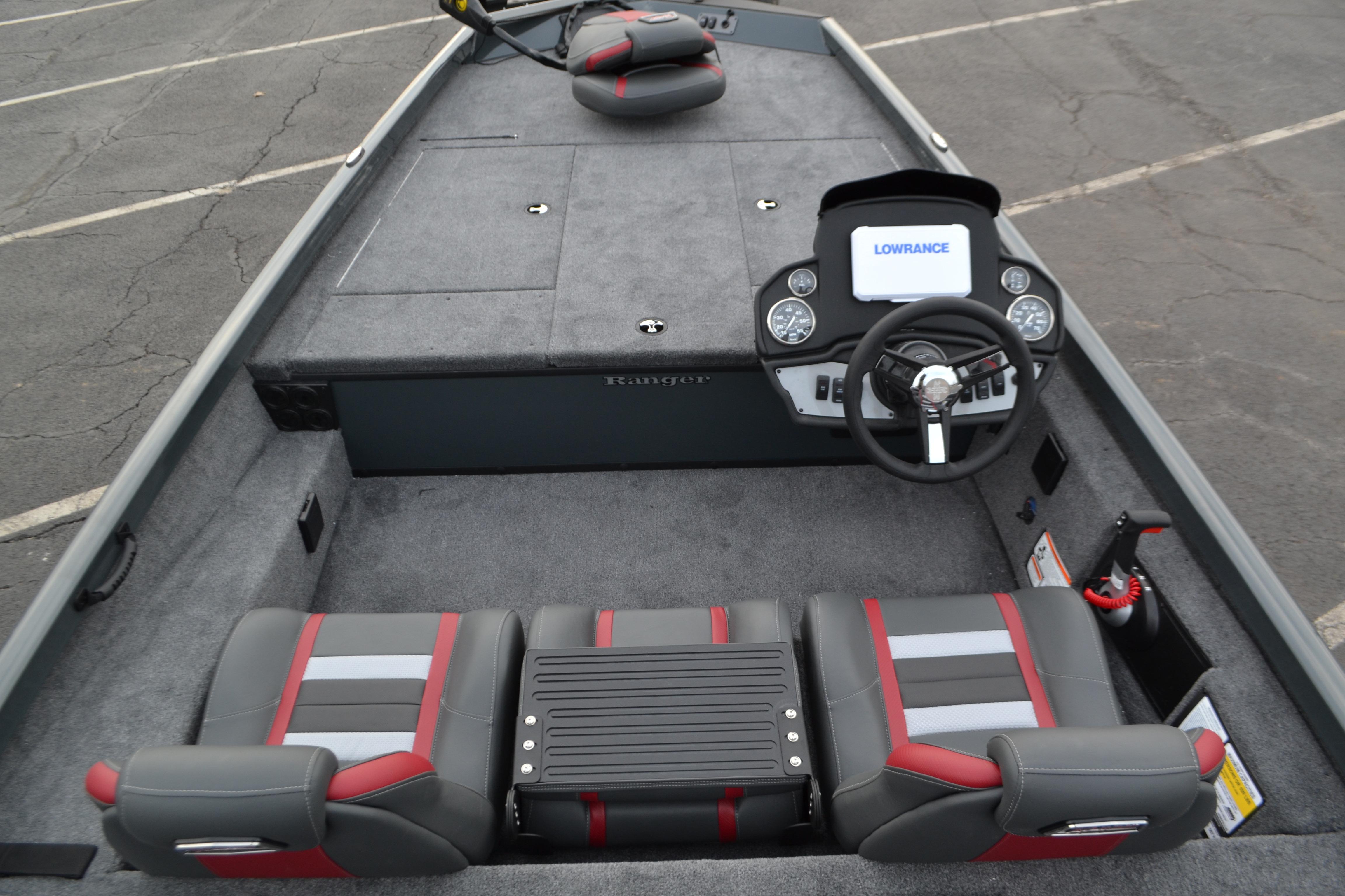 The RT188 is the workhorse of the Ranger aluminum lineup. It has the perfect size, performance, and feature set for derby day in a package that’s easy to own and easy to fish. Plus, it’s Ade even more capable with the addition of the optional Ranger Cup Equipped packages that add a pair of 9" fishfinders and an upgraded trolling motor. The all-welded design is bristling with strength thanks to the full dose of flotation foam packed from bow to stern. This foam serves to insulate the hull from wave shock and vibrations and also deadens sounds so yo ucla stealthily slide into the shallows. A larger-than-most front deck leads the pack in stability and fishability; you won't be stepping on your rods due to a cramped, narrow bow design. The smart layout continues with a recessed trolling motor foot pedal, an 8-foot, 6-inch center rod and tackle locker that’s flanked by two massive storages. A handmade fiberglass console houses electronics up to 12 inches as well as precision steering and rocker switches. When combined with a custom-matched Ranger Trail trailer, the RT188 offers Uncommon Performance At Every Level.