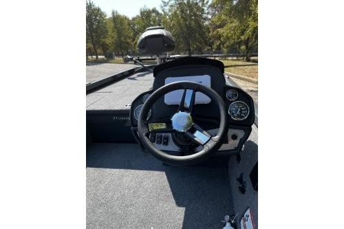 • Custom fiberglass console w/ flush-mounted depthfinder, tach, speed, fuel, trim gauge & easy touch switching