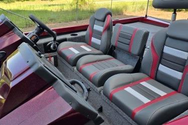 • Custom fitted marine upholstery- driver/passenger bucket seating w/ center fold down & two matching fishing seats