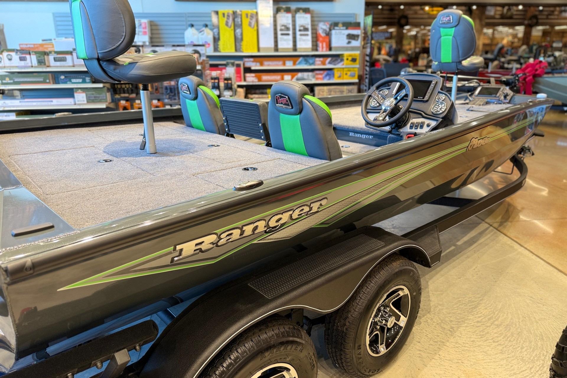 As the flagship of the RT lineup, the RT198P is a true standout with greater performance, fishability, and capability than most anything in its class. A monster front casting deck delivers space and stability for multiple anglers without breaking a sweat. Our wider design keeps more of the hull in the water while on the trolling motor so you’re less affected by wind and wave action, delivering frustration-free fishing. It also provides superior storage via two rod boxes, an insulated cooler, and an oversized center tackle storage, all with locking latches and weather-proof gaskets and insulation. With an advanced pad-bottom hull, performance-enhancing integrated engine setback, 150-horsepower rating and a big-league layout, you’ll stand out and fly by. Unparalleled craftsmanship is obvious inside and out from the all-welded, wood-free construction to the updated interior touches and handmade fiberglass consoles that hold class-leading 12-inch electronics. Inside the hull is our signature closed-cell flotation foam that solidifies, strengthens and quiets the design for a solid one-piece feel. Oversized rear storage boxes are tailor-made for tackle trays and the rear deck is centered by a divided, timed and aerated livewell. Want even more derby-ready goodness? Opt for one of the Ranger Cup Equipped packages that adds a pair of 9" fishfinders and an upgraded trolling motor, packaged to make you more effective and save you money. Welcome To The Big Leagues.
