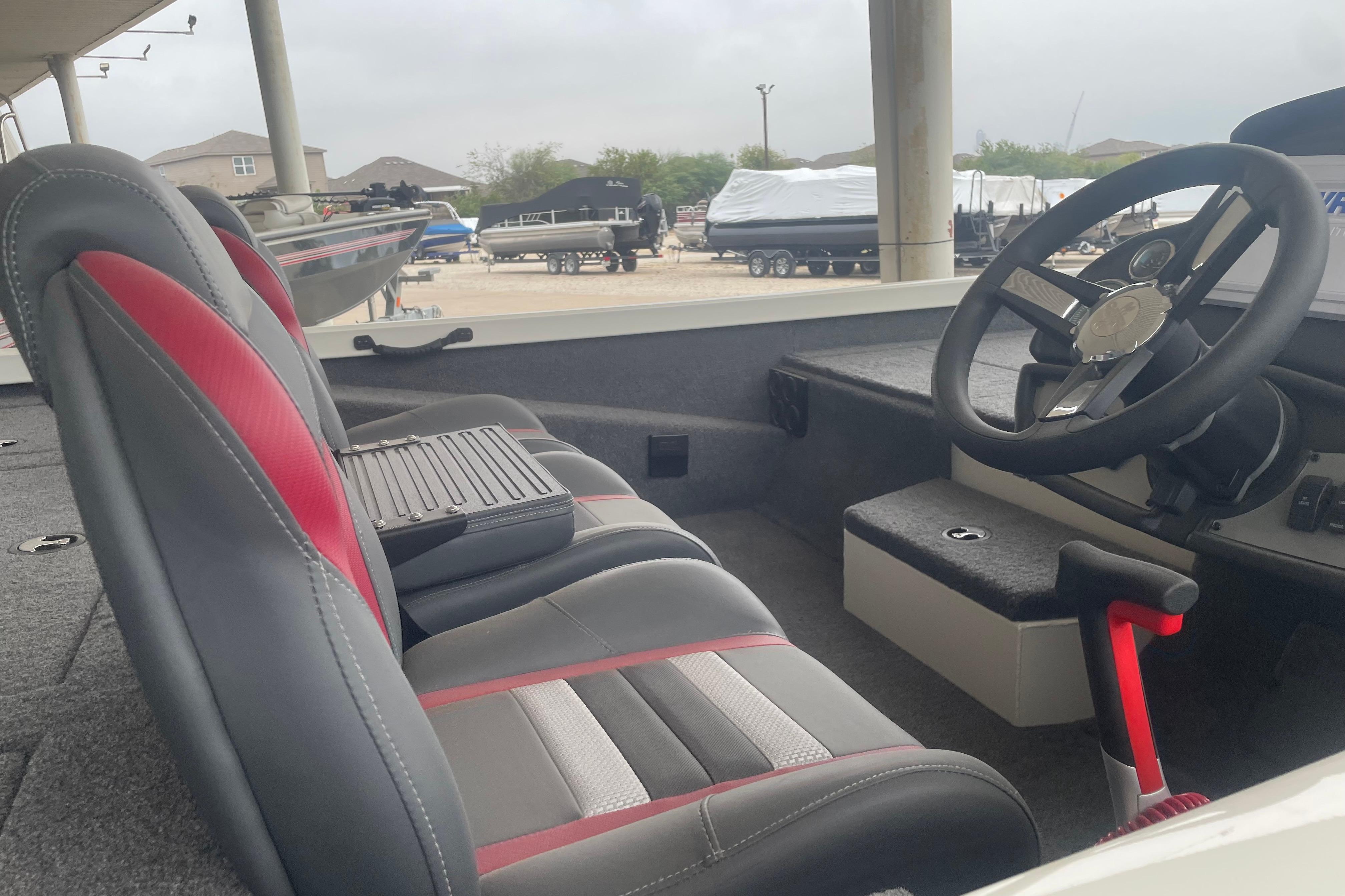 • Custom fitted marine upholstery- driver/passenger bucket seating w/ center fold down & two matching fishing seats