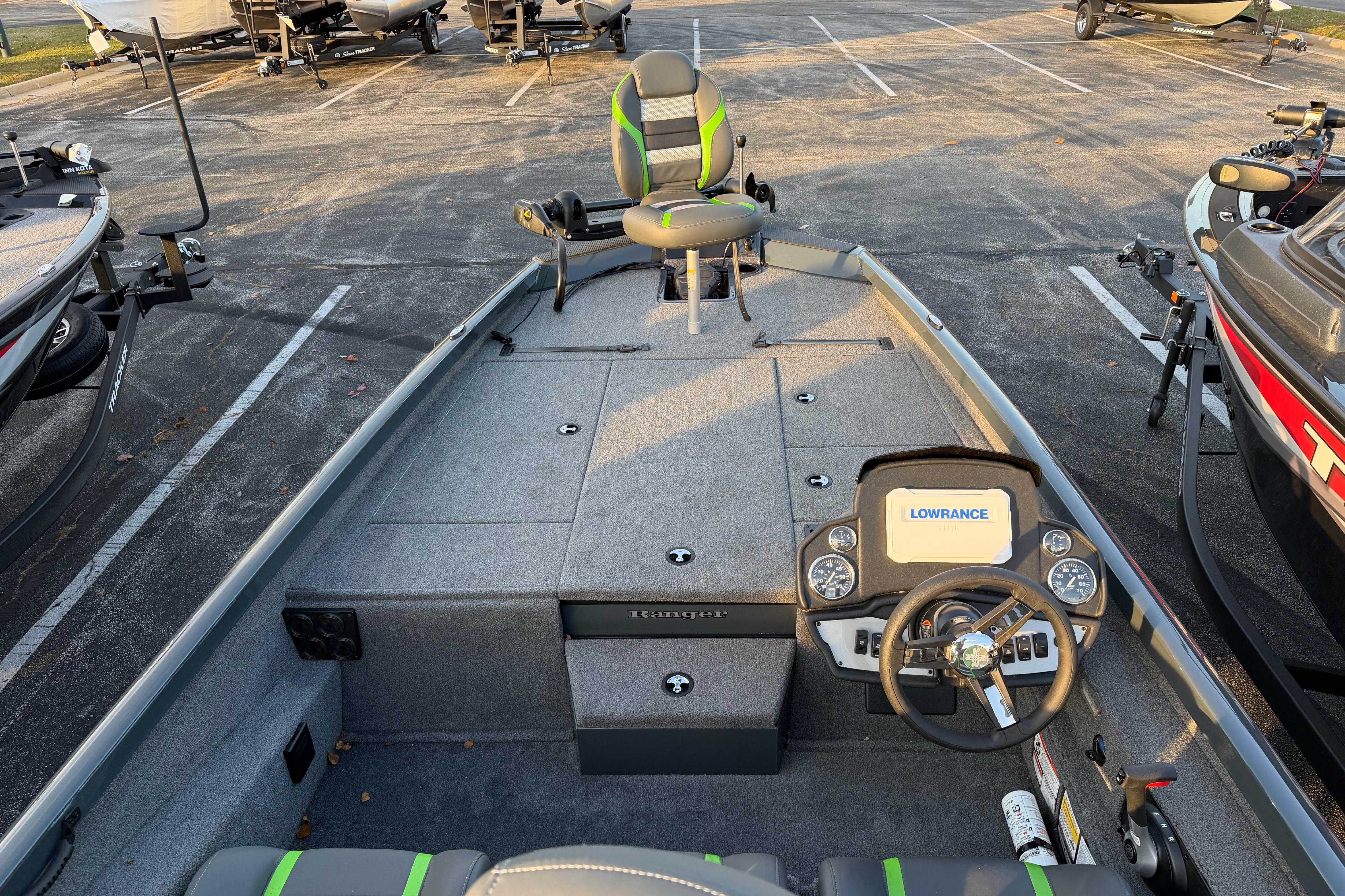 As the flagship of the RT lineup, the RT198P is a true standout with greater performance, fishability, and capability than most anything in its class. A monster front casting deck delivers space and stability for multiple anglers without breaking a sweat. Our wider design keeps more of the hull in the water while on the trolling motor so you’re less affected by wind and wave action, delivering frustration-free fishing. It also provides superior storage via two rod boxes, an insulated cooler, and an oversized center tackle storage, all with locking latches and weather-proof gaskets and insulation. With an advanced pad-bottom hull, performance-enhancing integrated engine setback, 150-horsepower rating and a big-league layout, you’ll stand out and fly by. Unparalleled craftsmanship is obvious inside and out from the all-welded, wood-free construction to the updated interior touches and handmade fiberglass consoles that hold class-leading 12-inch electronics. Inside the hull is our signature closed-cell flotation foam that solidifies, strengthens and quiets the design for a solid one-piece feel. Oversized rear storage boxes are tailor-made for tackle trays and the rear deck is centered by a divided, timed and aerated livewell. Want even more derby-ready goodness? Opt for one of the Ranger Cup Equipped packages that adds a pair of 9" fishfinders and an upgraded trolling motor, packaged to make you more effective and save you money. Welcome To The Big Leagues.