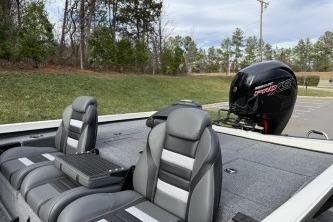 • Custom fitted marine upholstery- driver/passenger bucket seating w/ center fold down & two matching fishing seats