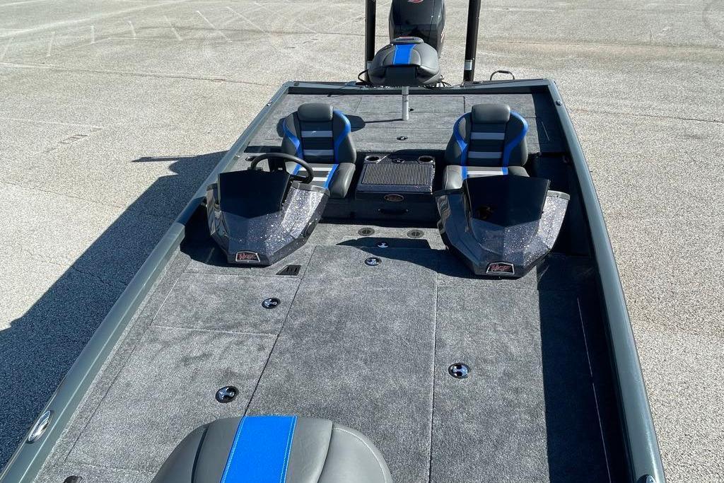 • Custom fitted marine upholstery- driver/passenger bucket seating w/ center fold down & two matching fishing seats
