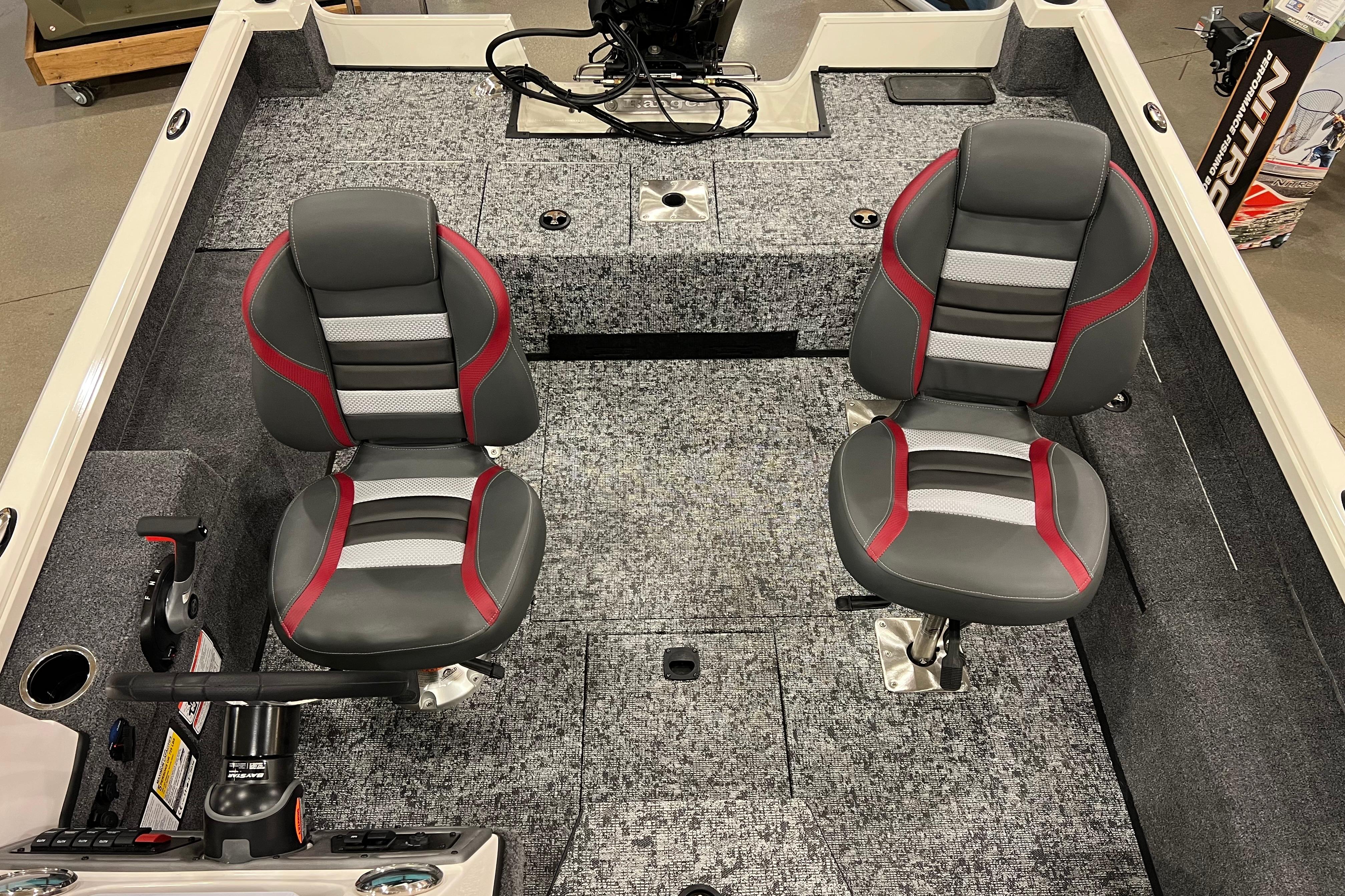 • Custom fitted marine upholstery- (3) matching fishing seats, driver seat slides