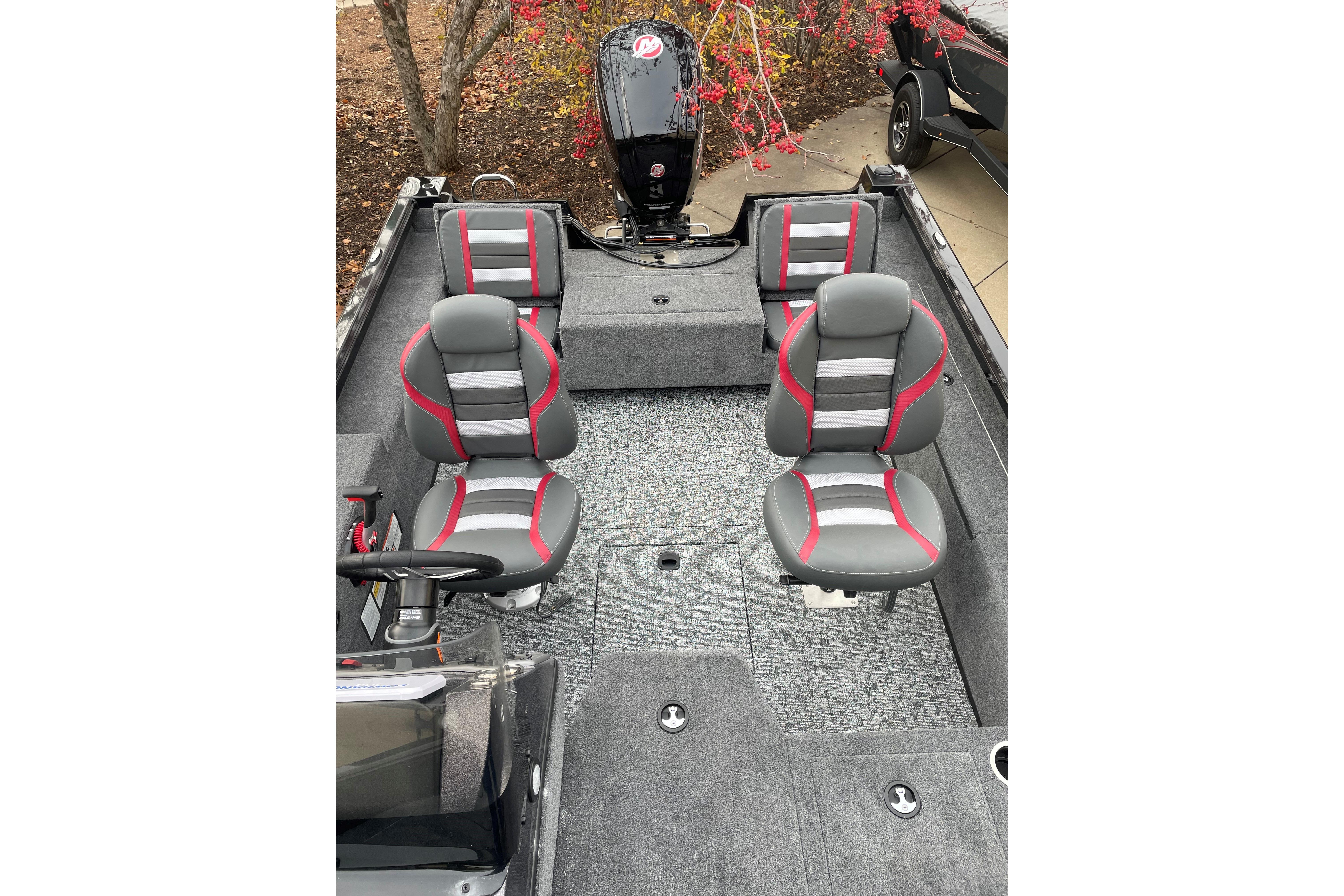 • Custom fitted marine upholstery- (3) matching fishing seats, driver seat slides
