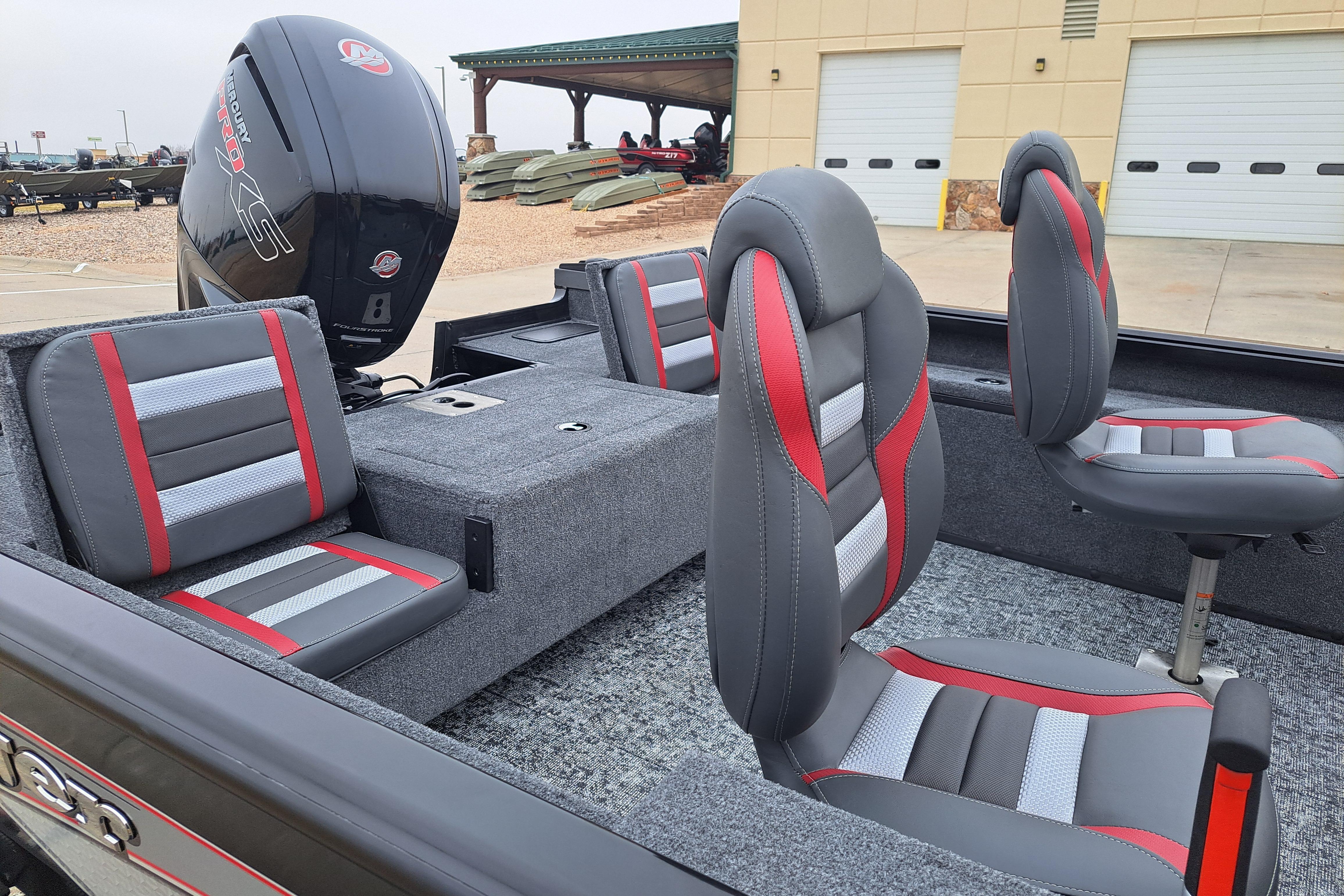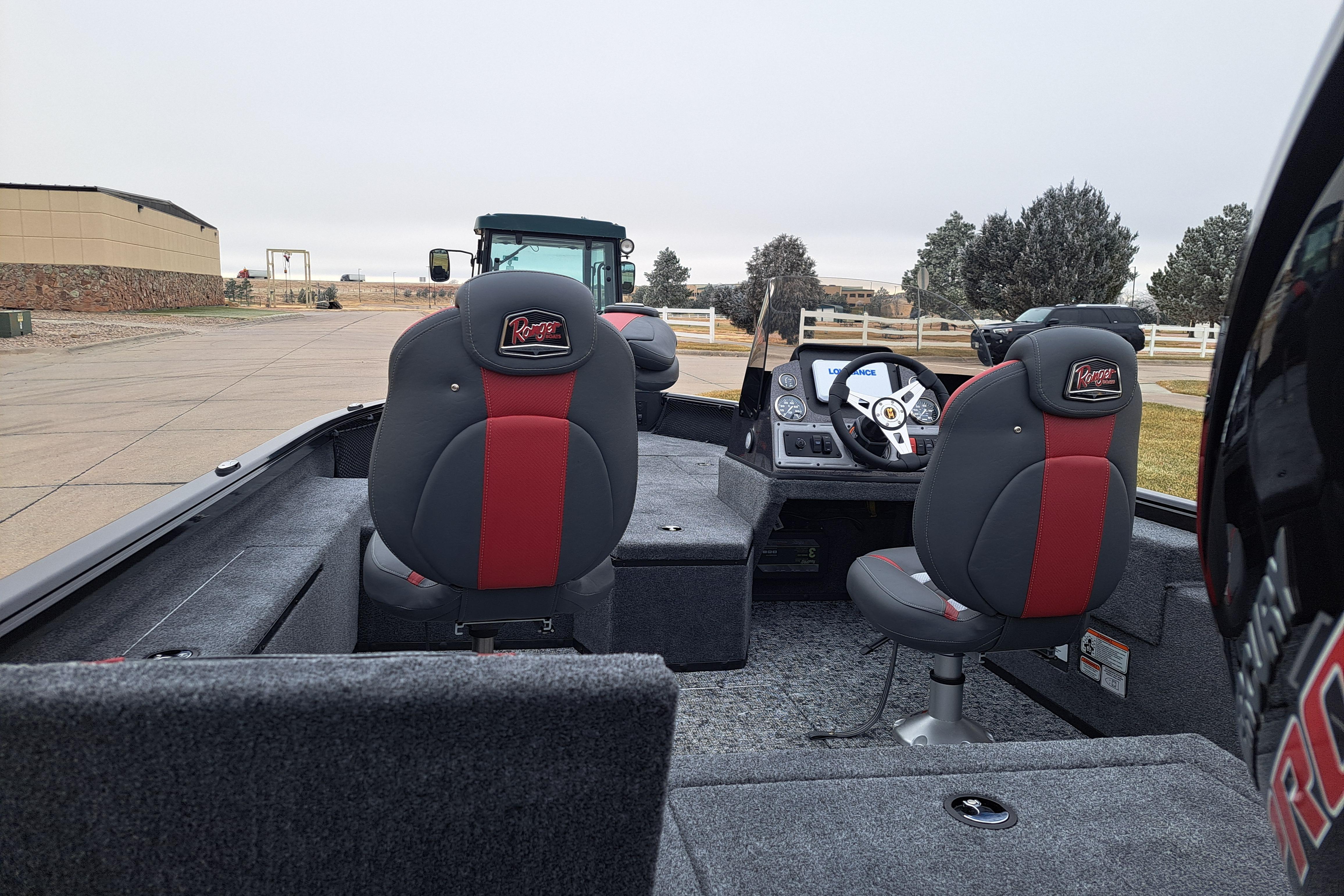 • Custom fitted marine upholstery- (3) matching fishing seats, driver seat slides