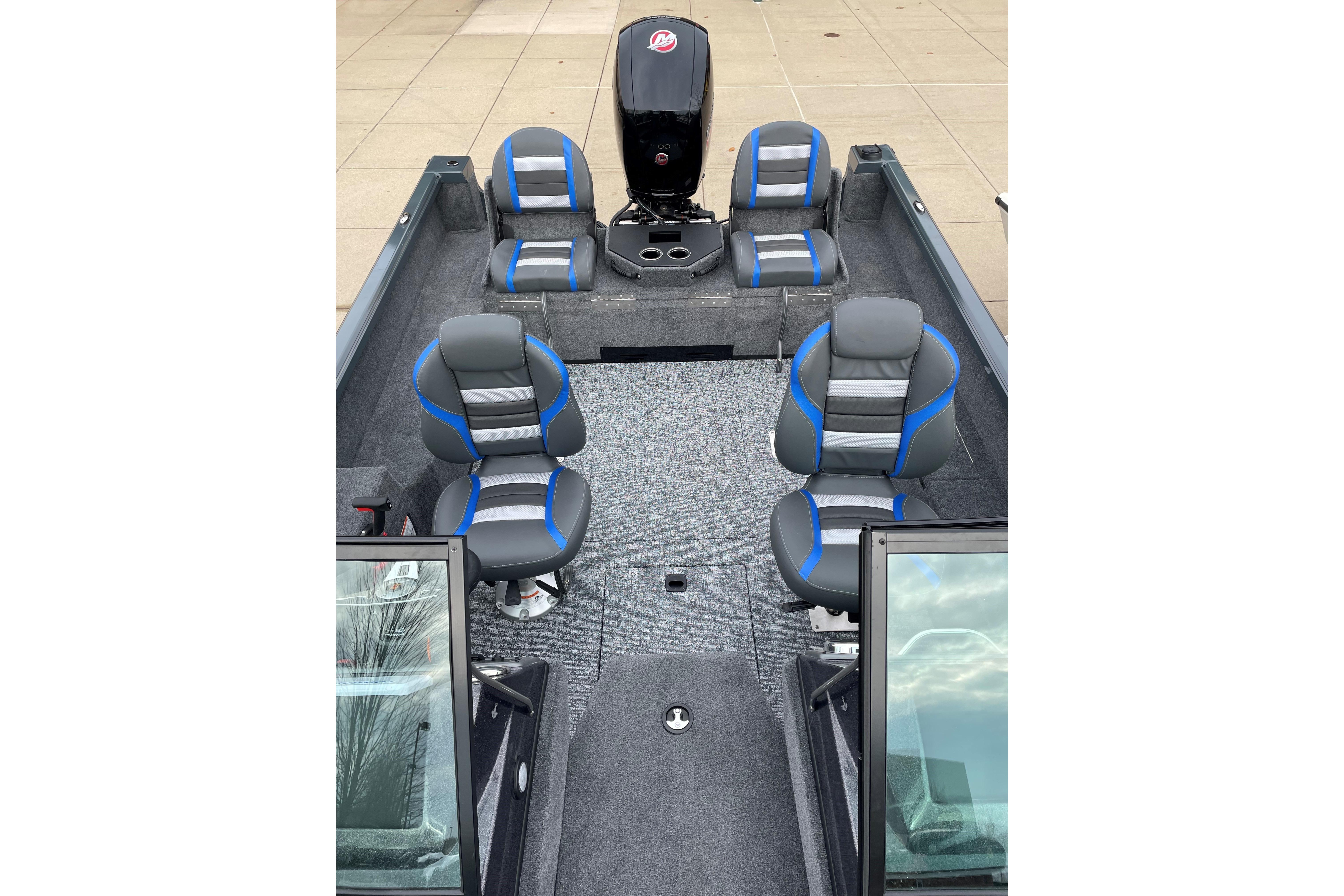 • Custom fitted marine upholstery- (3) matching fishing seats, driver seat slides