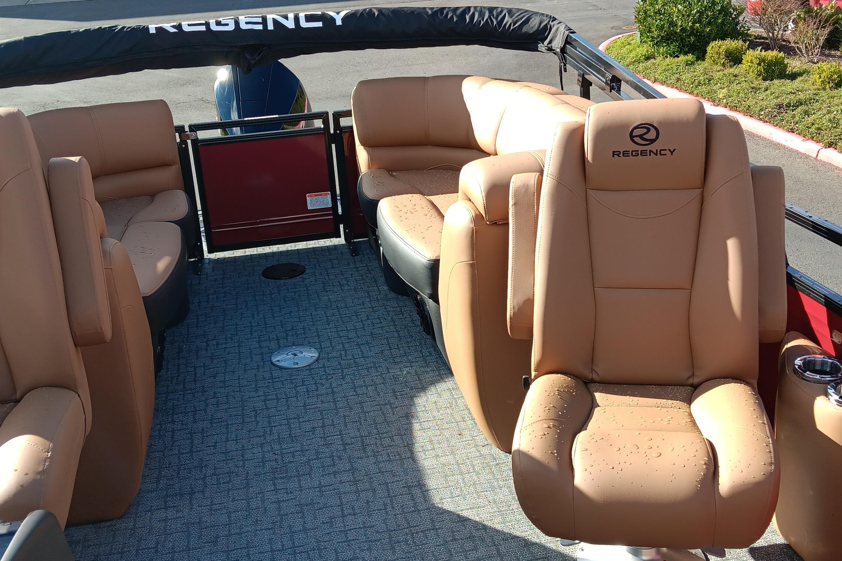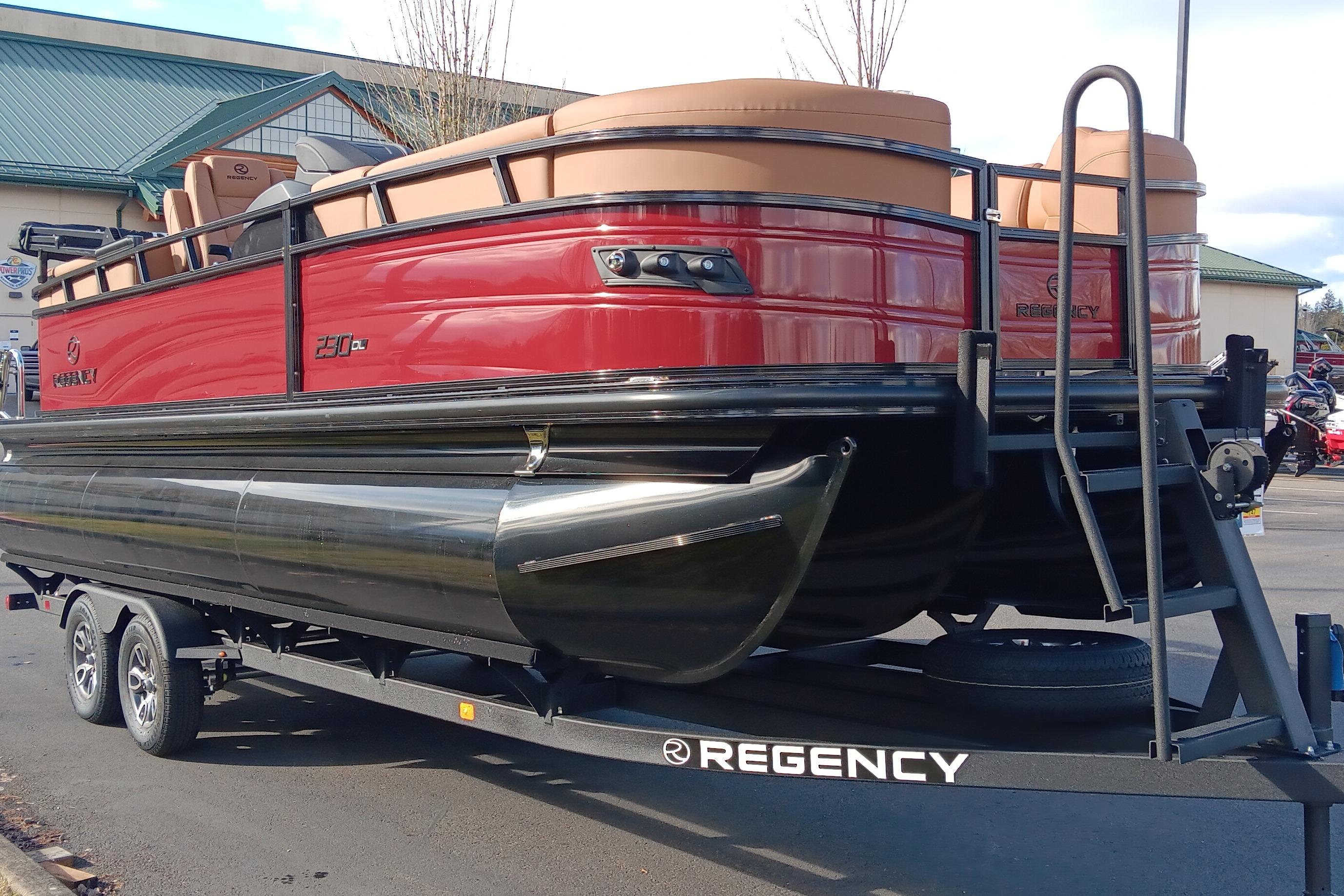 Step aboard the 2026 REGENCY® 230 DL—a pontoon designed for those who expect more from every moment on the water. Luxury and performance unite in a bold, refined design where every detail elevates your experience. Relax on plush wraparound lounges with lockable storage, or take command from the raised helm in an adjustable captain’s chair. The REGENCY® omni2™ 12" touchscreen puts control at your fingertips, paired with Bluetooth® connectivity and premium Wet Sounds® audio for an immersive ride. Create the perfect atmosphere with customizable RGB lighting that syncs to your playlist. Stay powered with USB ports at every seat and wireless charging at the helm. Premium woven vinyl flooring and STOW MORE™ quiet-close hinges add convenience and sophistication. Underneath, triple 26" multichambered logs and power-assisted hydraulic steering deliver smooth, confident handling. A removable ski tow pylon, extended swim platform, new telescoping wide step stainless steel ladder, and LED navigation lights ensure you’re ready for watersports or sunset cruises. The REGENCY® 230 DL isn’t just a pontoon—it’s a new standard in style and innovation. Make every outing unforgettable.