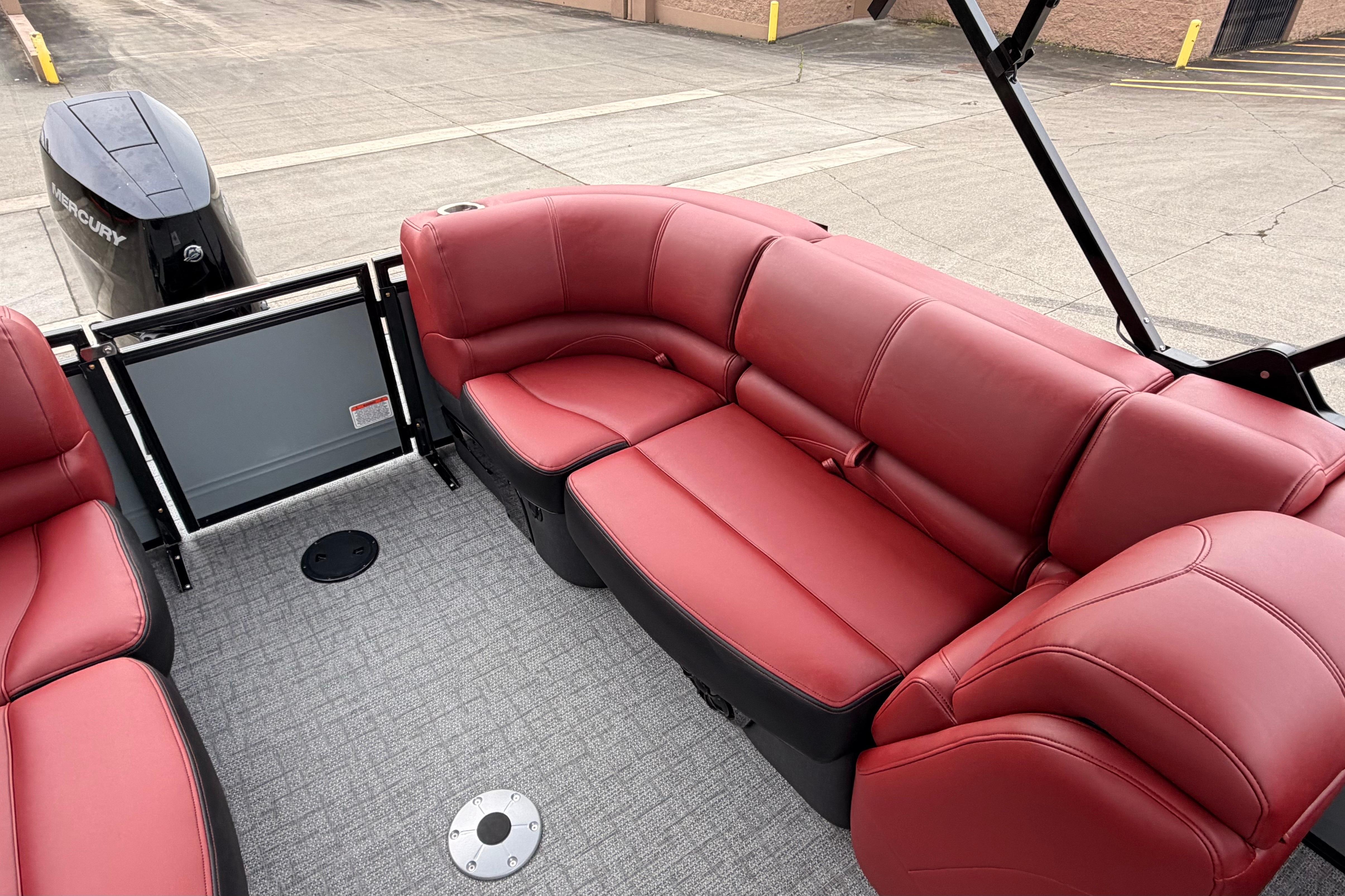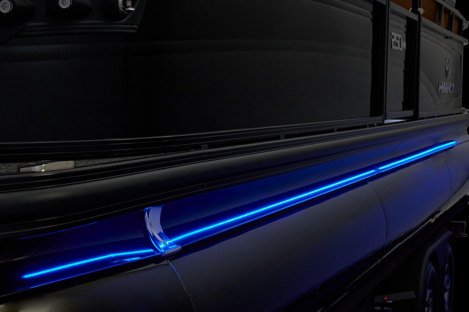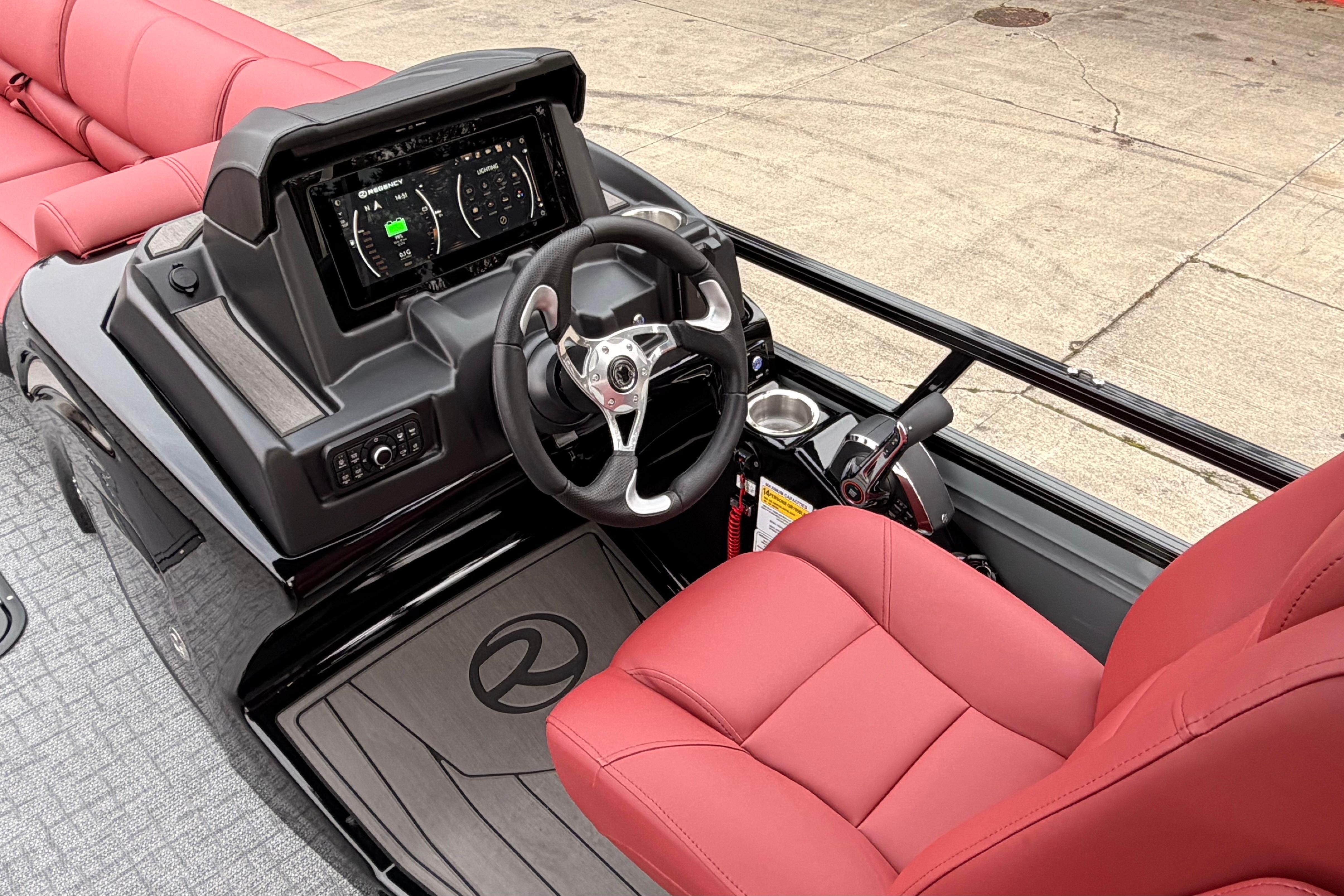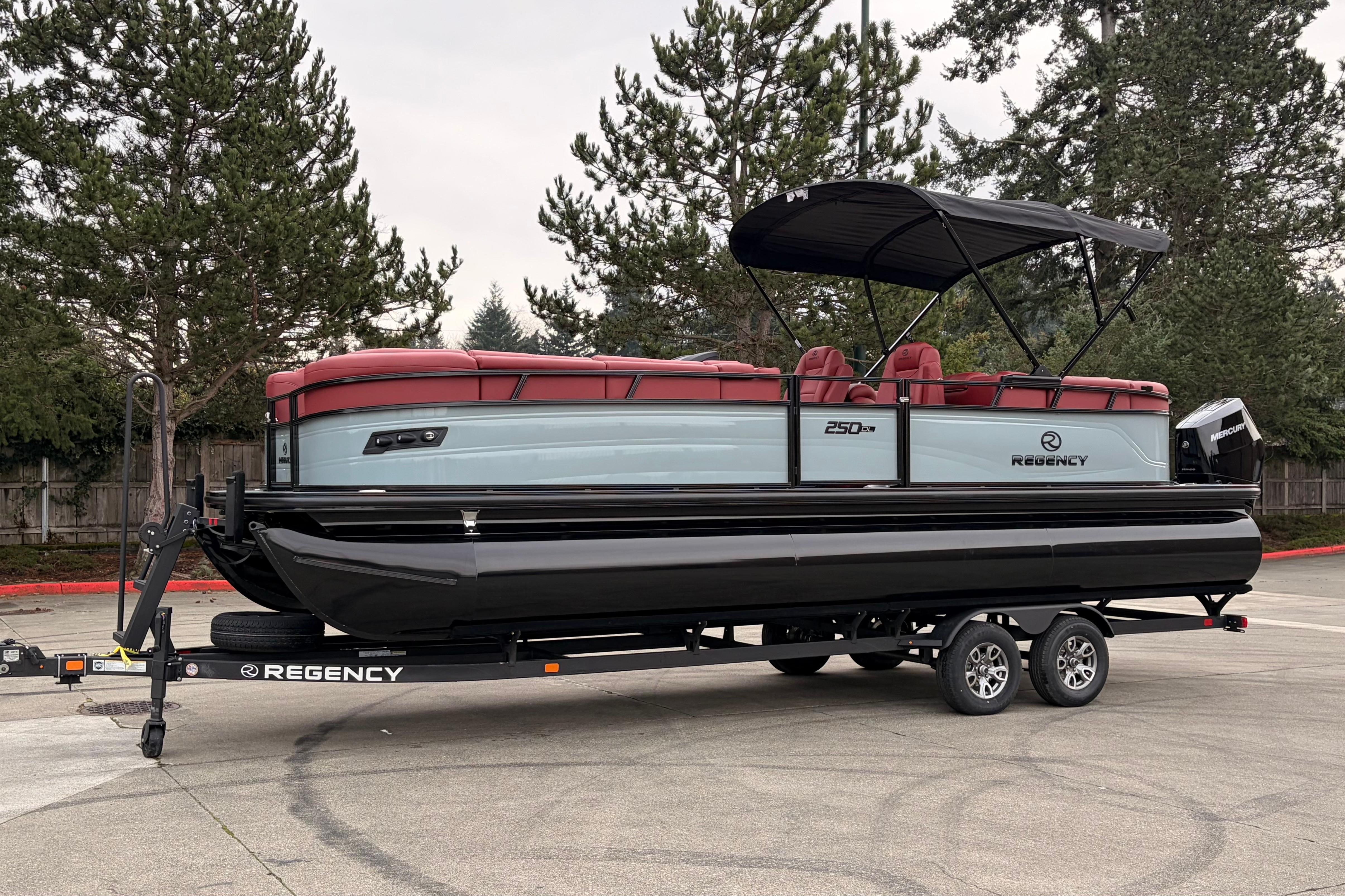 Discover the pinnacle of on-water luxury with the 2026 REGENCY® 250 DL. Designed for those who demand more, this pontoon fuses bold styling, advanced technology, and uncompromising performance. Its signature TRACK FORMED® fencing and DIAMOND COAT™ 3.0 finish set the stage, while a full RGB lighting system—illuminating cup holders, speakers, and exterior accents—creates an atmosphere that moves with your music. Step inside and relax into plush lounges with pillowtop backs, lumbar support, and lockable storage, all complemented by premium woven vinyl flooring and STOW MORE™ quiet-close hinges. Command your experience from the raised helm featuring the REGENCY® omni2™ 12" touchscreen, Bluetooth® connectivity, Wet Sounds® audio, and Scanstrut® wireless charging. Every seat offers USBcports for convenience, while the powered Bimini top and integrated bow/aft cameras deliver confidence and ease. Performance is engineered to thrill with three 26" multichambered logs, power-assisted hydraulic steering, and a removable ski tow pylon with dedicated storage. An extended aft swim platform, new telescoping wide step stainless steel ladder, and LED navigation lights complete a design built for both adventure and leisure. Luxury isn’t just a feature—it’s a feeling. Experience it with the REGENCY® 250 DL.