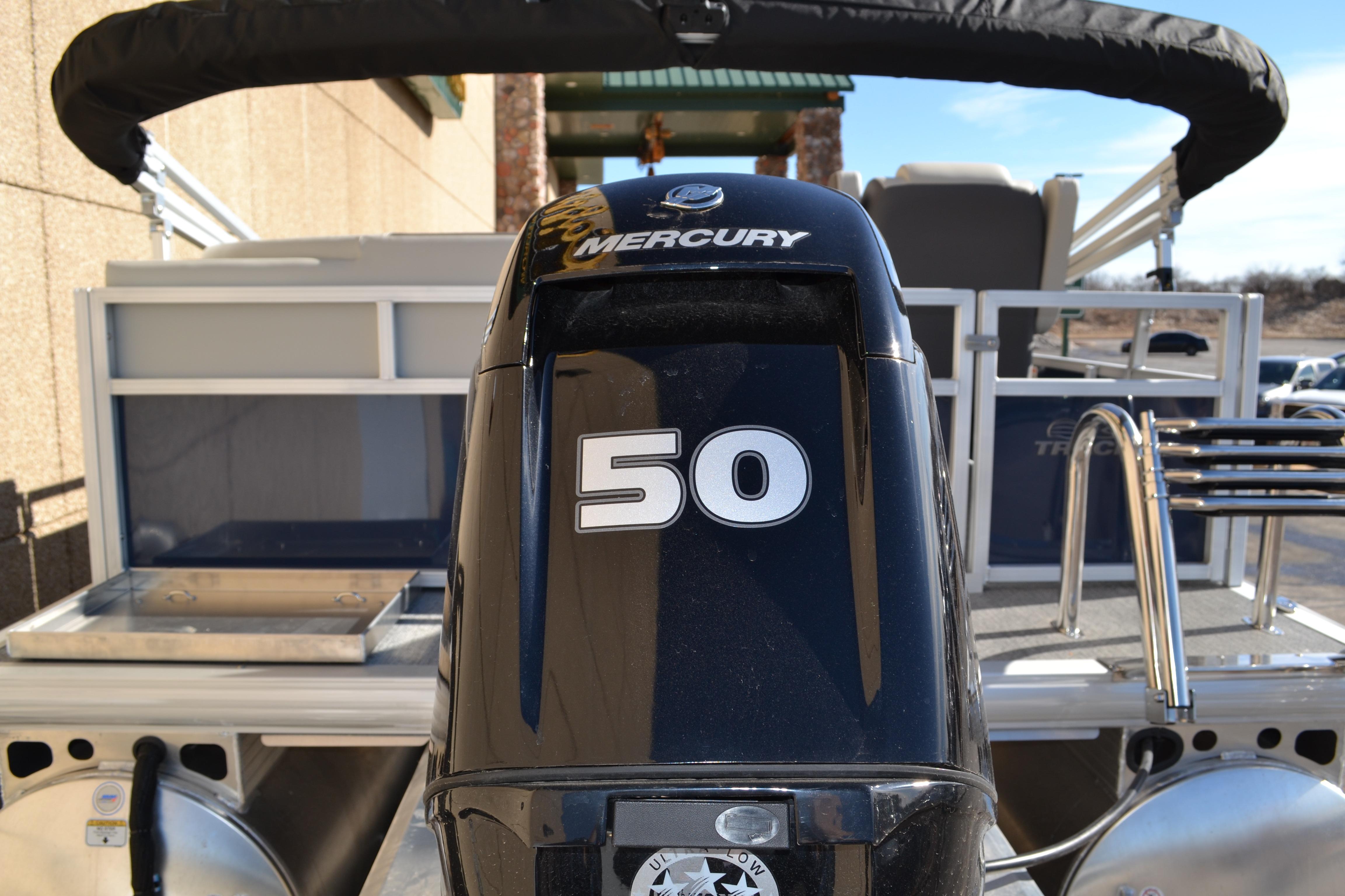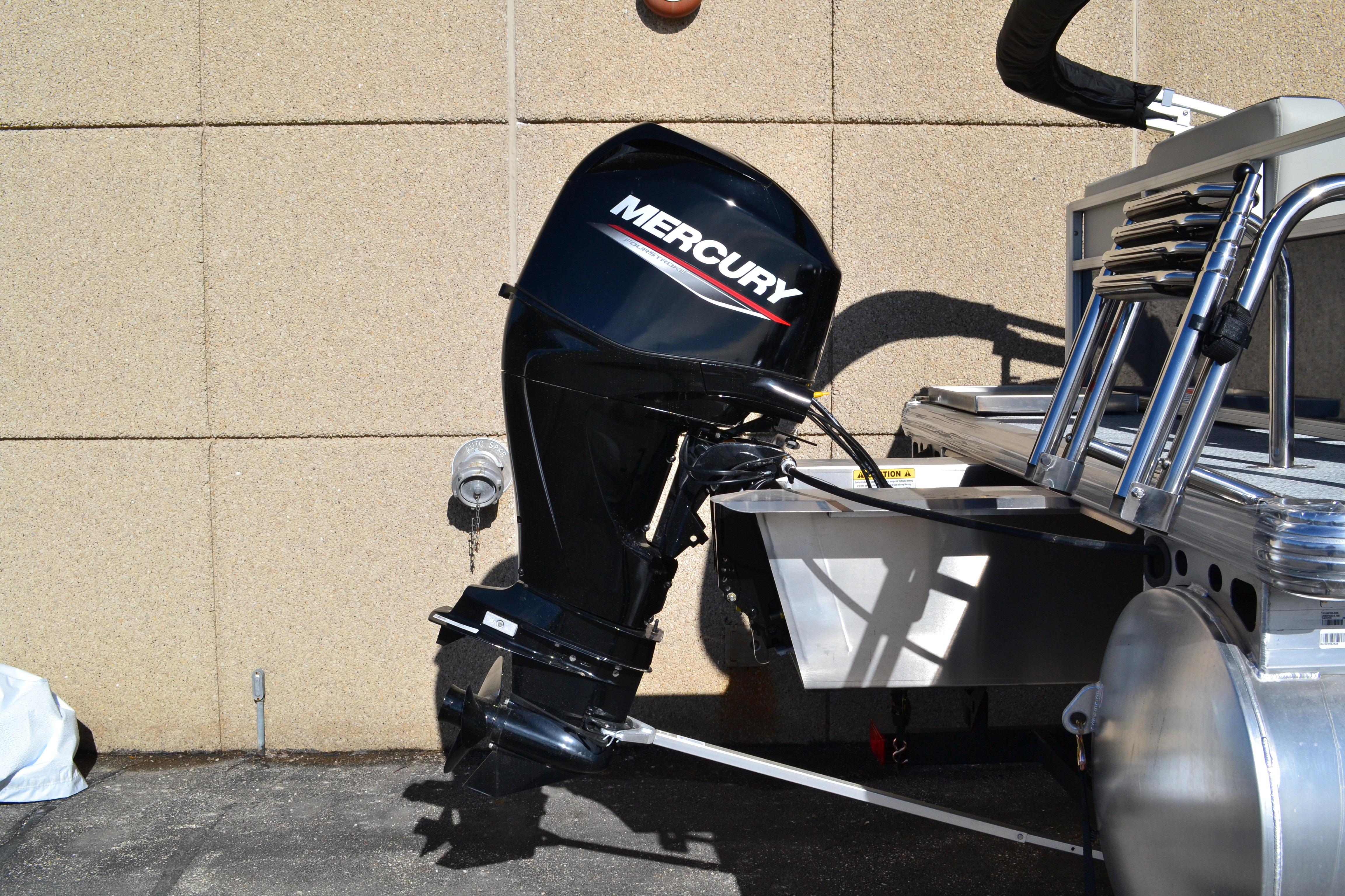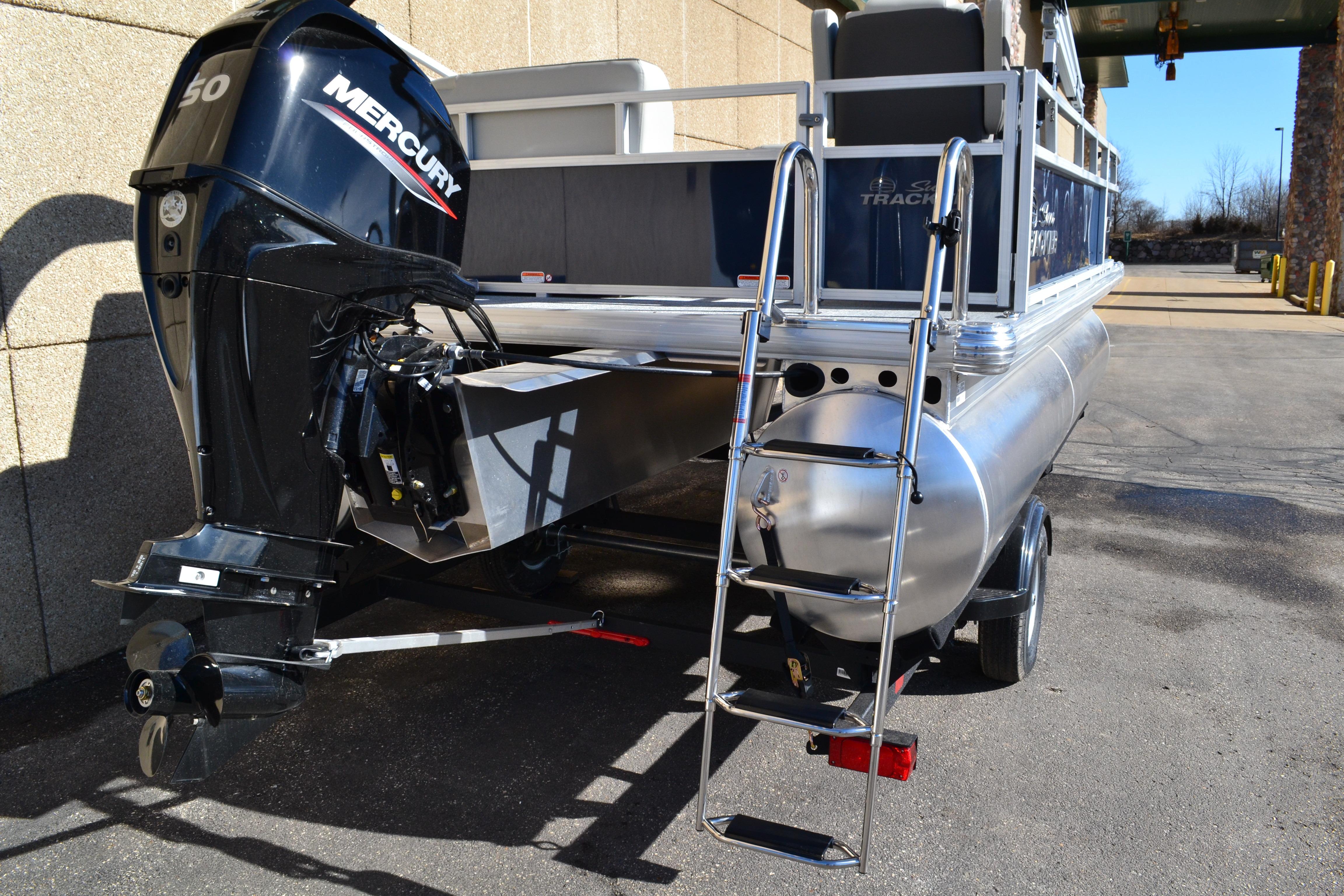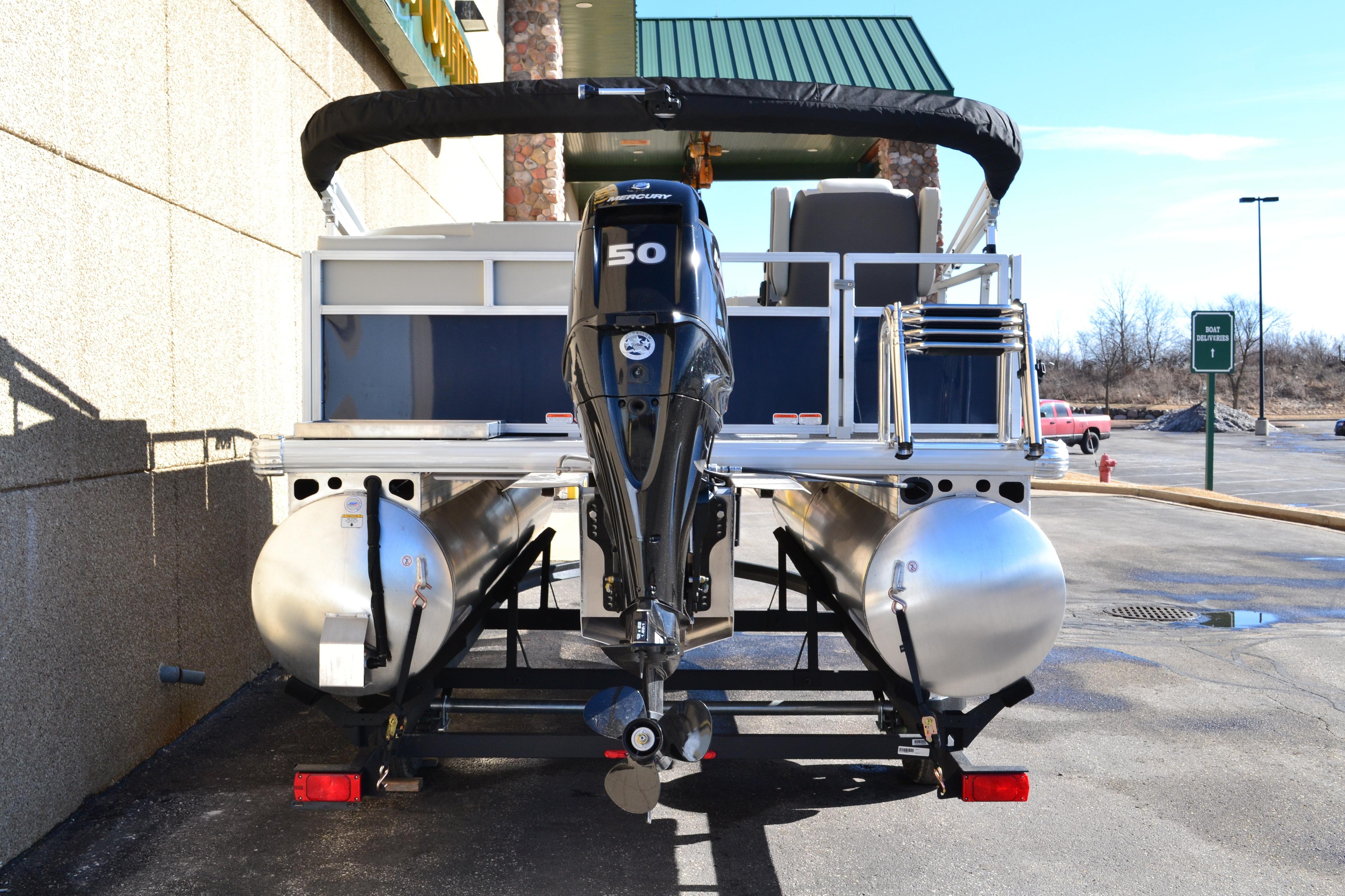 This seven-passenger fishing pontoon hits the water with new console and lounge designs. Get three extra cubic feet of storage thanks to clever backrest cut-outs. The redesign also adds a seat in front of the driver console, phone compartments, and four more cupholders. Cast from the shade of a standard 7' bimini top in one of the two folding fishing seats. Find your spot on the lake from the decked-out driver console, which comes with its own rod holder.