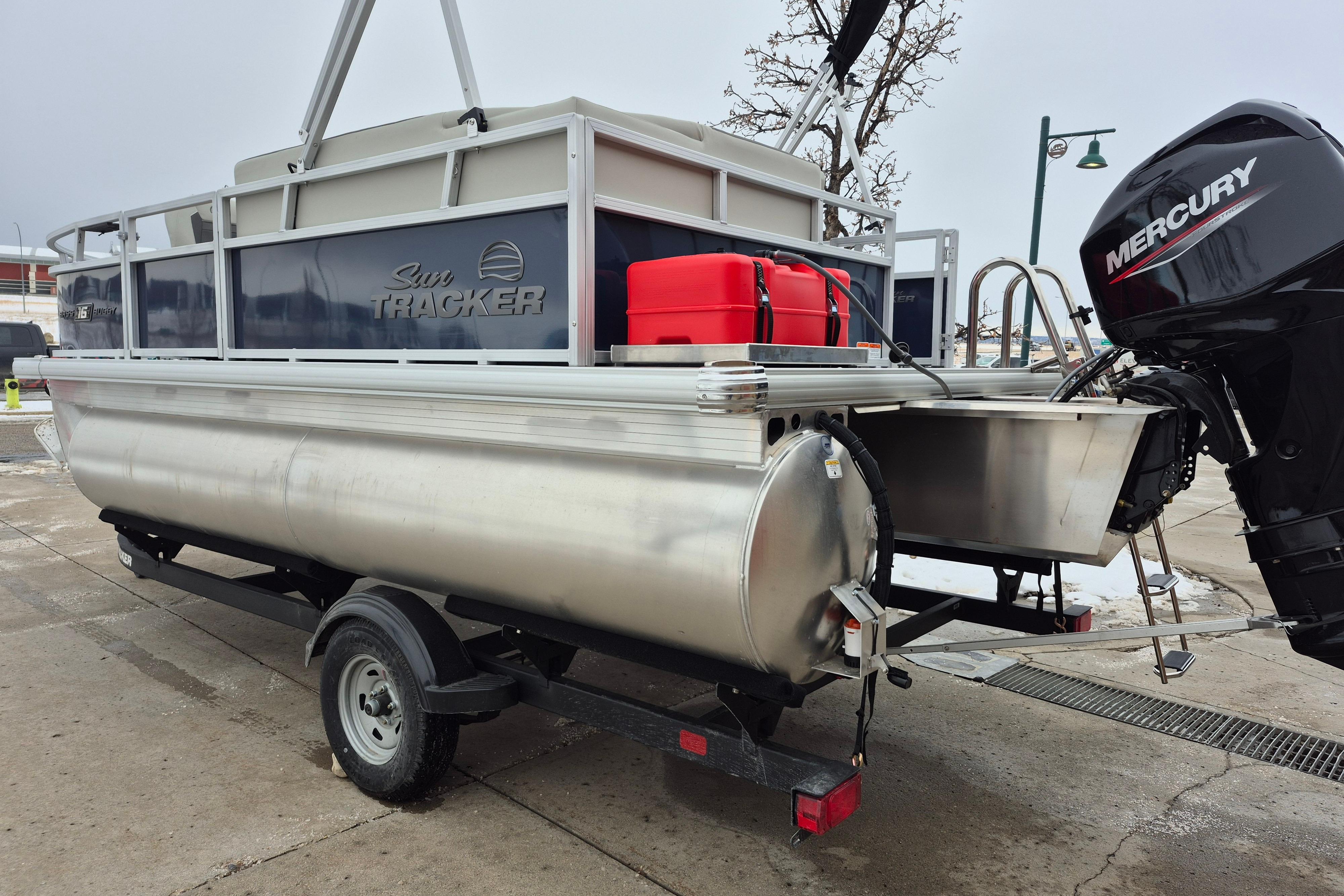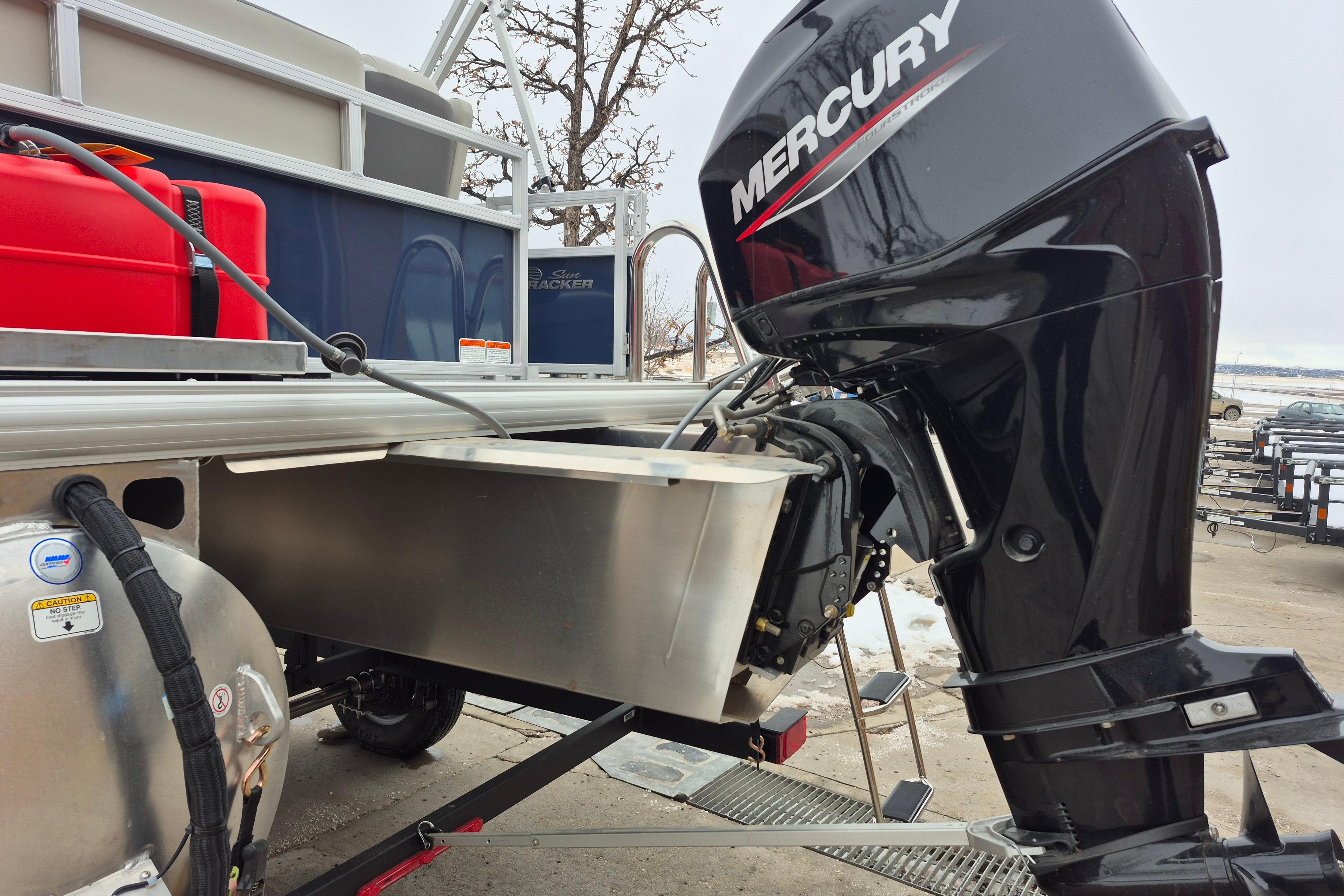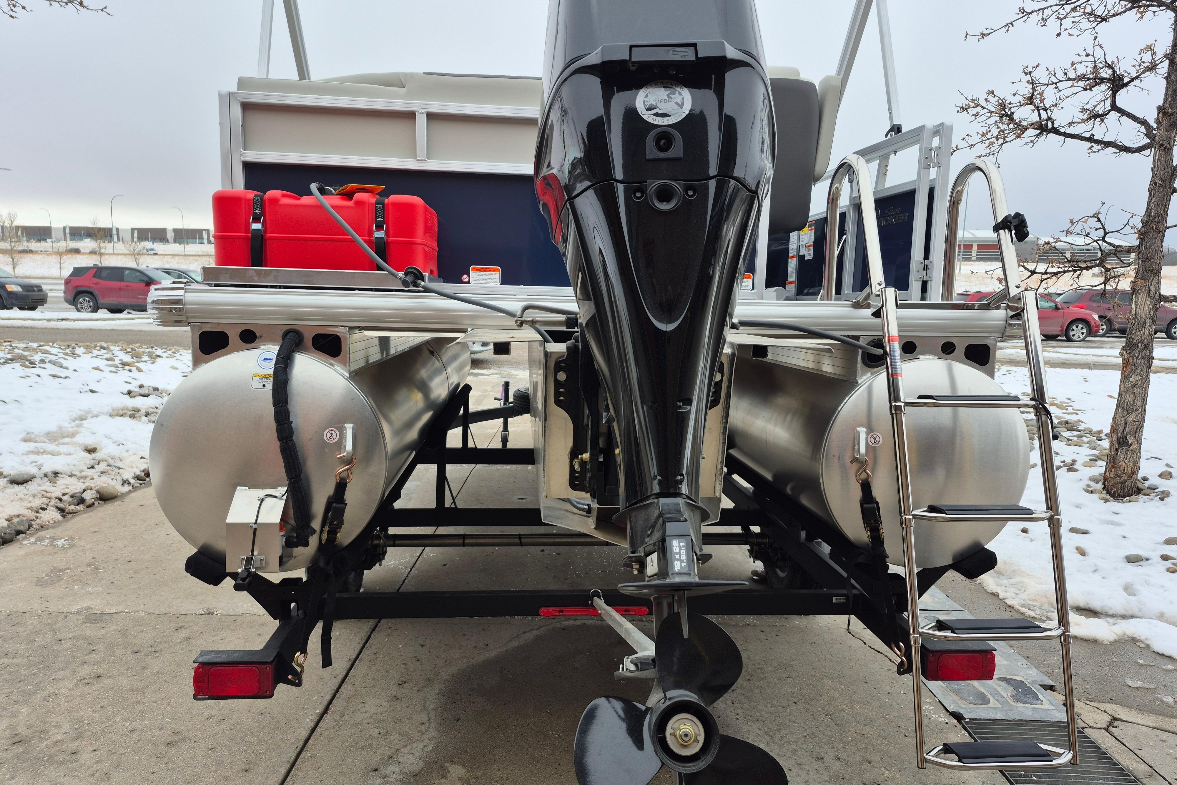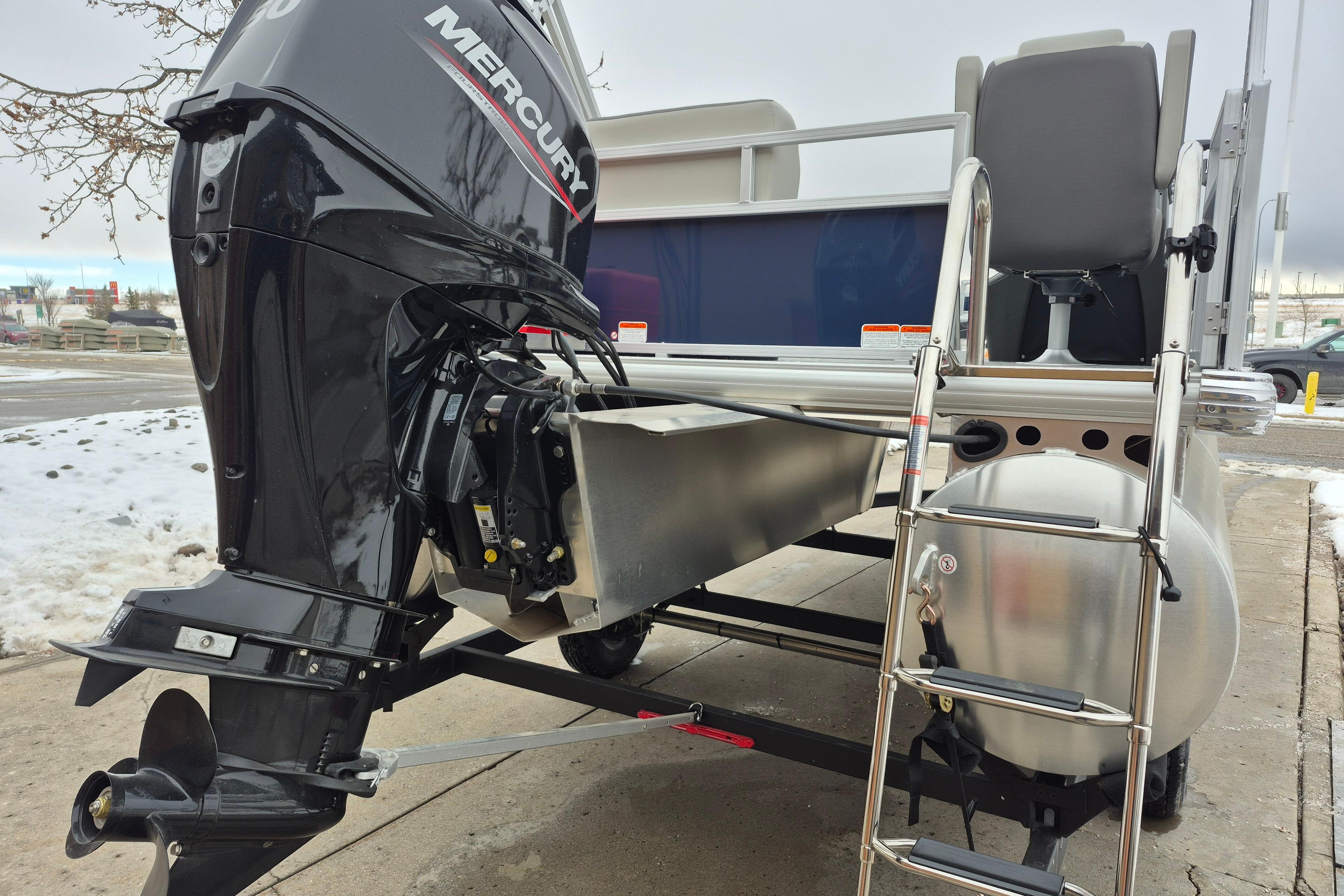 This seven-passenger fishing pontoon hits the water with new console and lounge designs. Get three extra cubic feet of storage thanks to clever backrest cut-outs. The redesign also adds a seat in front of the driver console, phone compartments, and four more cupholders. Cast from the shade of a standard 7' bimini top in one of the two folding fishing seats. Find your spot on the lake from the decked-out driver console, which comes with its own rod holder.