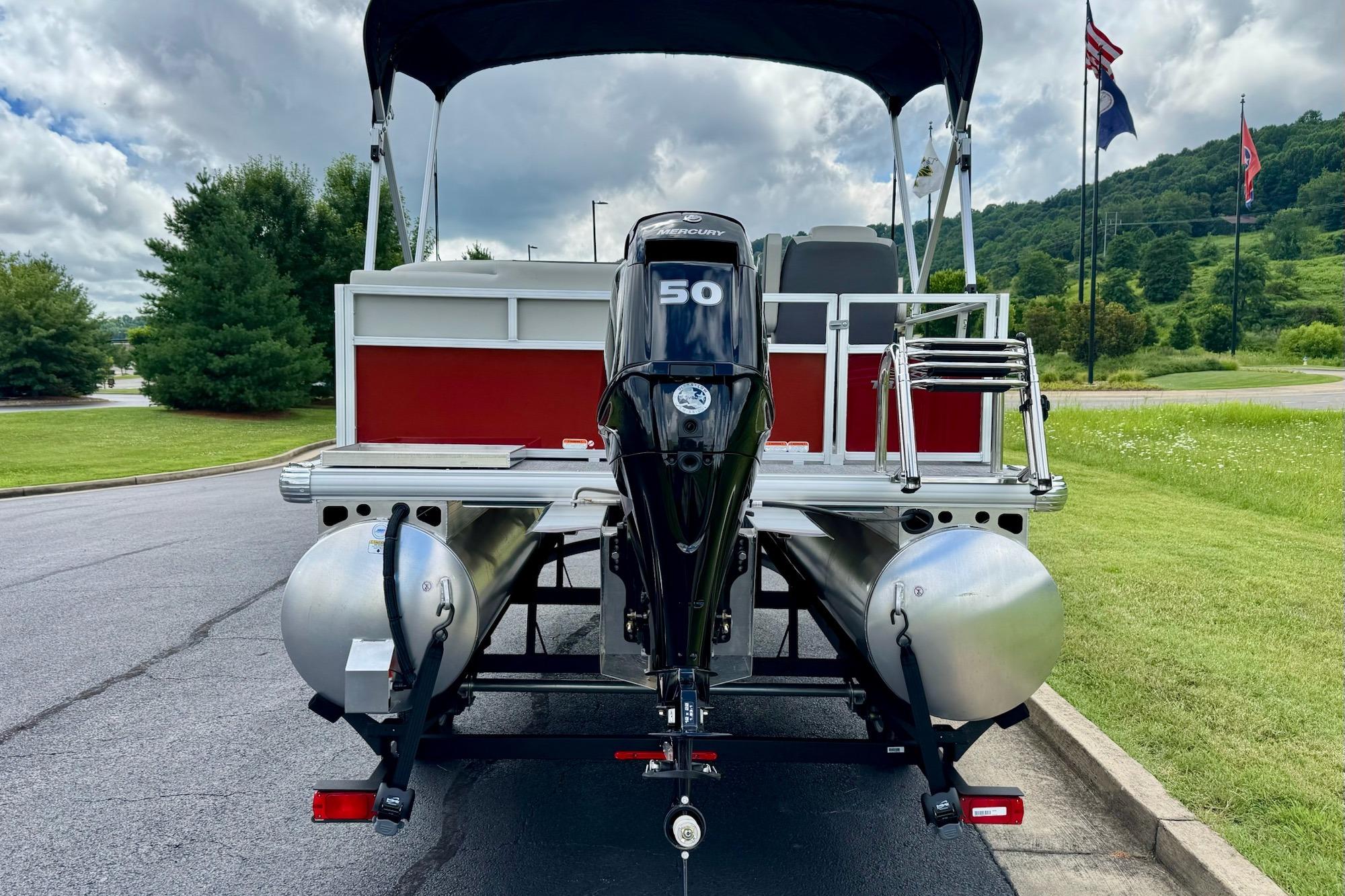 This seven-passenger fishing pontoon hits the water with new console and lounge designs. Get three extra cubic feet of storage thanks to clever backrest cut-outs. The redesign also adds a seat in front of the driver console, phone compartments, and four more cupholders. Cast from the shade of a standard 7' bimini top in one of the two folding fishing seats. Find your spot on the lake from the decked-out driver console, which comes with its own rod holder.