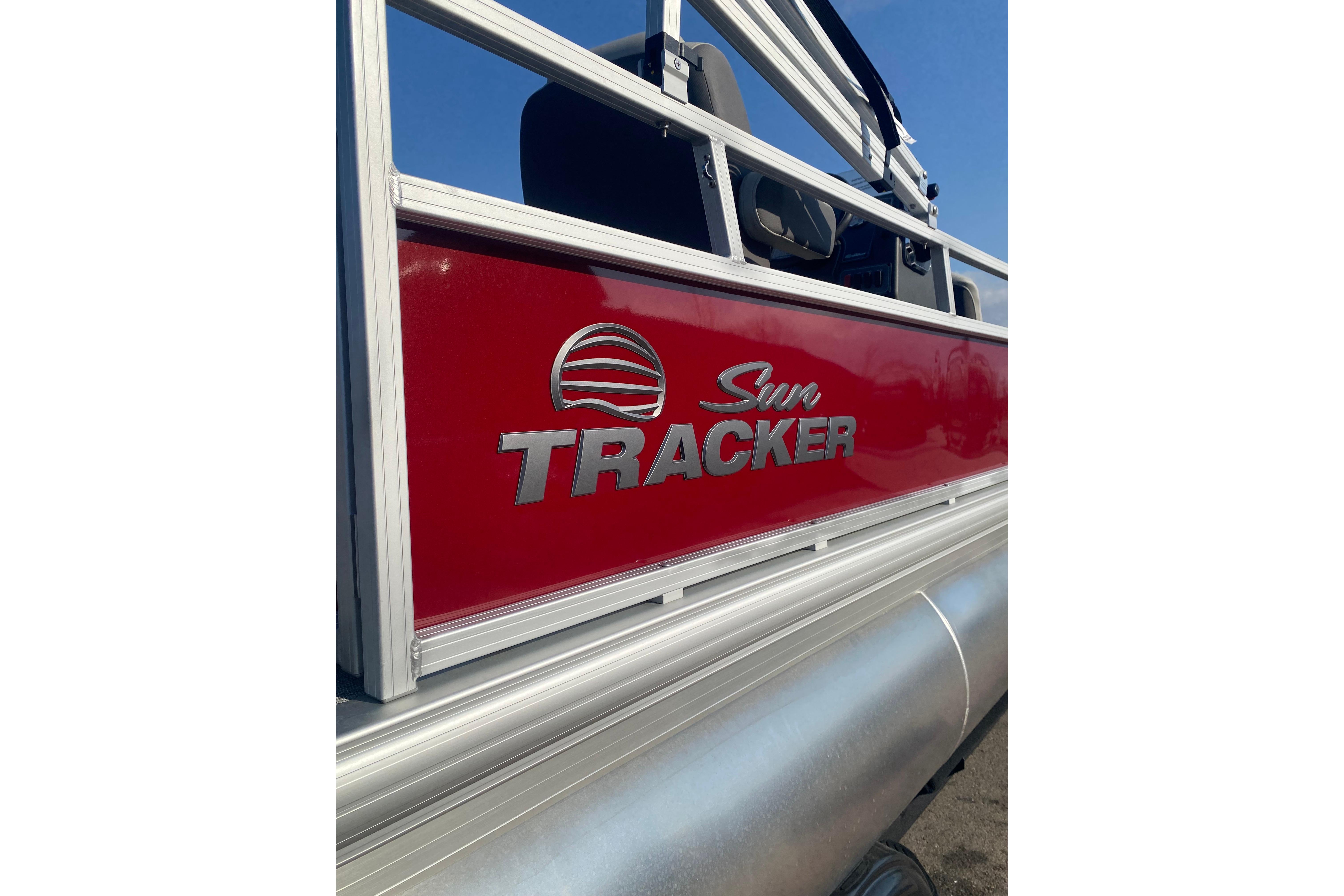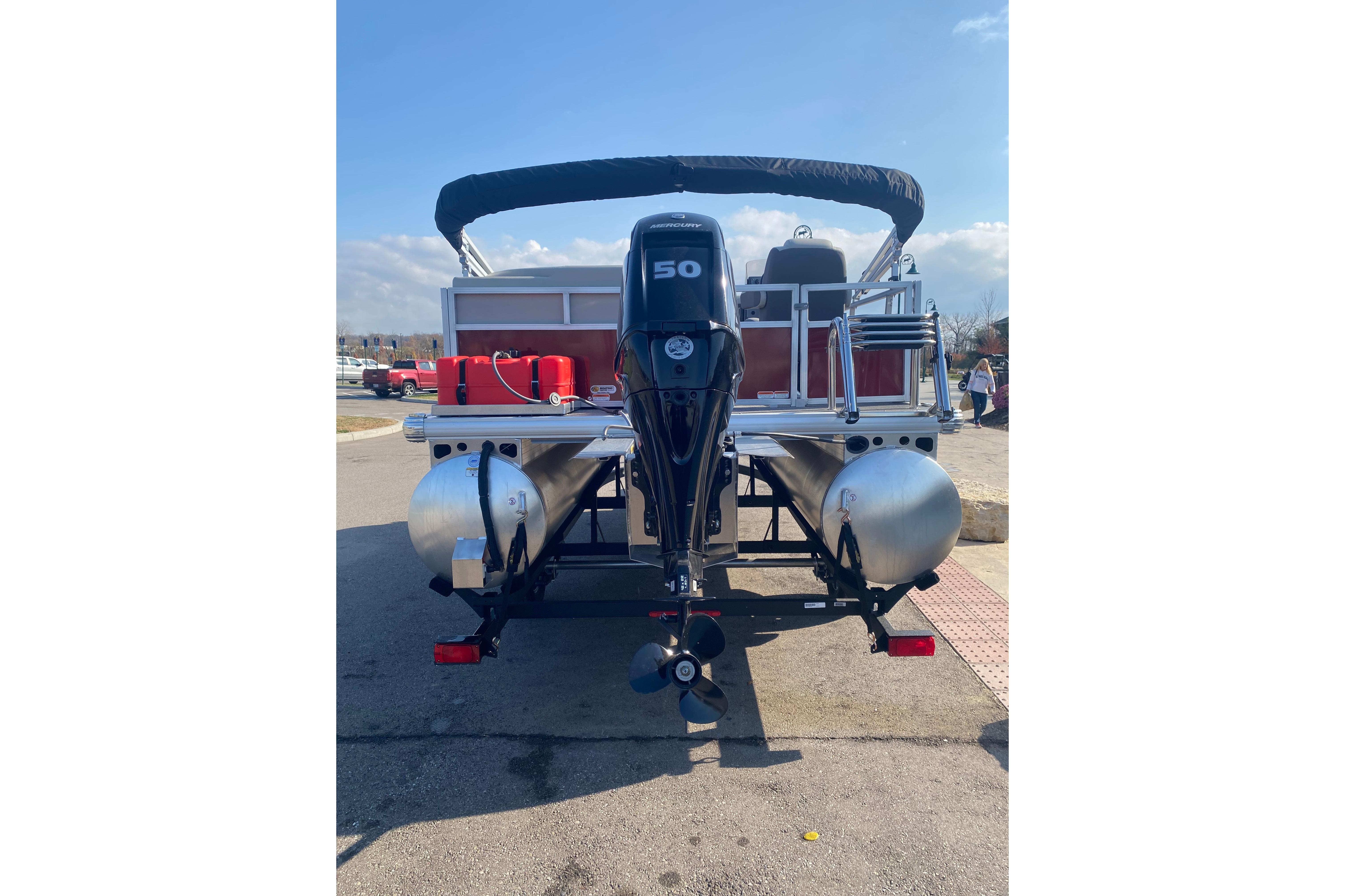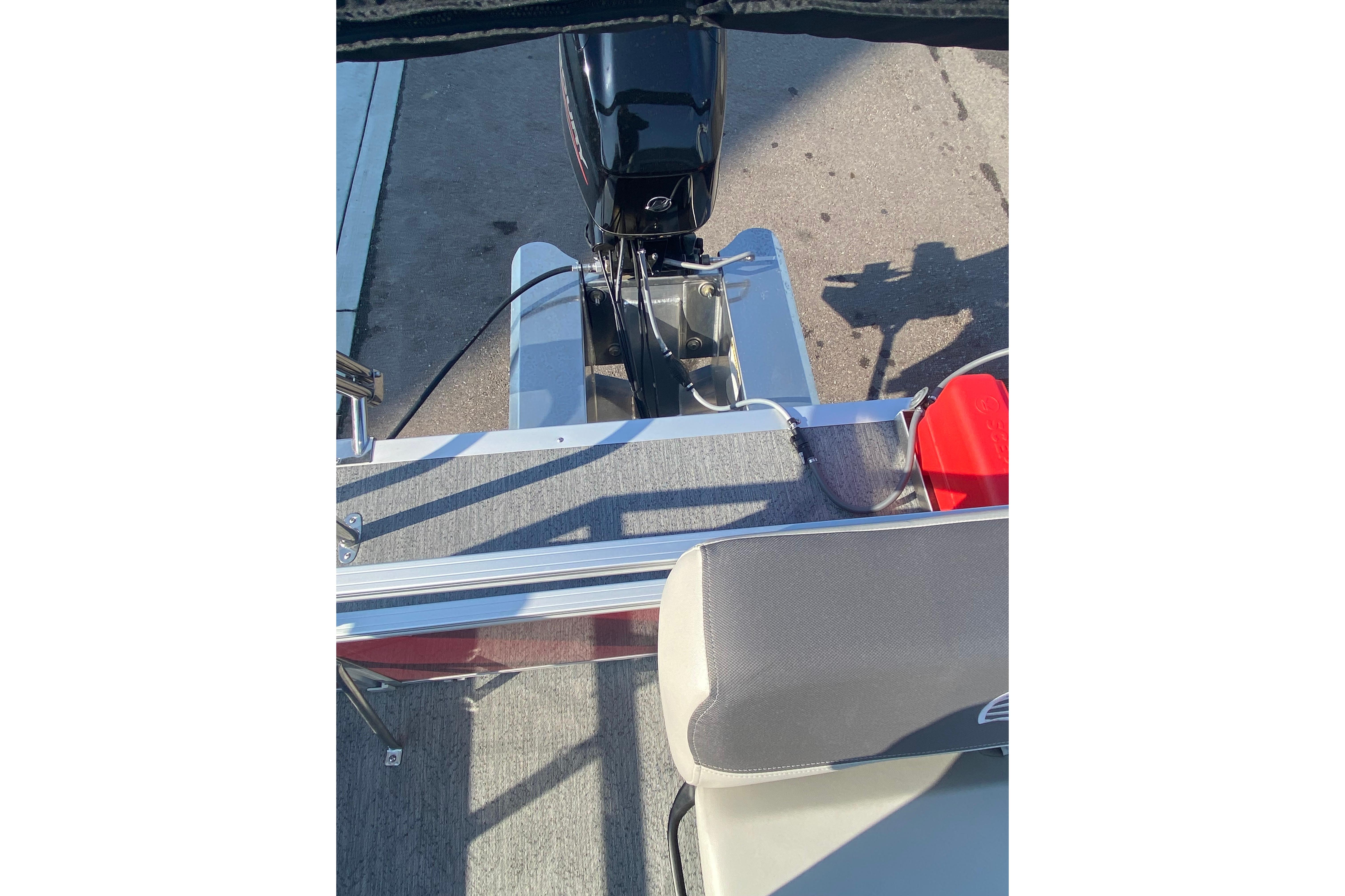 This seven-passenger fishing pontoon hits the water with new console and lounge designs. Get three extra cubic feet of storage thanks to clever backrest cut-outs. The redesign also adds a seat in front of the driver console, phone compartments, and four more cupholders. Cast from the shade of a standard 7' bimini top in one of the two folding fishing seats. Find your spot on the lake from the decked-out driver console, which comes with its own rod holder.