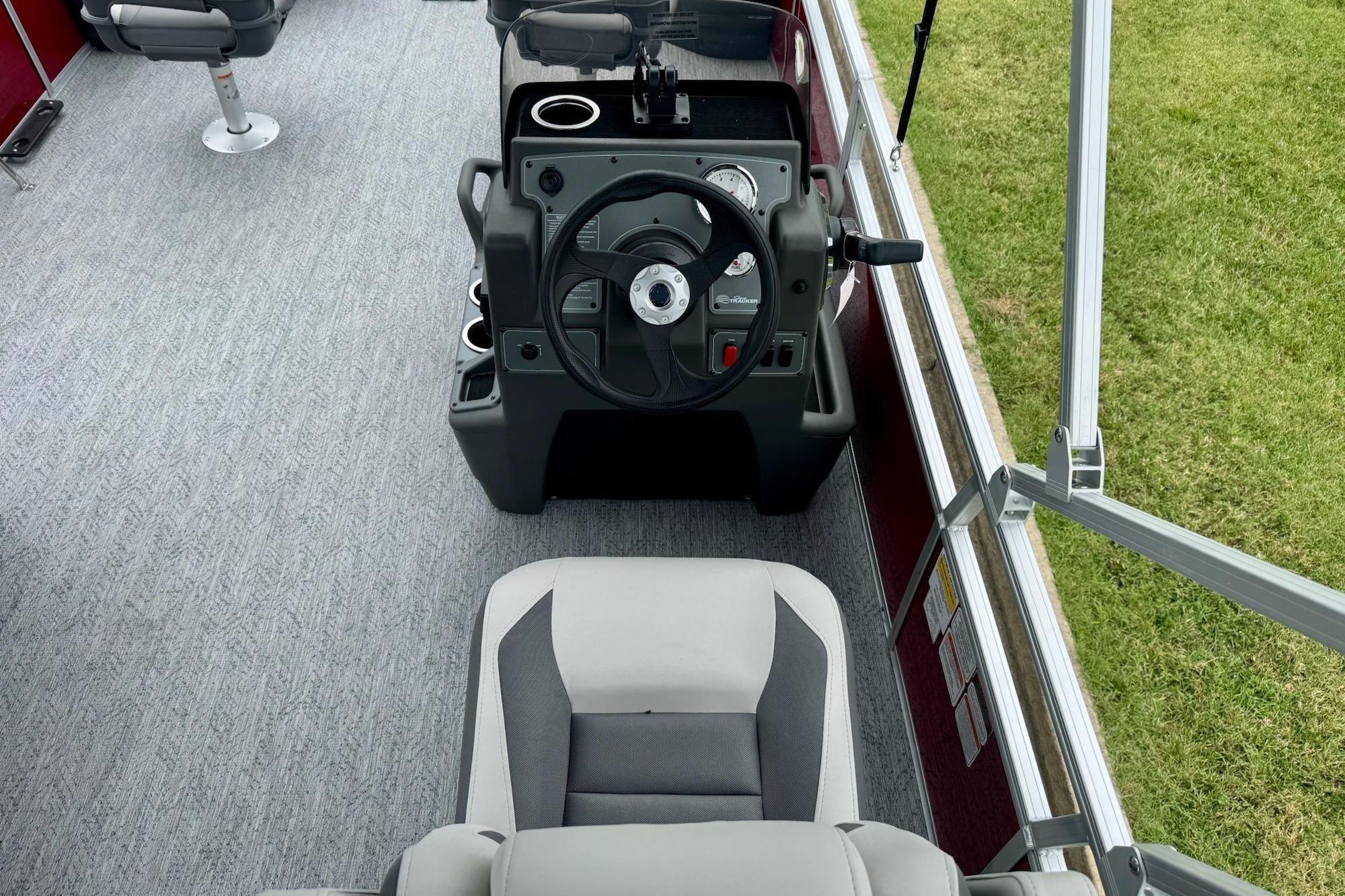 • Driver console w/vertical rod holder, integrated storage, drink holders & side-mounted controls