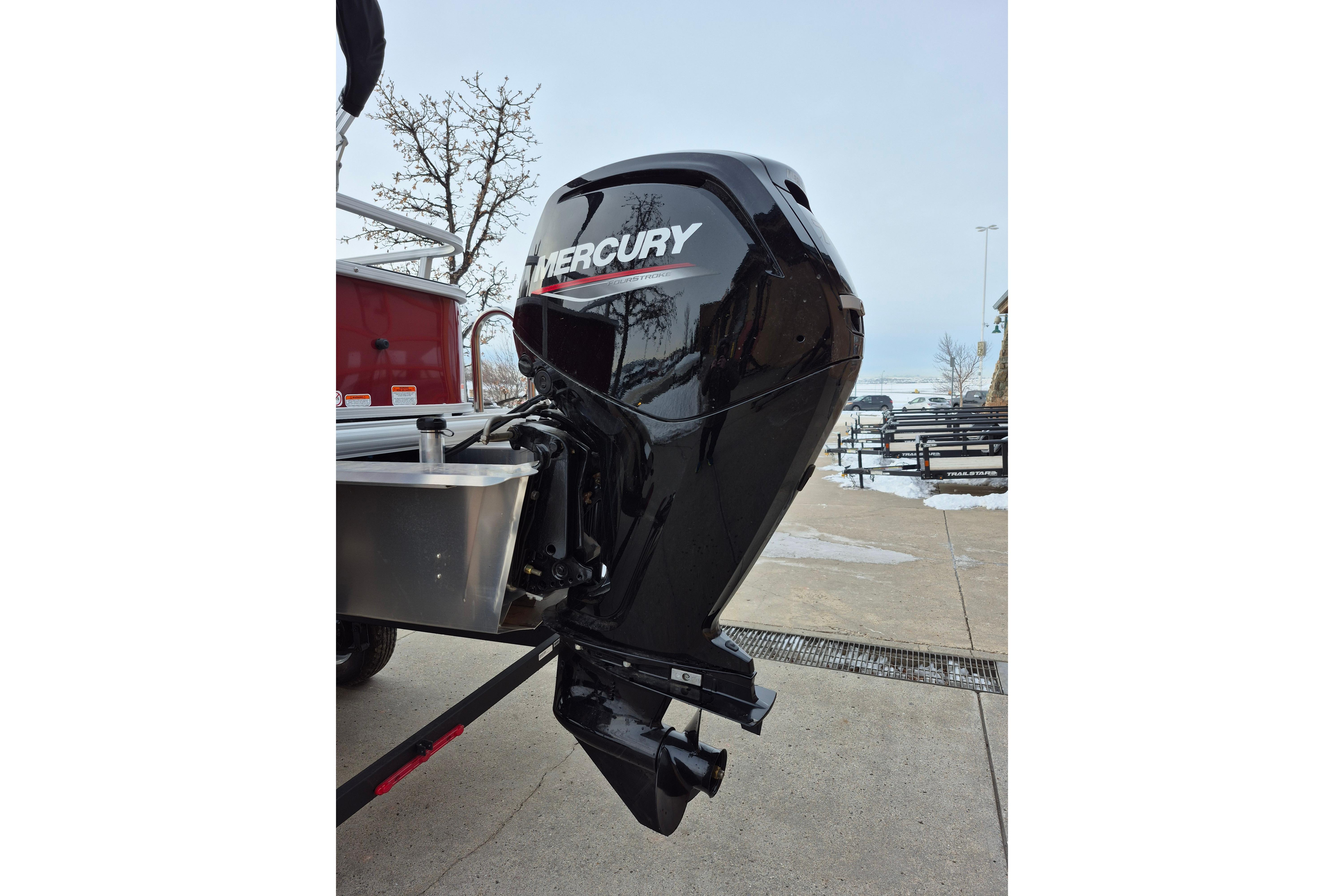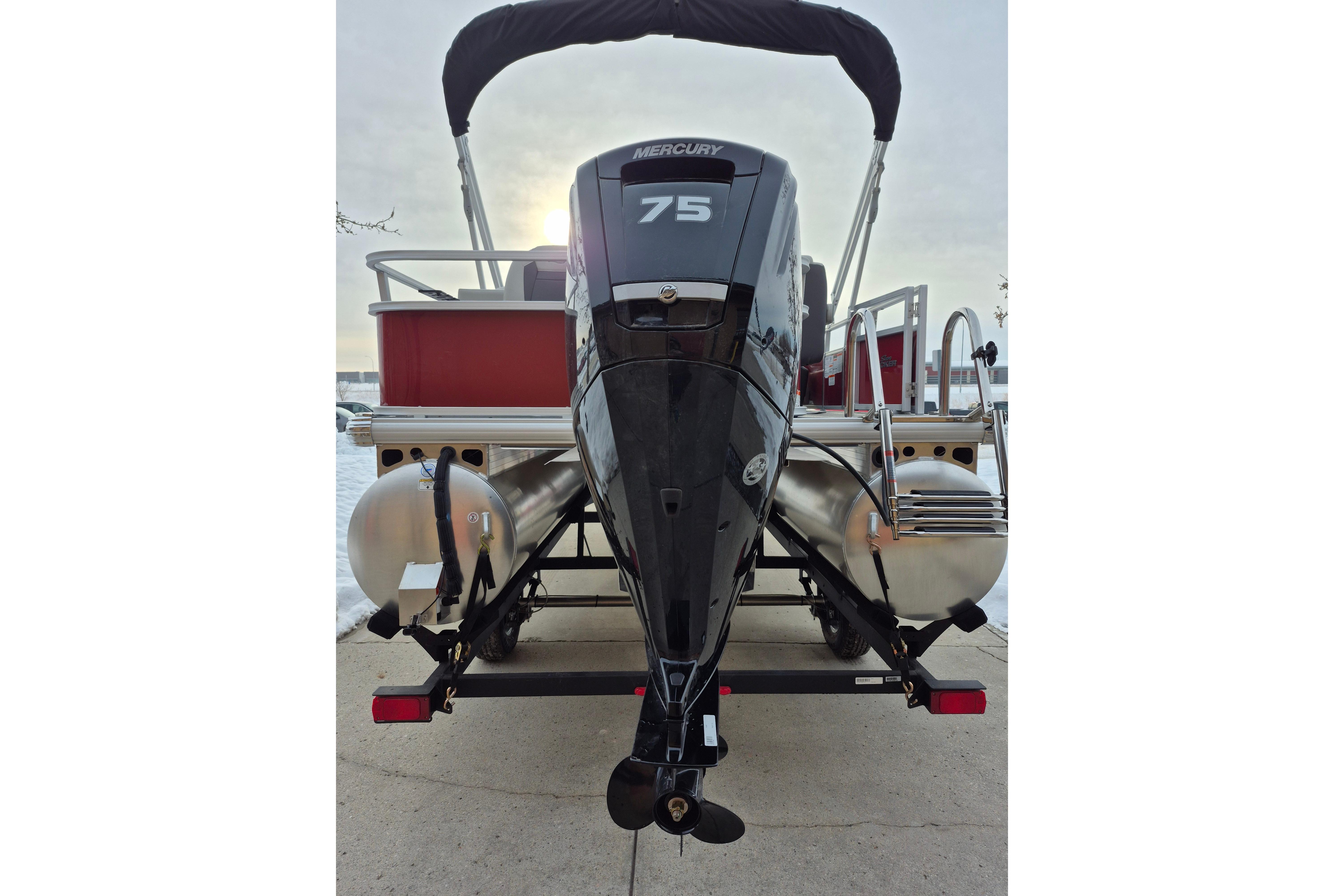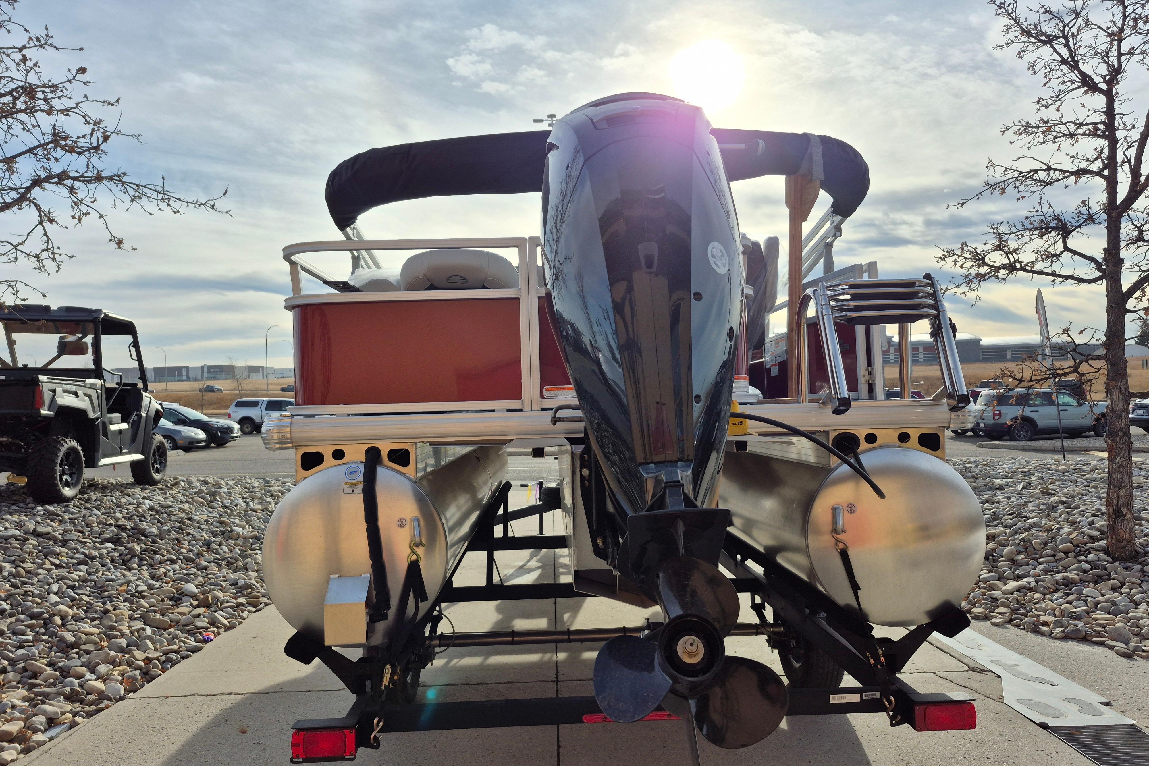 Up to eight fishin' buddies can take to the dual fishing decks of this redesigned fishin' pontoon. Three swiveling fishing chairs around a 10-gal. bow livewell and an 8-gal. aft livewell headline the list of features that make this the perfect boat for casting lines to catch fish and memories. When the fishing's done, sprawl out on the L-shaped lounge and crank up the stereo. The new and improved boarding ladder makes follow-up cannonballs a breeze. Other features new to the 2026 model year include three extra cubic feet of storage space, more cupholders, in-lounge storage, and a new seat in front of the helm.