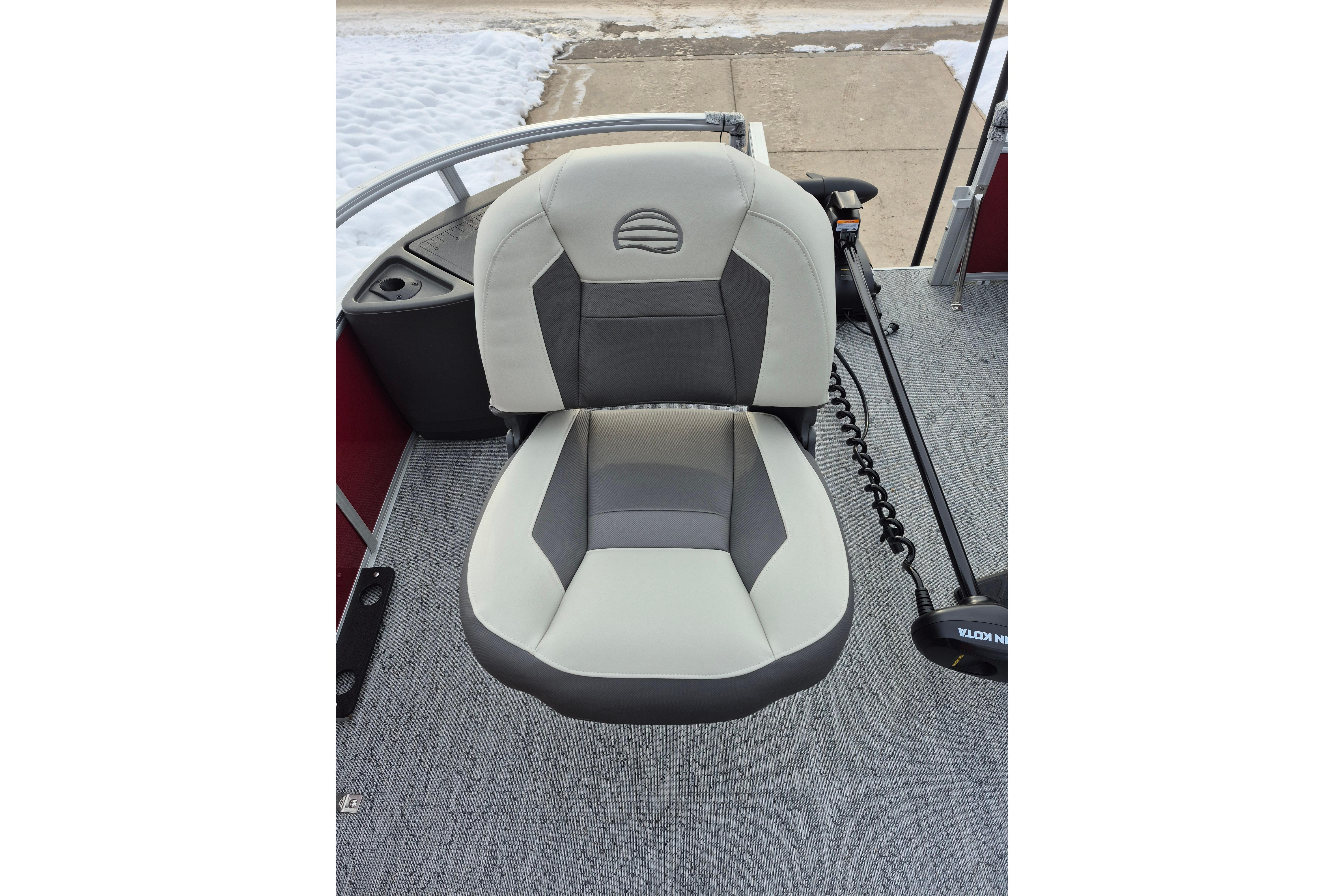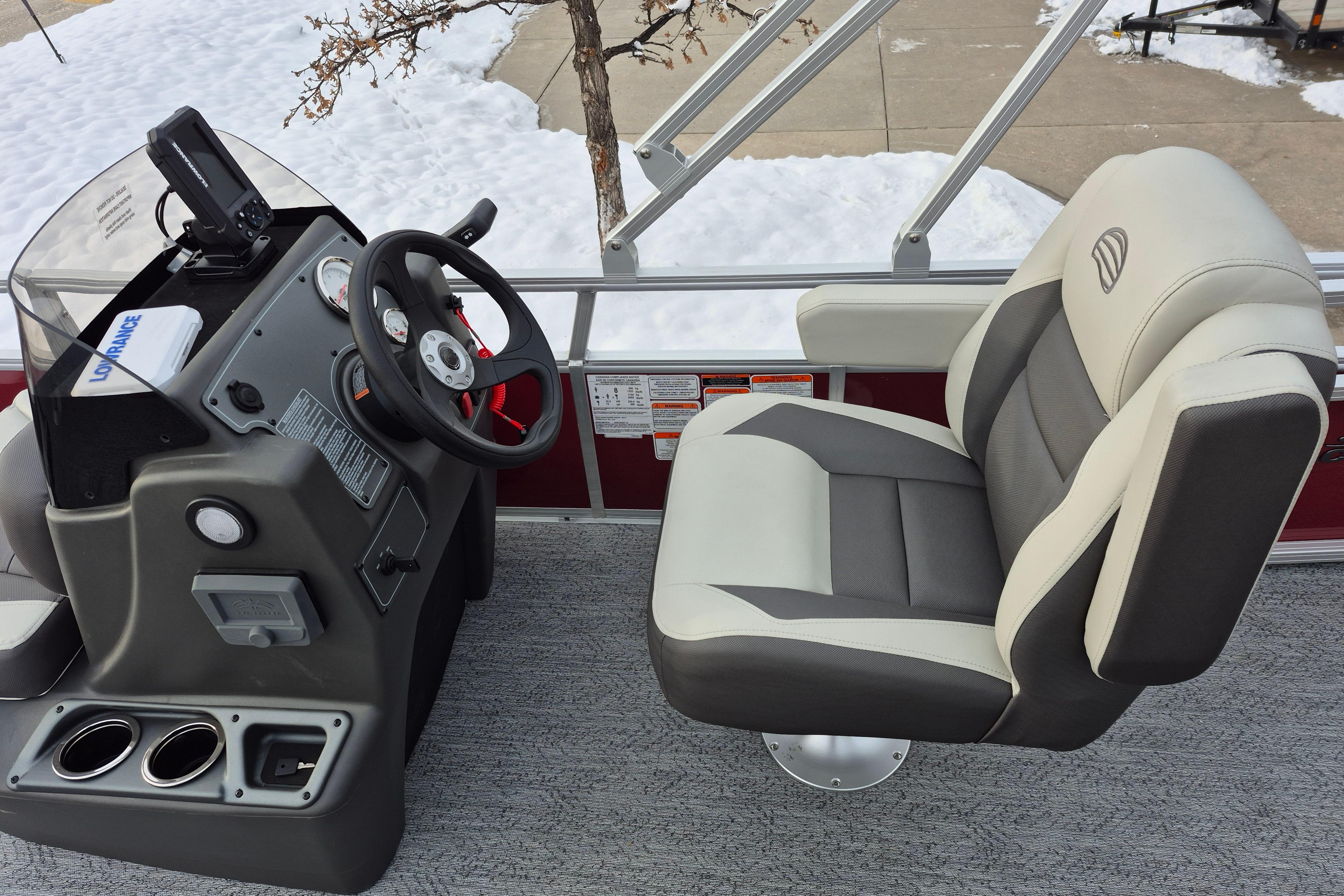 • Driver console w/vertical rod holder, integrated storage, drink holders & side-mounted controls