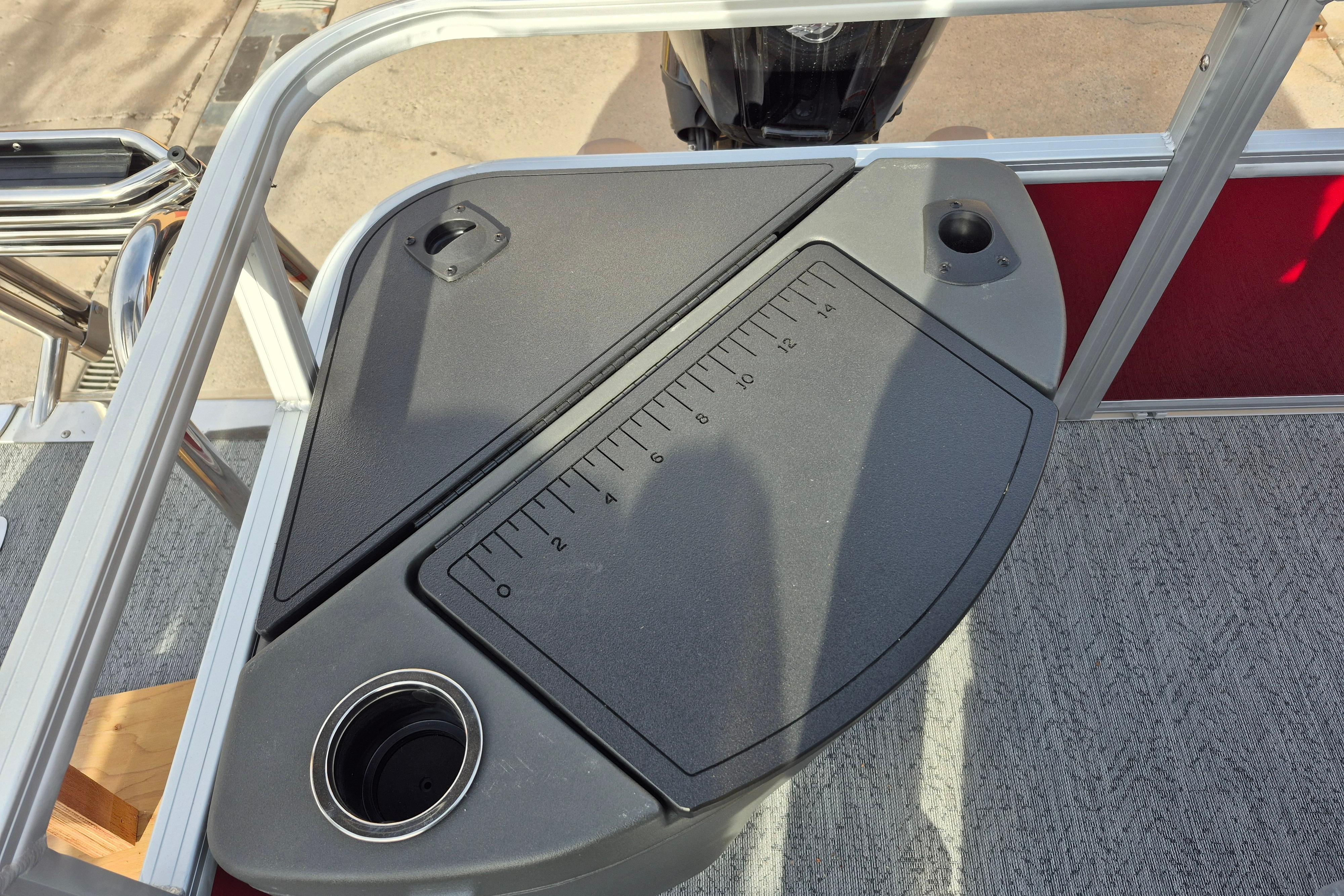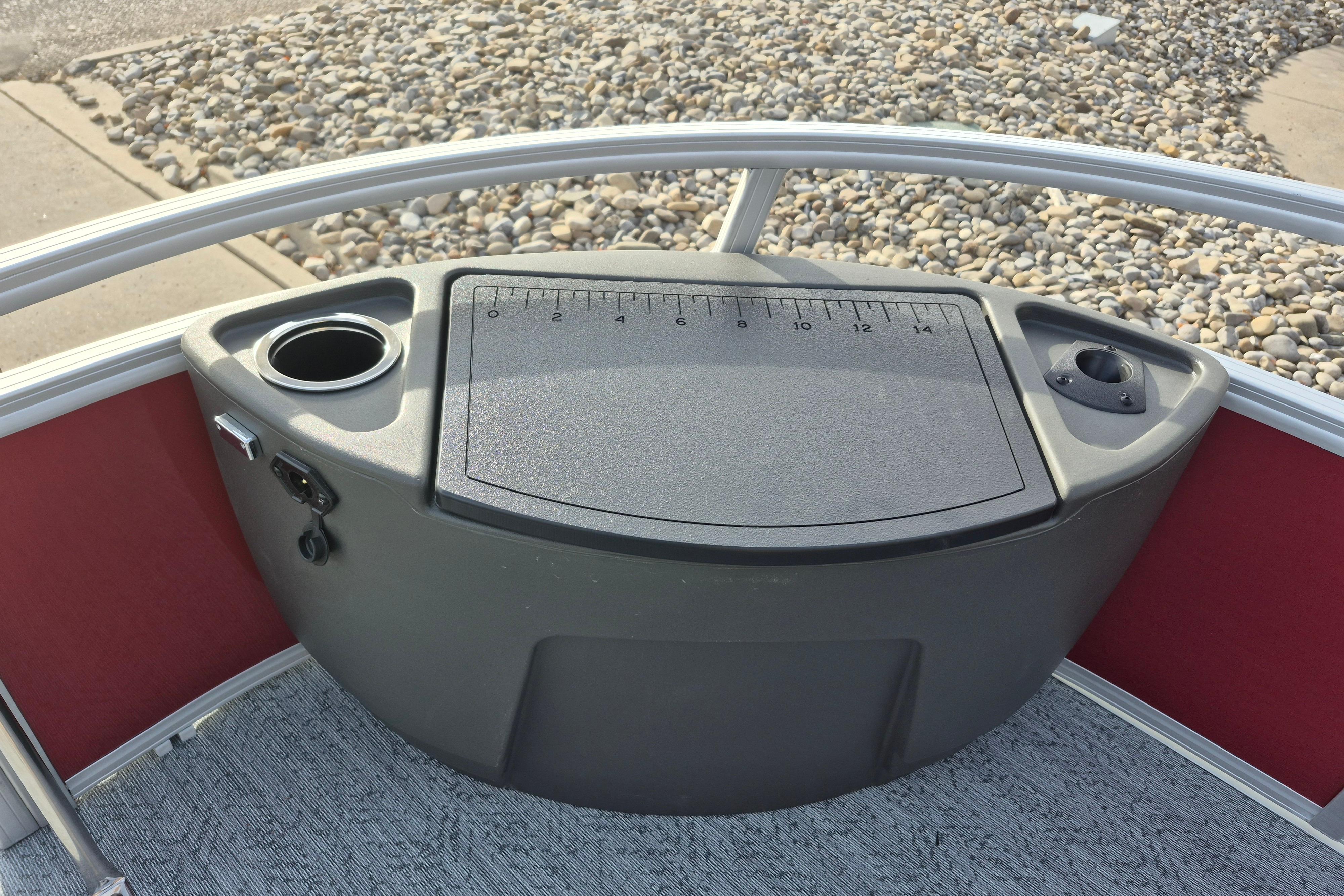 • Aft 8-gal. (30.28 L) aerated livewell/baitwell w/shutoff valve, drink holder, rod holder & composite lid w/fish ruler