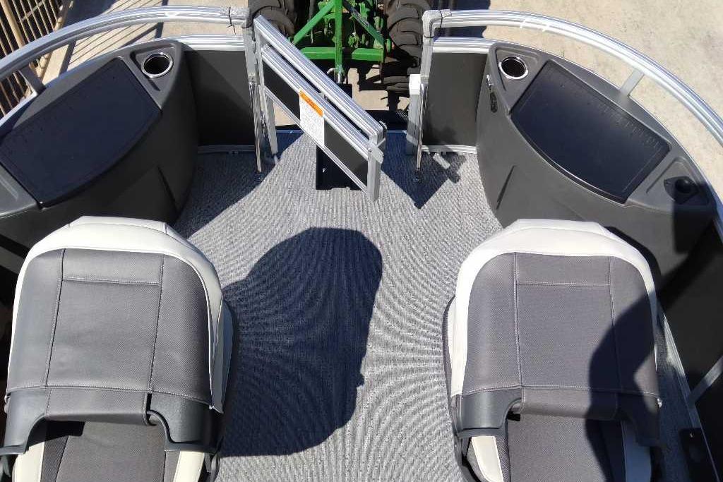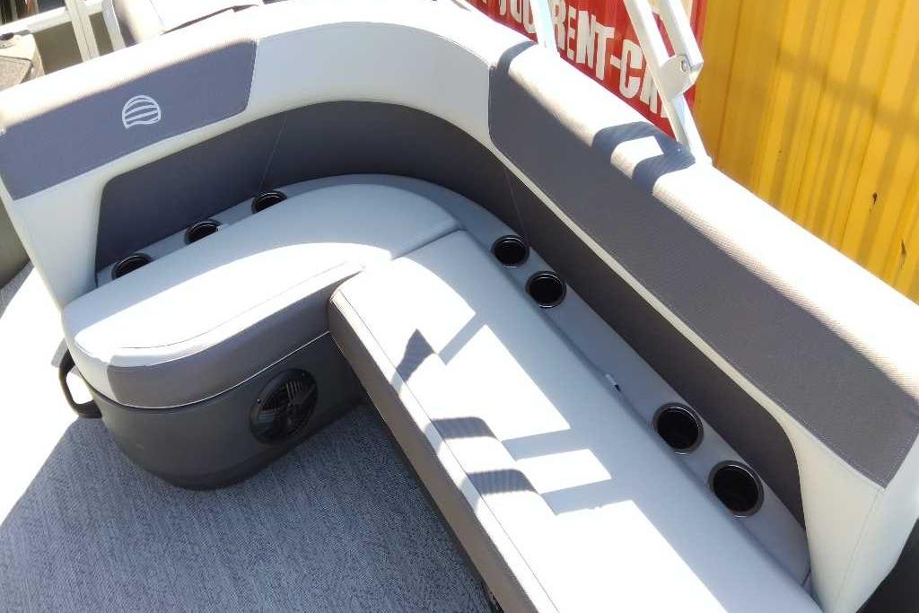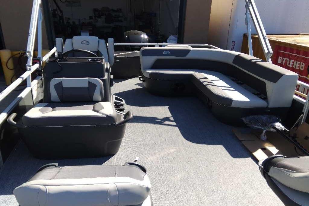 Up to eight fishin' buddies can take to the dual fishing decks of this redesigned fishin' pontoon. Three swiveling fishing chairs around a 10-gal. bow livewell and an 8-gal. aft livewell headline the list of features that make this the perfect boat for casting lines to catch fish and memories. When the fishing's done, sprawl out on the L-shaped lounge and crank up the stereo. The new and improved boarding ladder makes follow-up cannonballs a breeze. Other features new to the 2026 model year include three extra cubic feet of storage space, more cupholders, in-lounge storage, and a new seat in front of the helm.