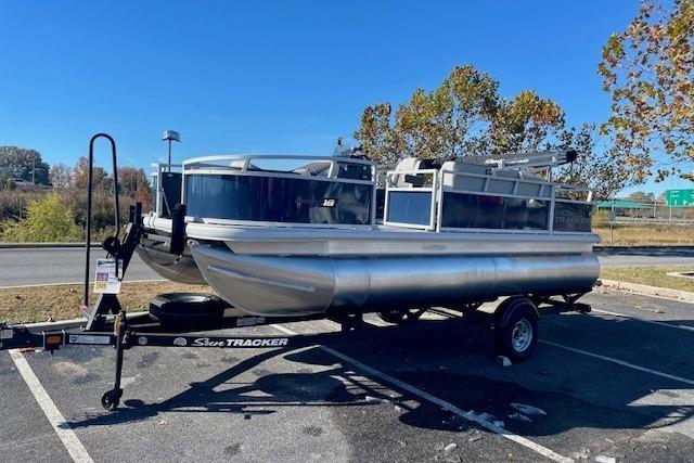 Up to eight fishin' buddies can take to the dual fishing decks of this redesigned fishin' pontoon. Three swiveling fishing chairs around a 10-gal. bow livewell and an 8-gal. aft livewell headline the list of features that make this the perfect boat for casting lines to catch fish and memories. When the fishing's done, sprawl out on the L-shaped lounge and crank up the stereo. The new and improved boarding ladder makes follow-up cannonballs a breeze. Other features new to the 2026 model year include three extra cubic feet of storage space, more cupholders, in-lounge storage, and a new seat in front of the helm. Single Axle Trailer with brakes, Lowrance Eagle 7 with sonar, downscan and mapping, Minn Kota Powerdrive trolling motor gives you all the options you need for a great day on the water!!!