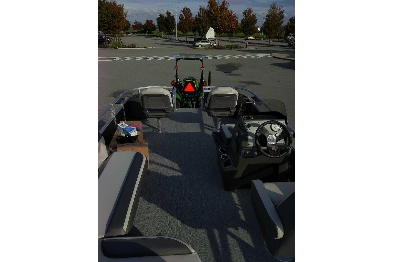 • Driver console w/vertical rod holder, integrated storage, drink holders & side-mounted controls