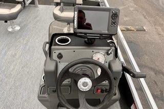 Up to eight fishin' buddies can take to the dual fishing decks of this redesigned fishin' pontoon. Three swiveling fishing chairs around a 10-gal. bow livewell and an 8-gal. aft livewell headline the list of features that make this the perfect boat for casting lines to catch fish and memories. When the fishing's done, sprawl out on the L-shaped lounge and crank up the stereo. The new and improved boarding ladder makes follow-up cannonballs a breeze. Other features new to the 2026 model year include three extra cubic feet of storage space, more cupholders, in-lounge storage, and a new seat in front of the helm.
